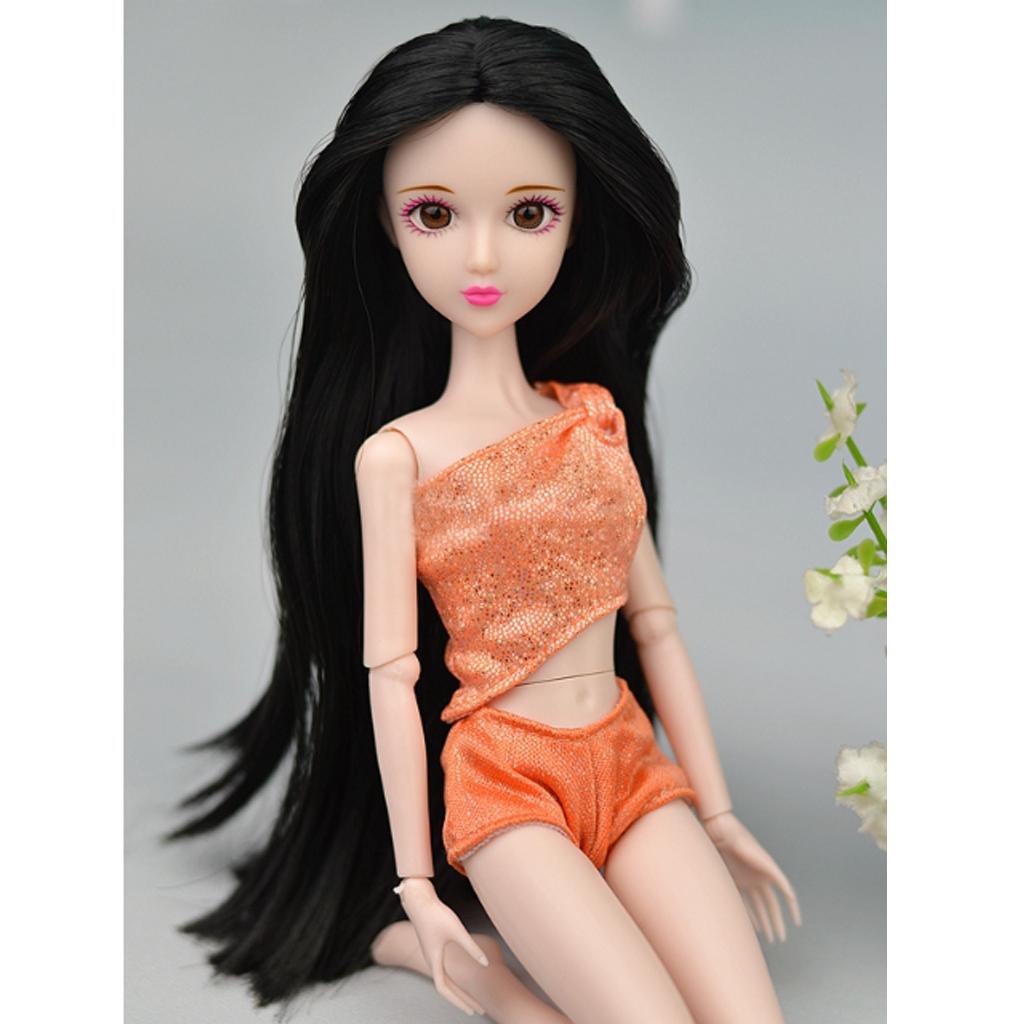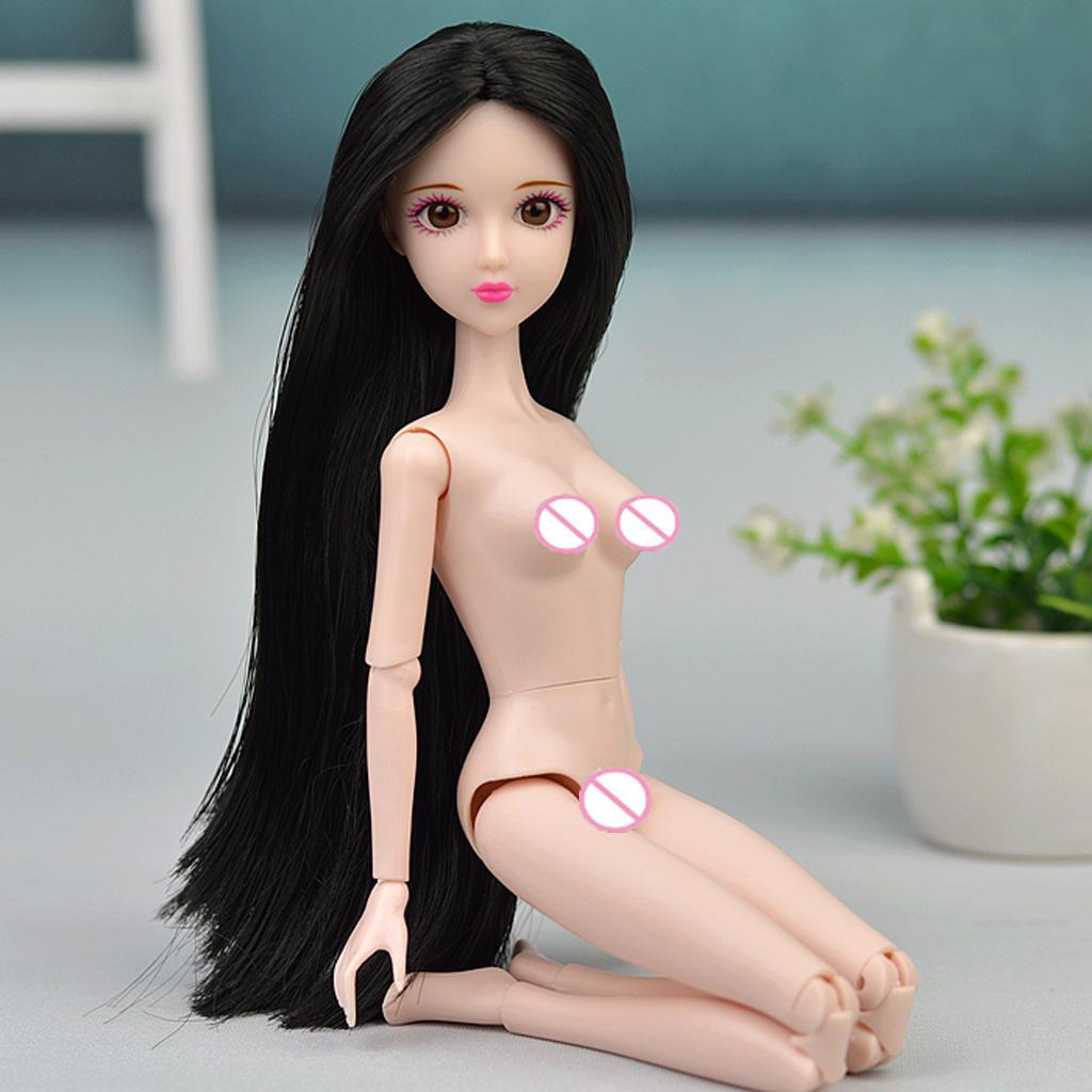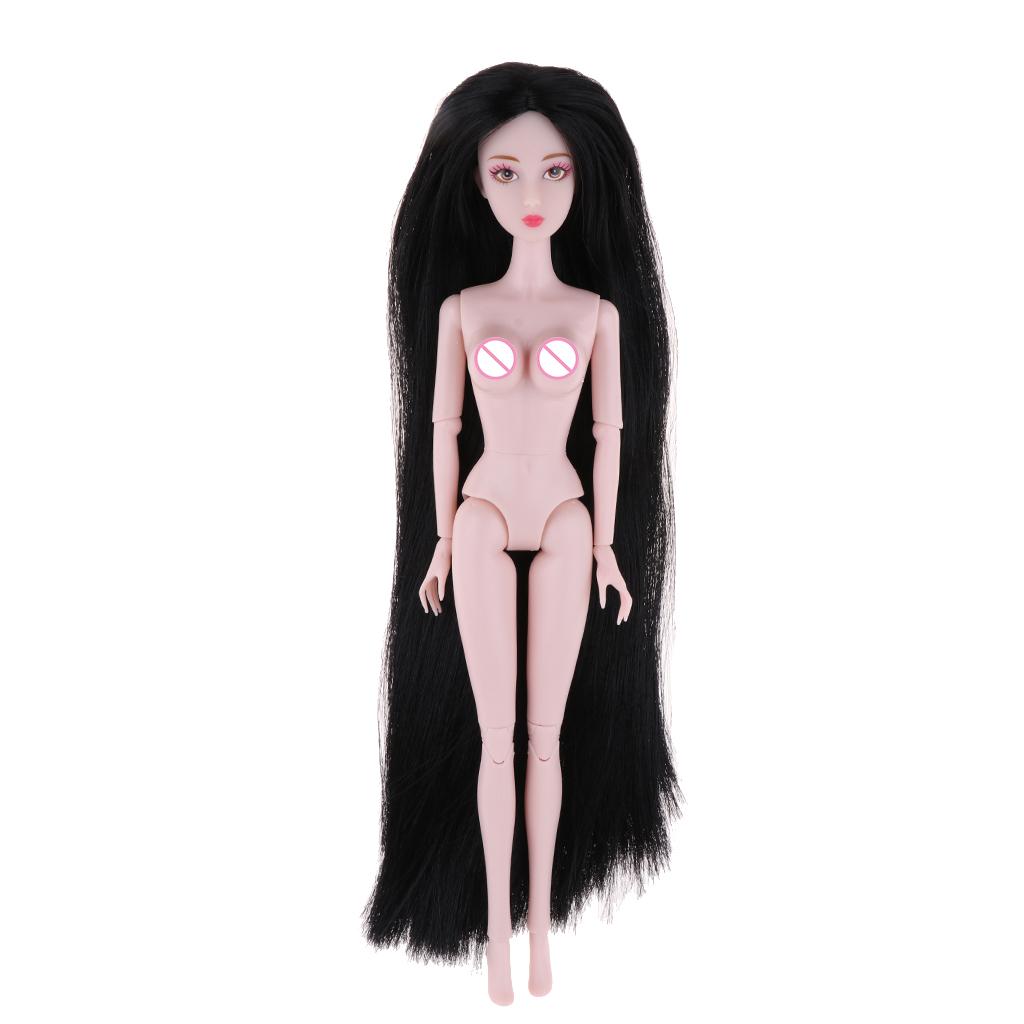 1/6 BJD Ball Jointed Dolls Pink Skin Tone Nude Body Girl Model with Head and Long Straight Black Hair
