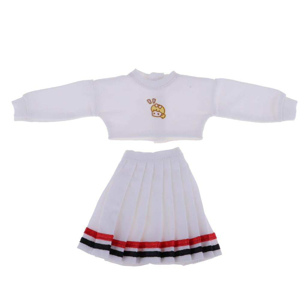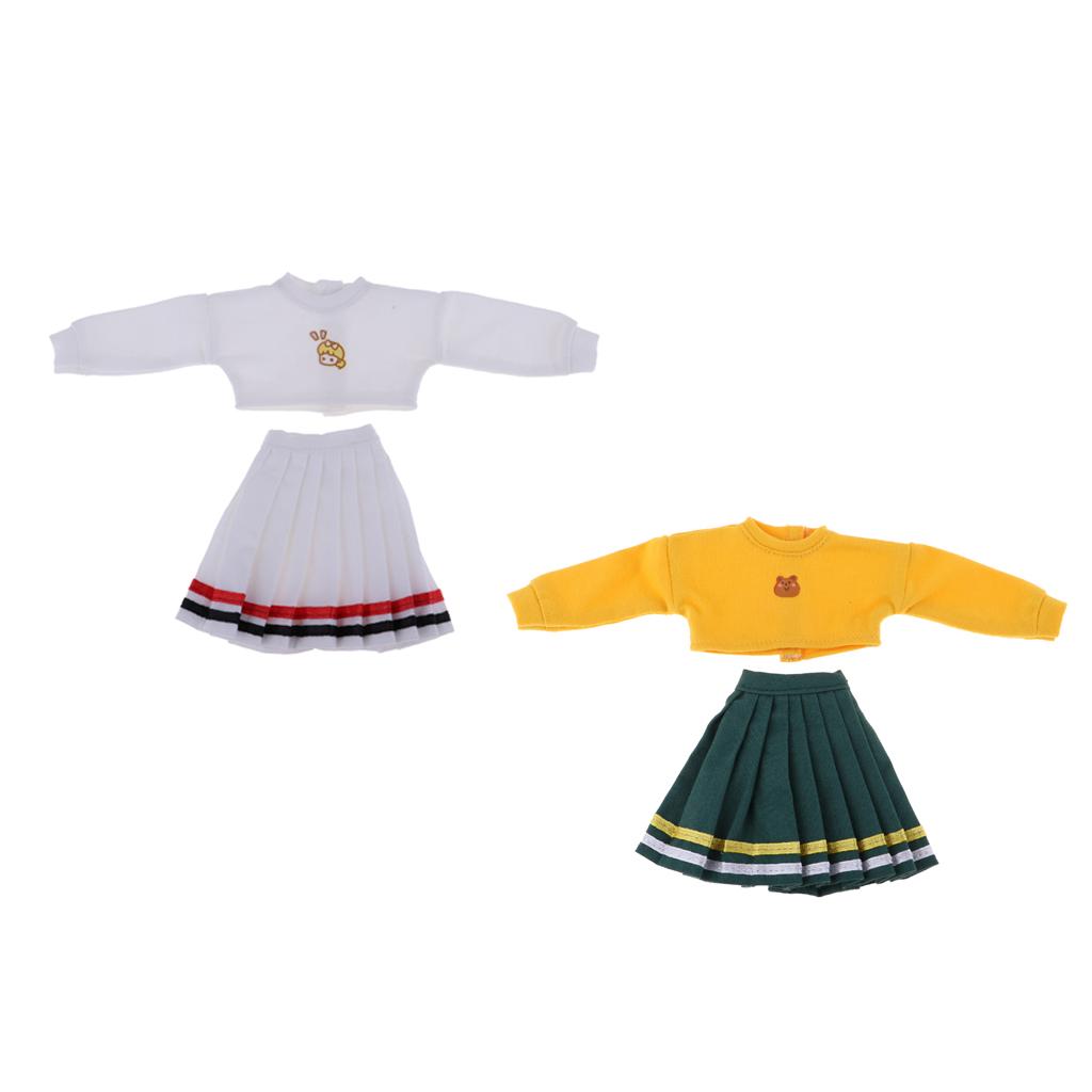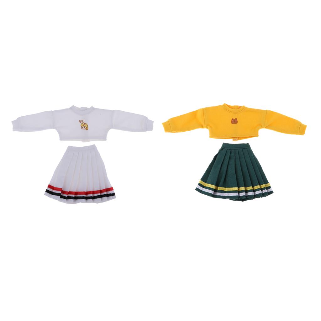 Long sleeve top and pleated skirt set outfit clothes for 1/6 scale fashion dolls
