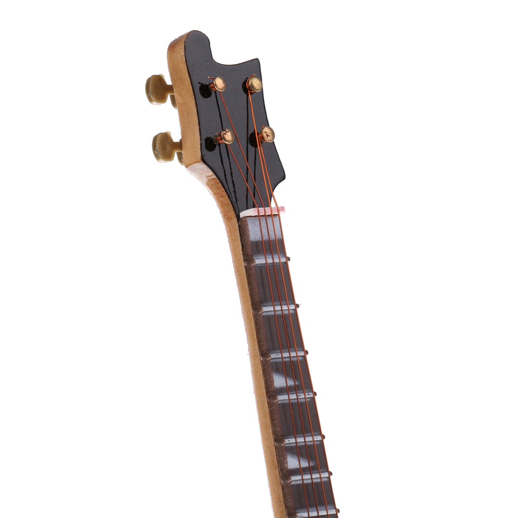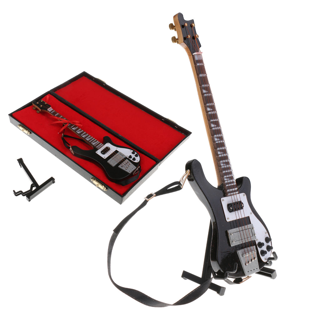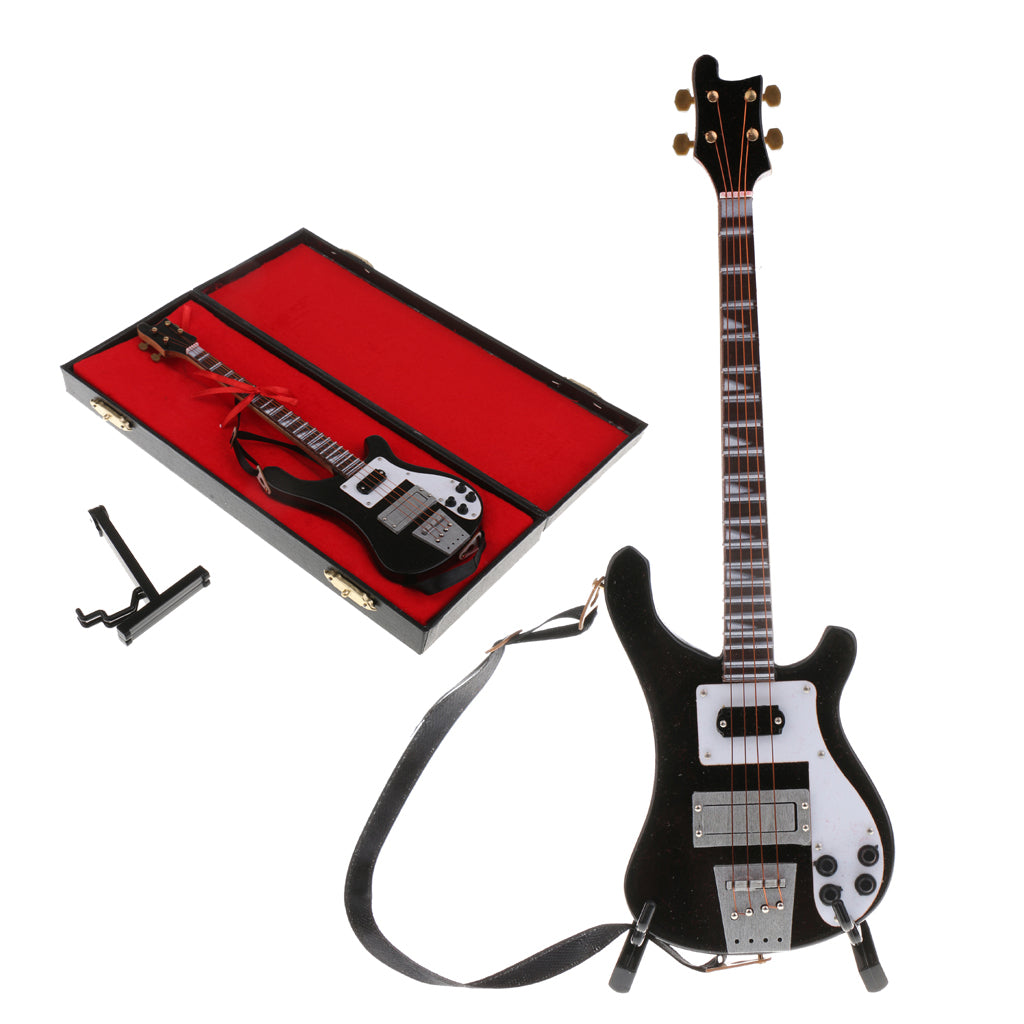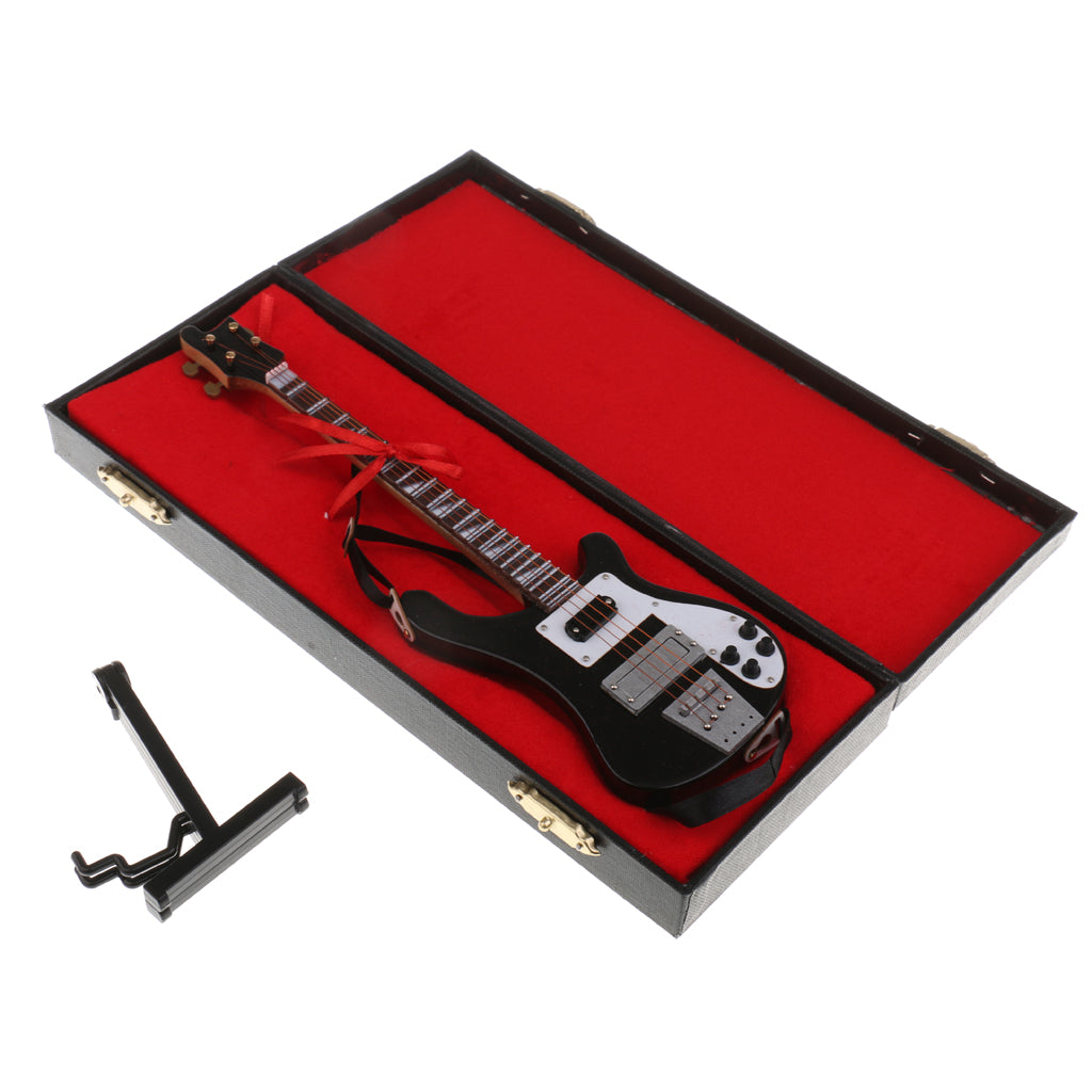 1/6 Scale Miniature Wooden Electric Bass Model with Box and Support