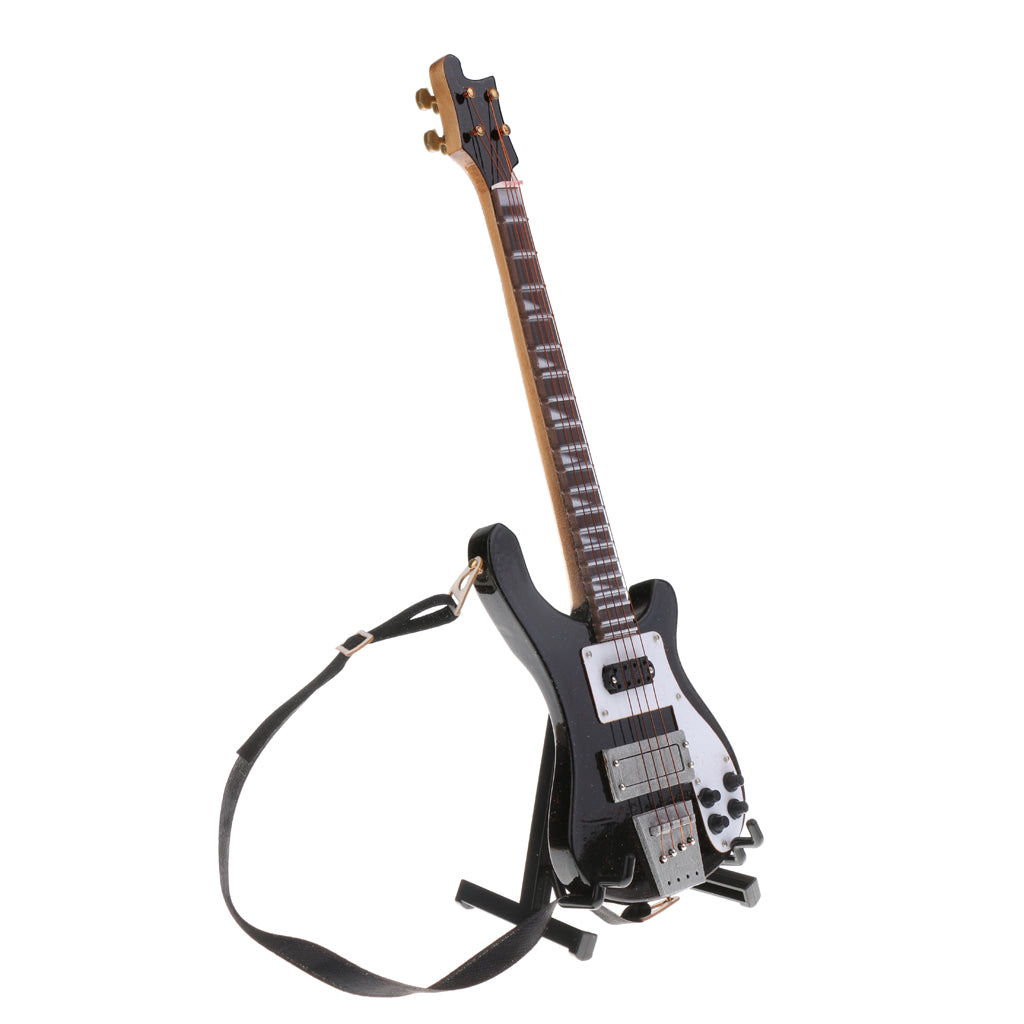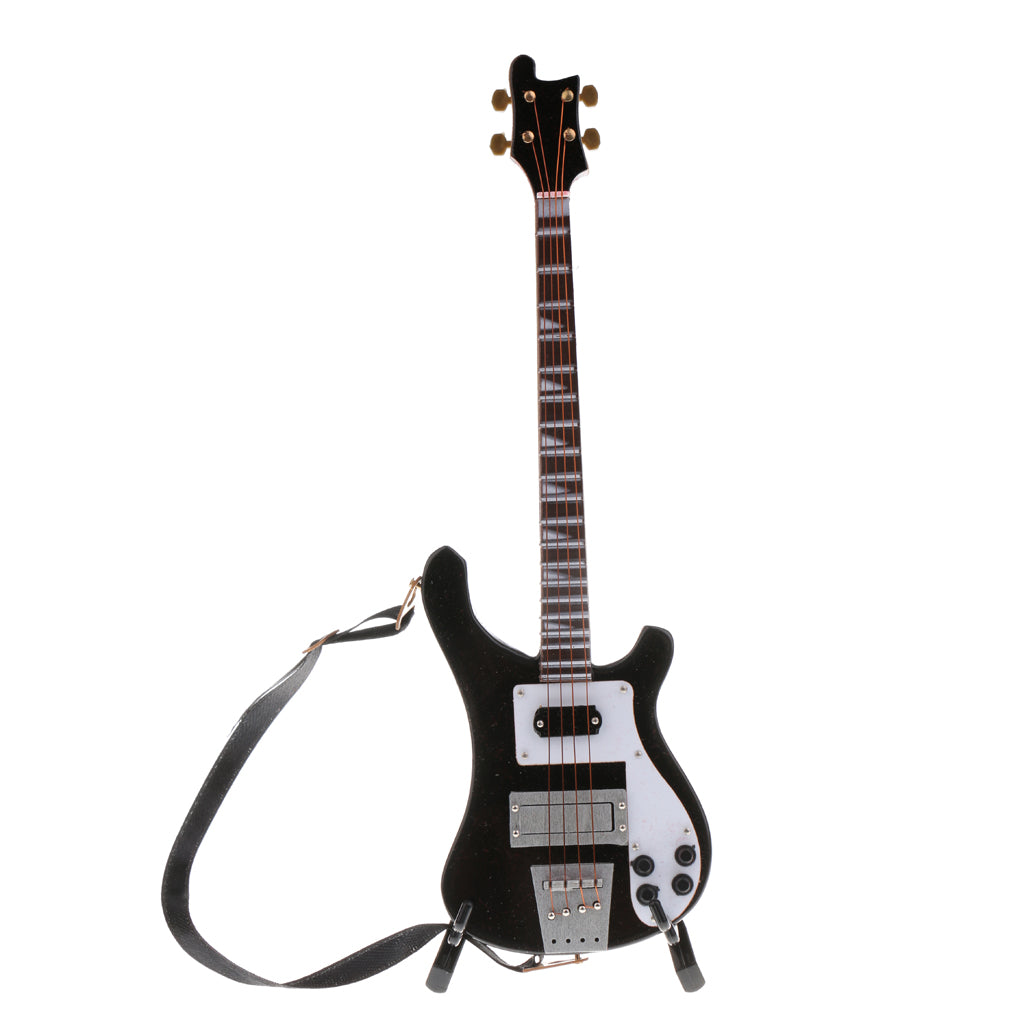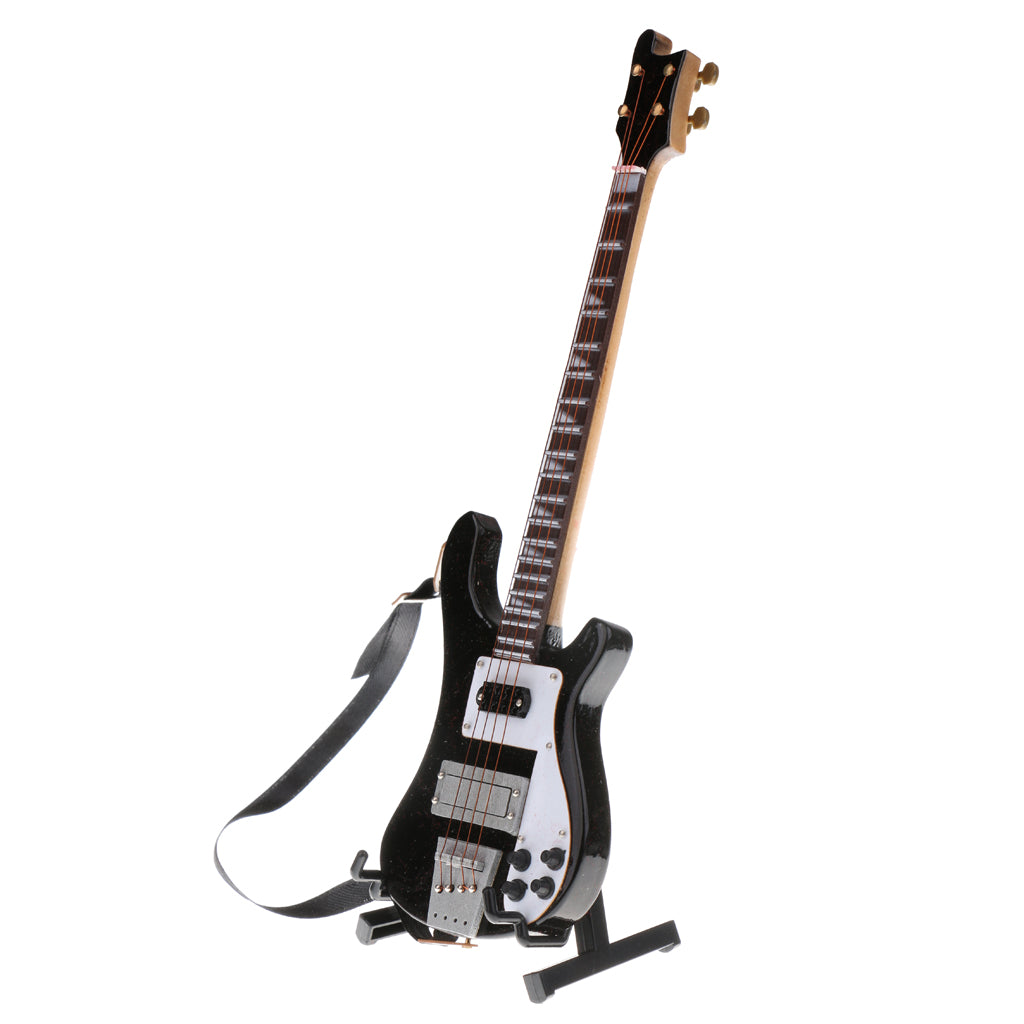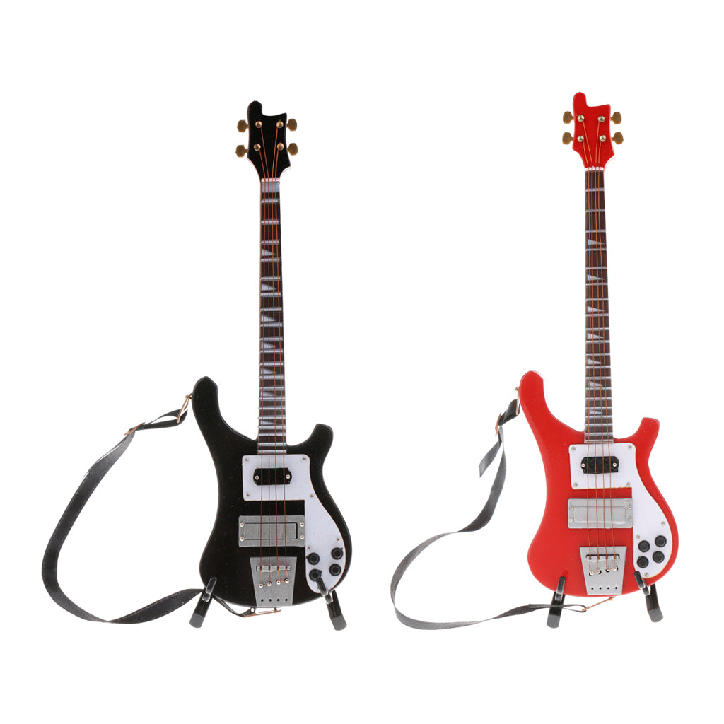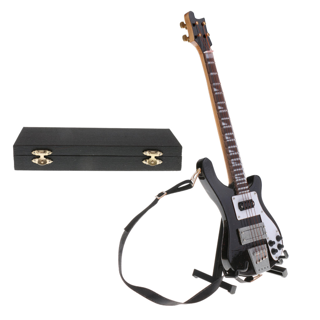 1/6 Scale Miniature Wooden Electric Bass Model with Box and Support