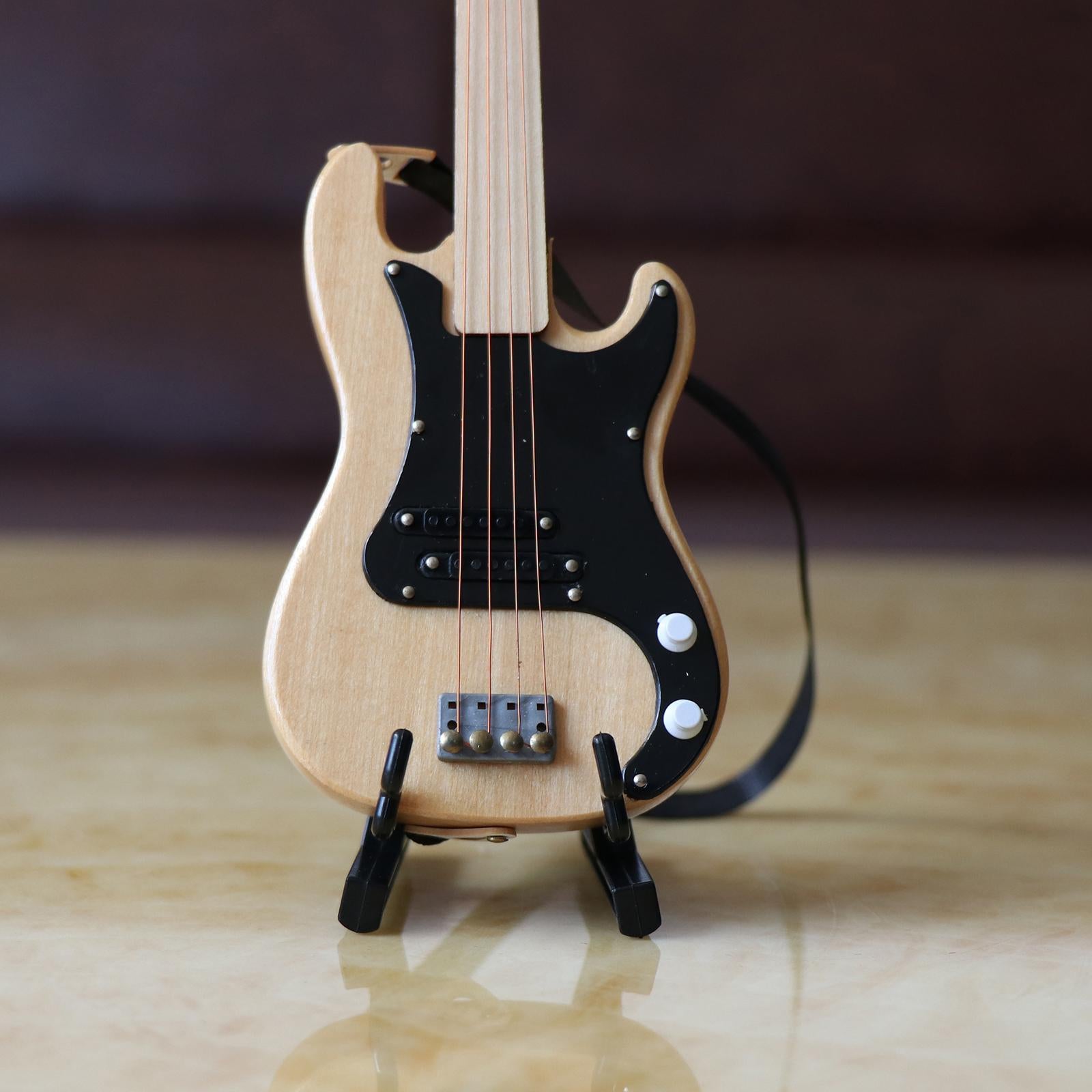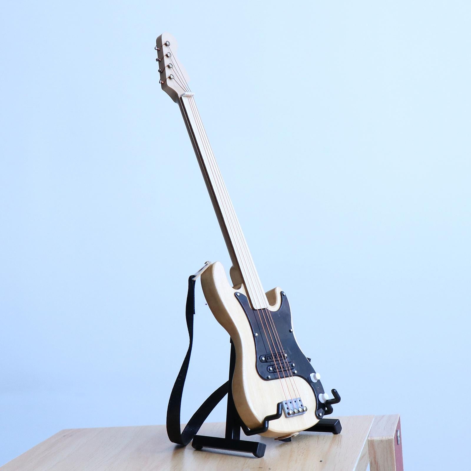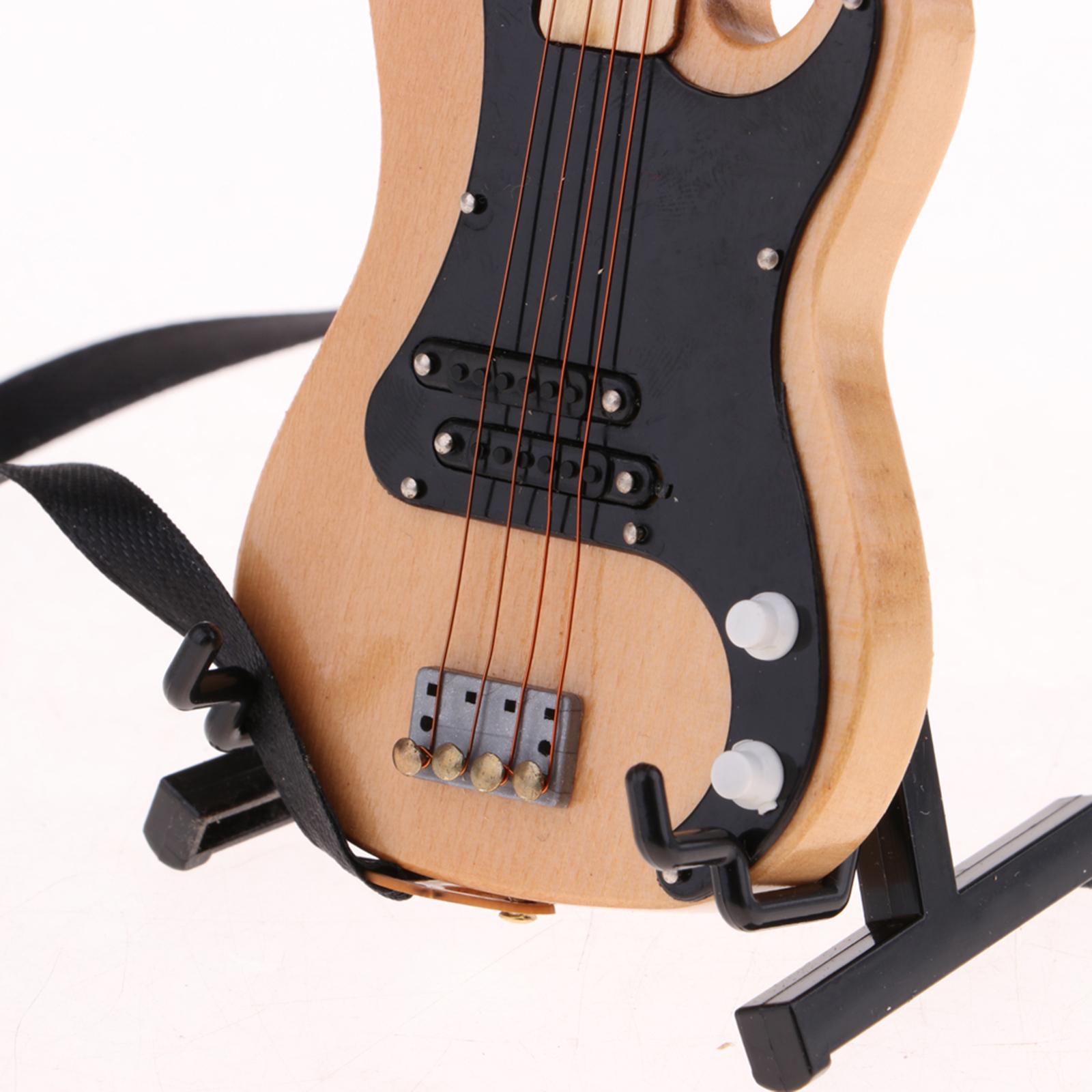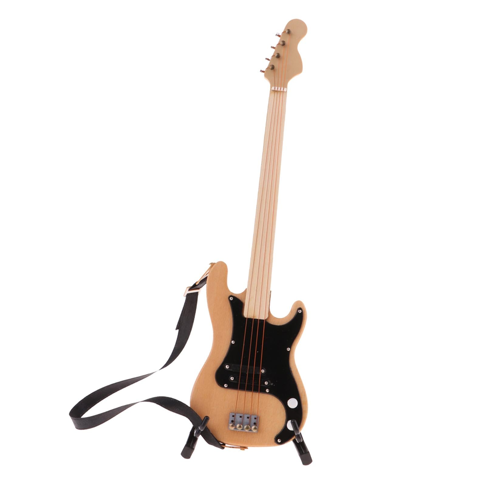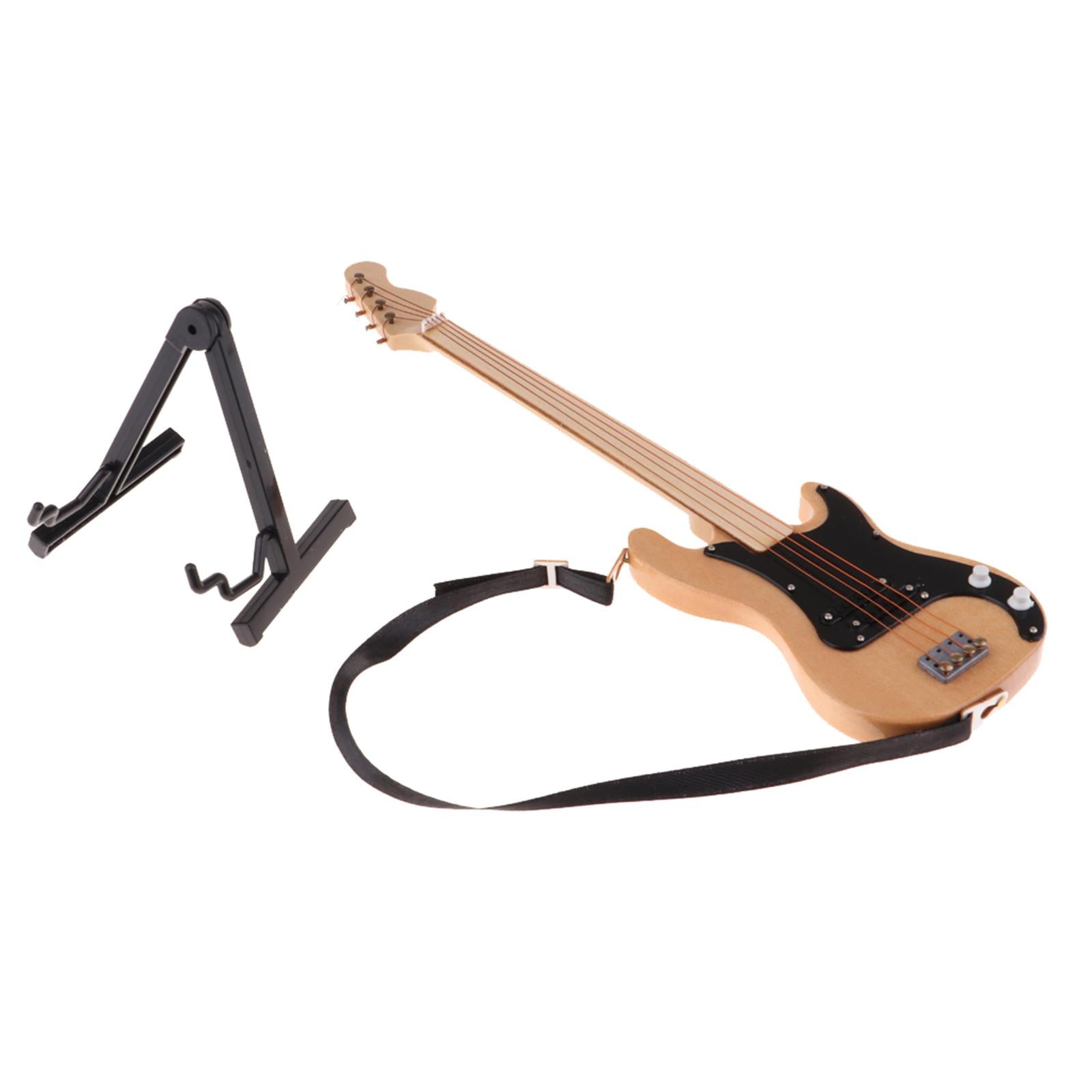 1/6 scale miniature wooden electric bass guitar with stand and strap musical instrument model kit for dolls house decor accessories
