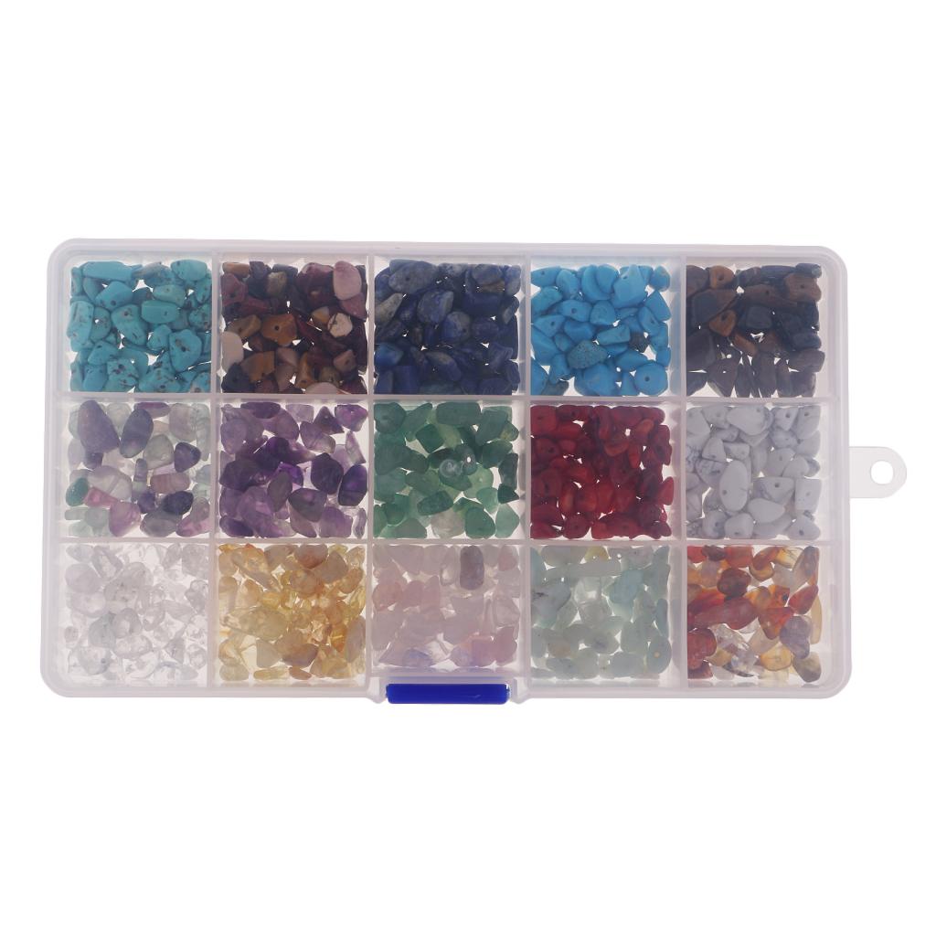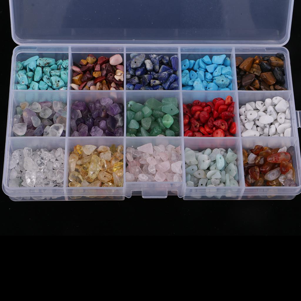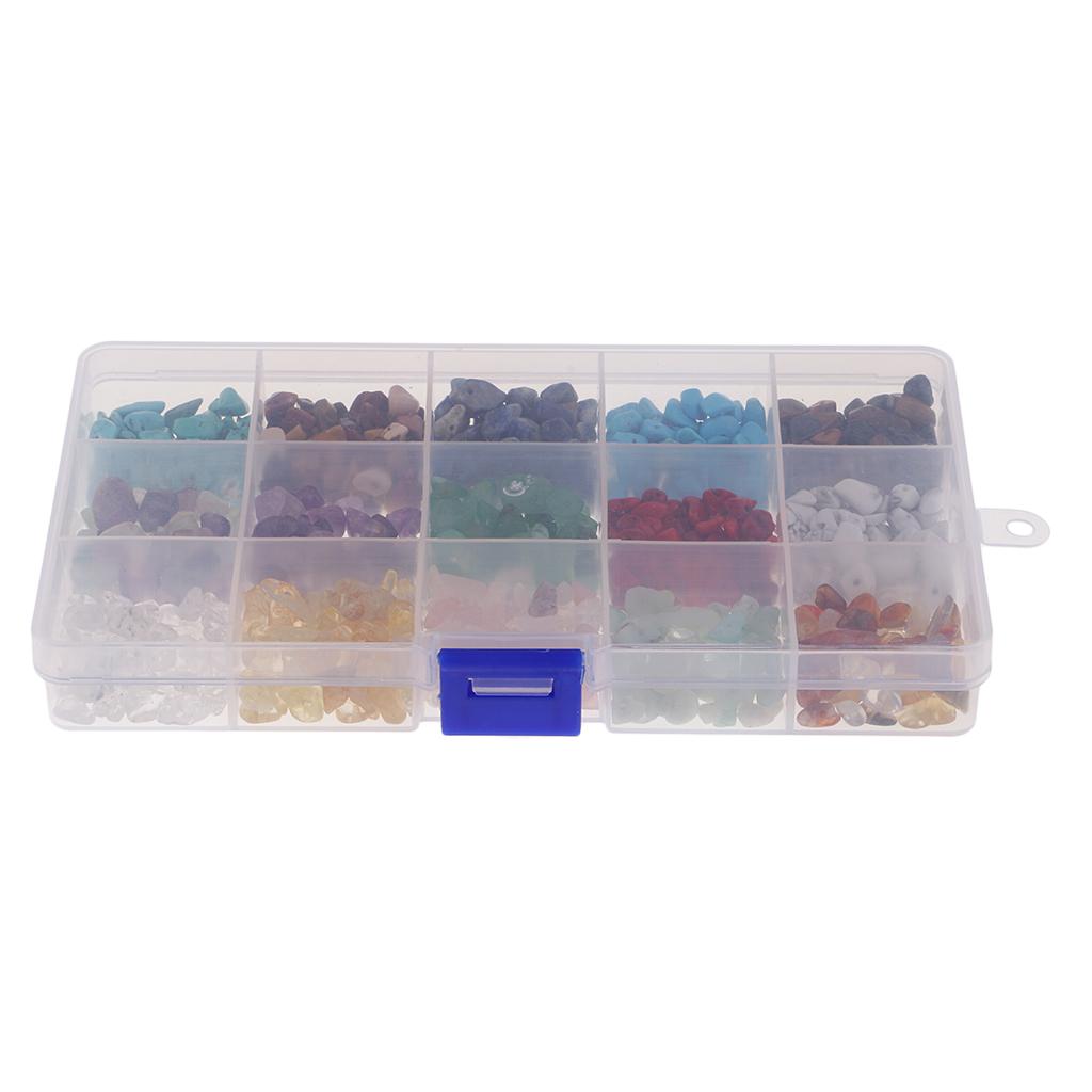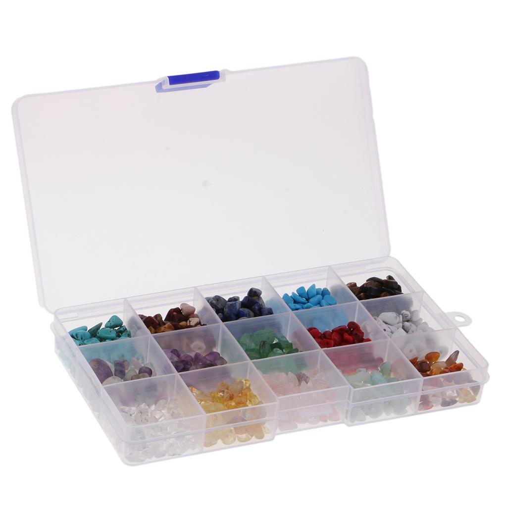 1 sets Irregular 15 colors Rock Chips packed in a transparents plastic box.