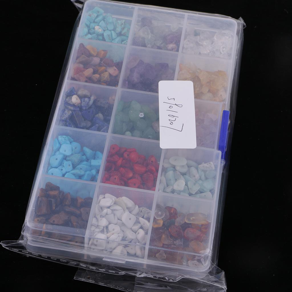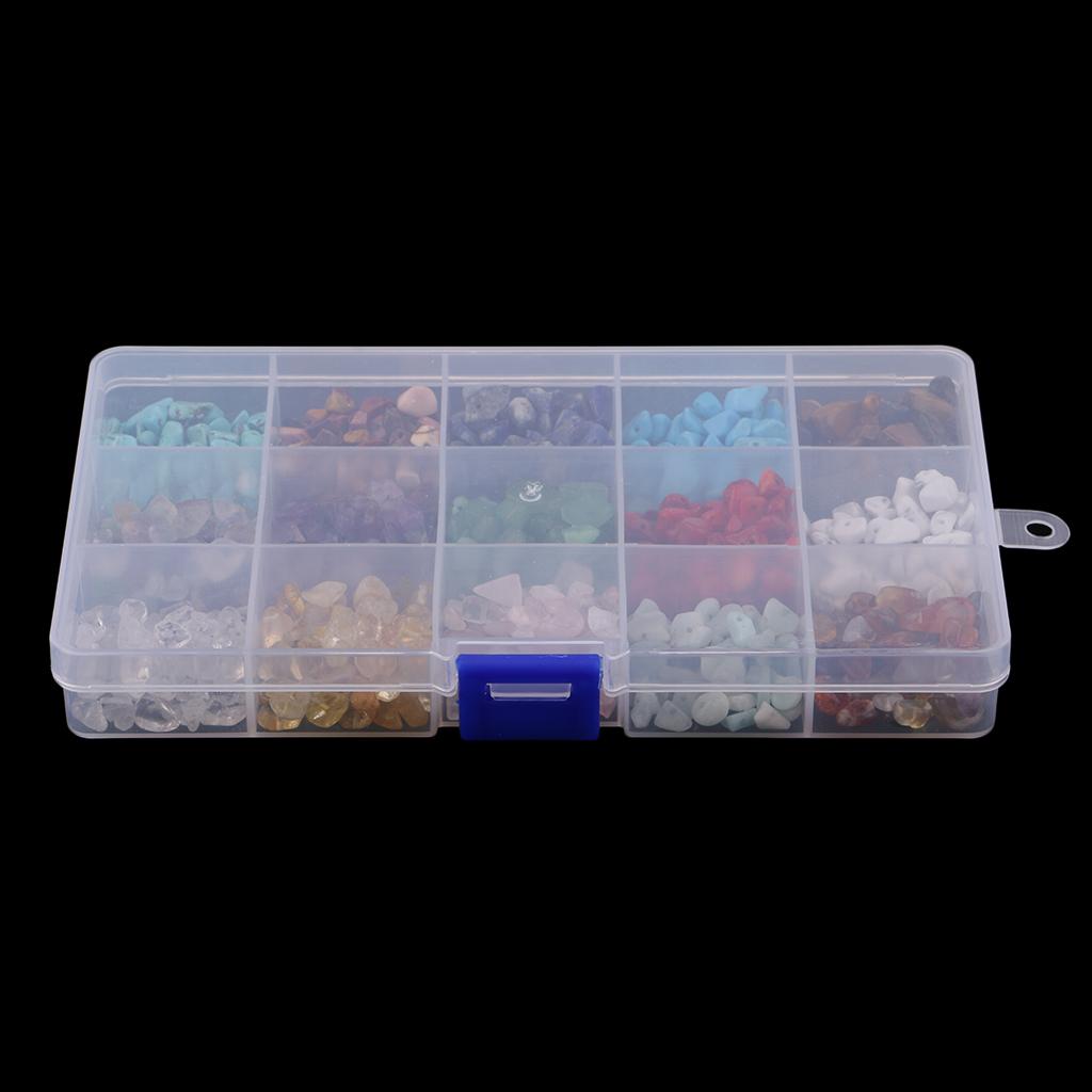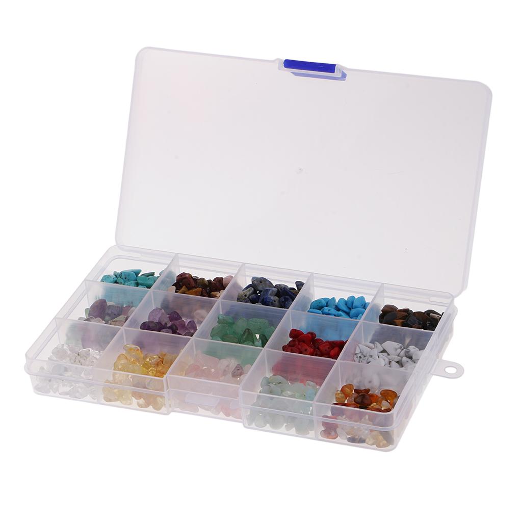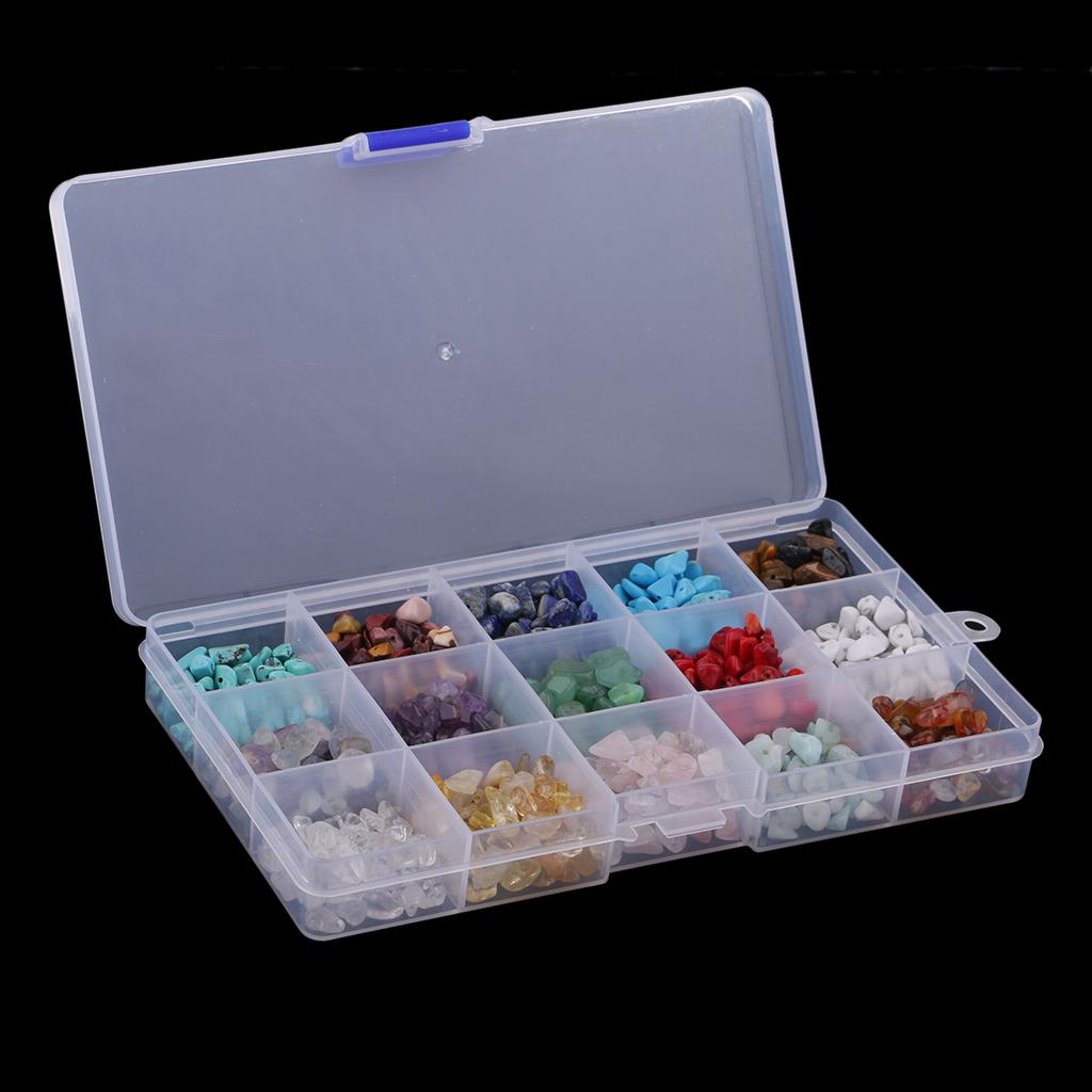 1 sets Irregular 15 colors Rock Chips packed in a transparents plastic box.