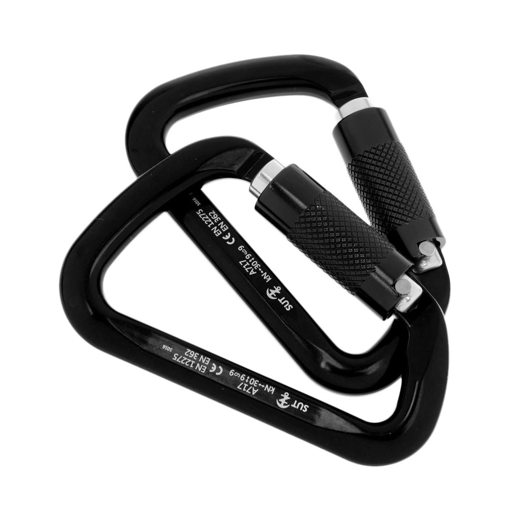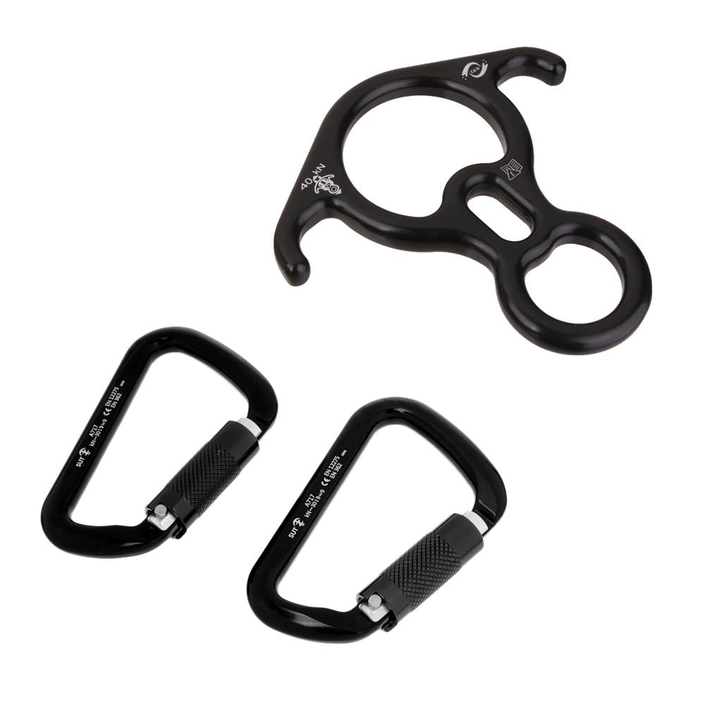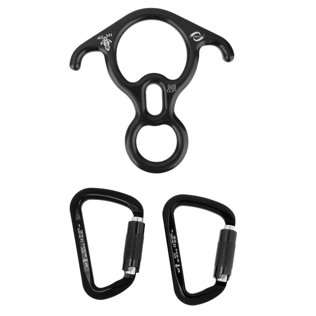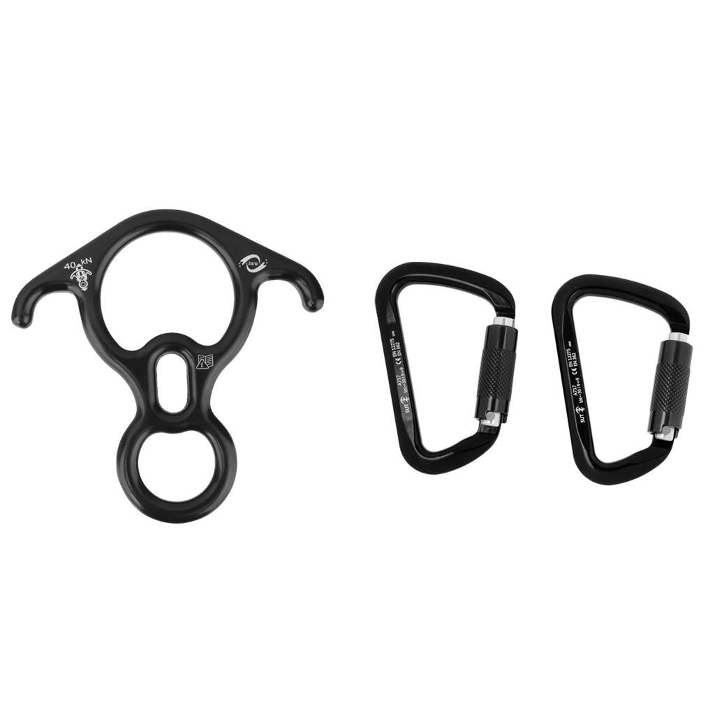 1 Set of 1 Pair 30KN D Ring Auto Locking Climbing Carabiner + 40KN Figure 8 Descender.