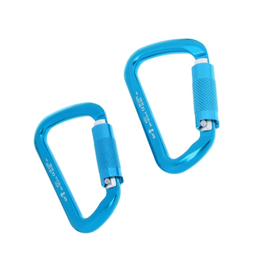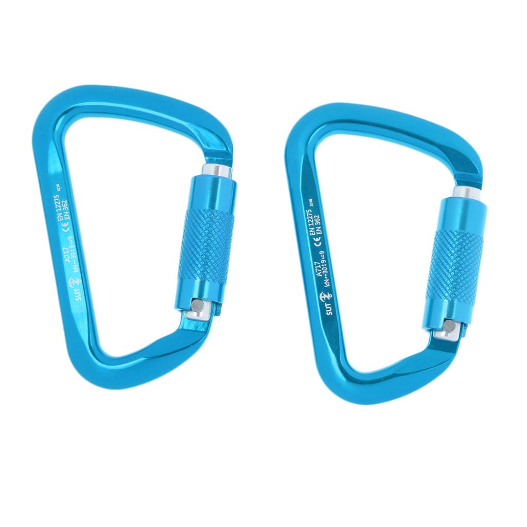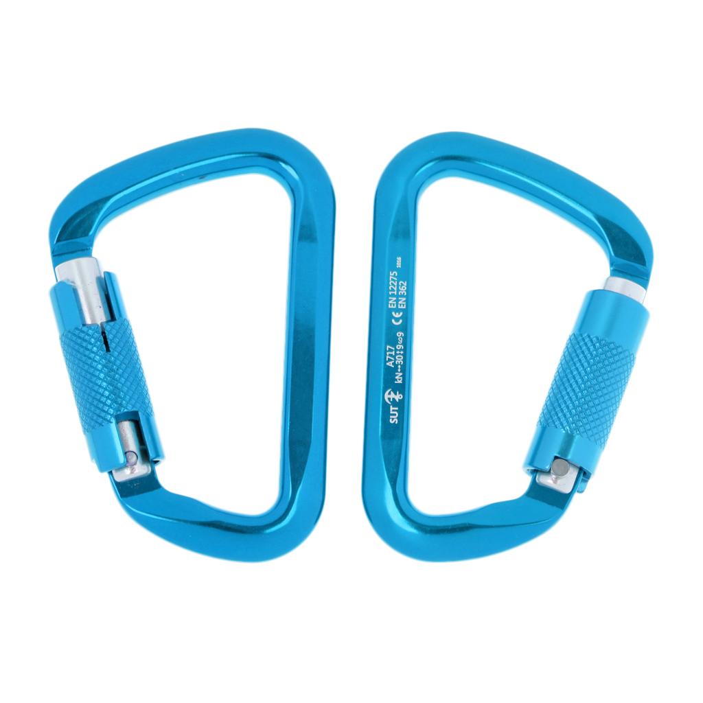 1 Pair 30KN D-Ring Twist Auto Locking Rock Climbing Carabiner Rescue Blue