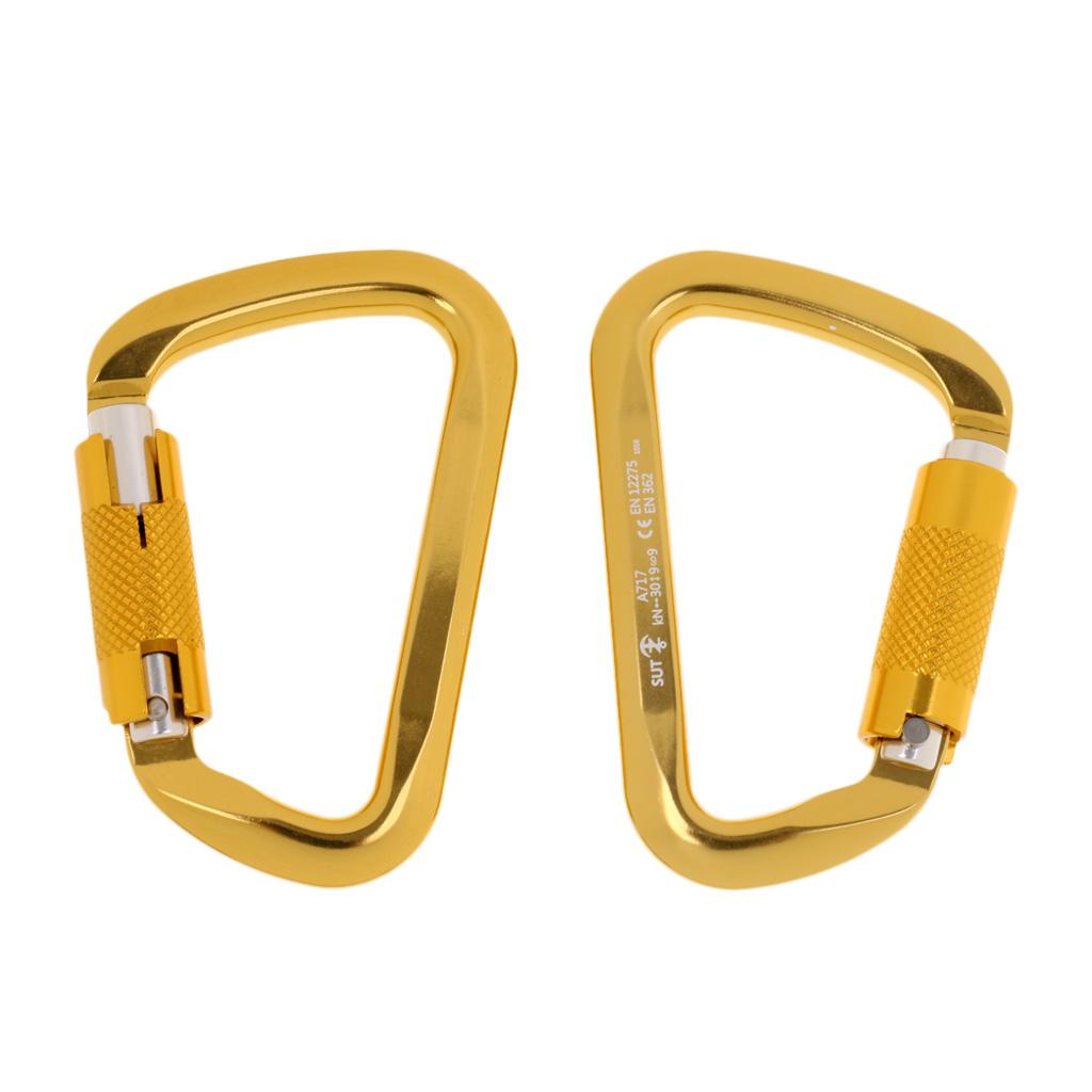 1 Pair 30KN D-Ring Twist Auto Locking Rock Climbing Carabiner Rescue Gold