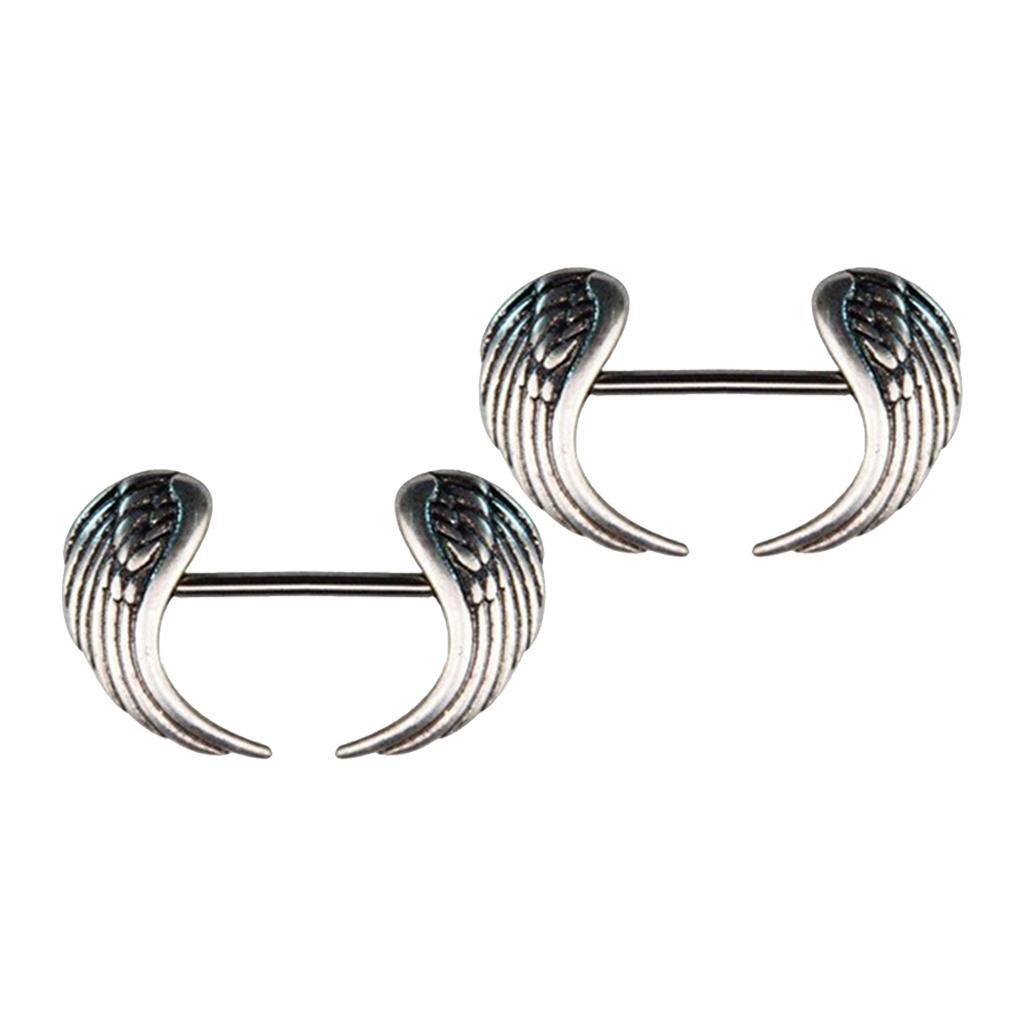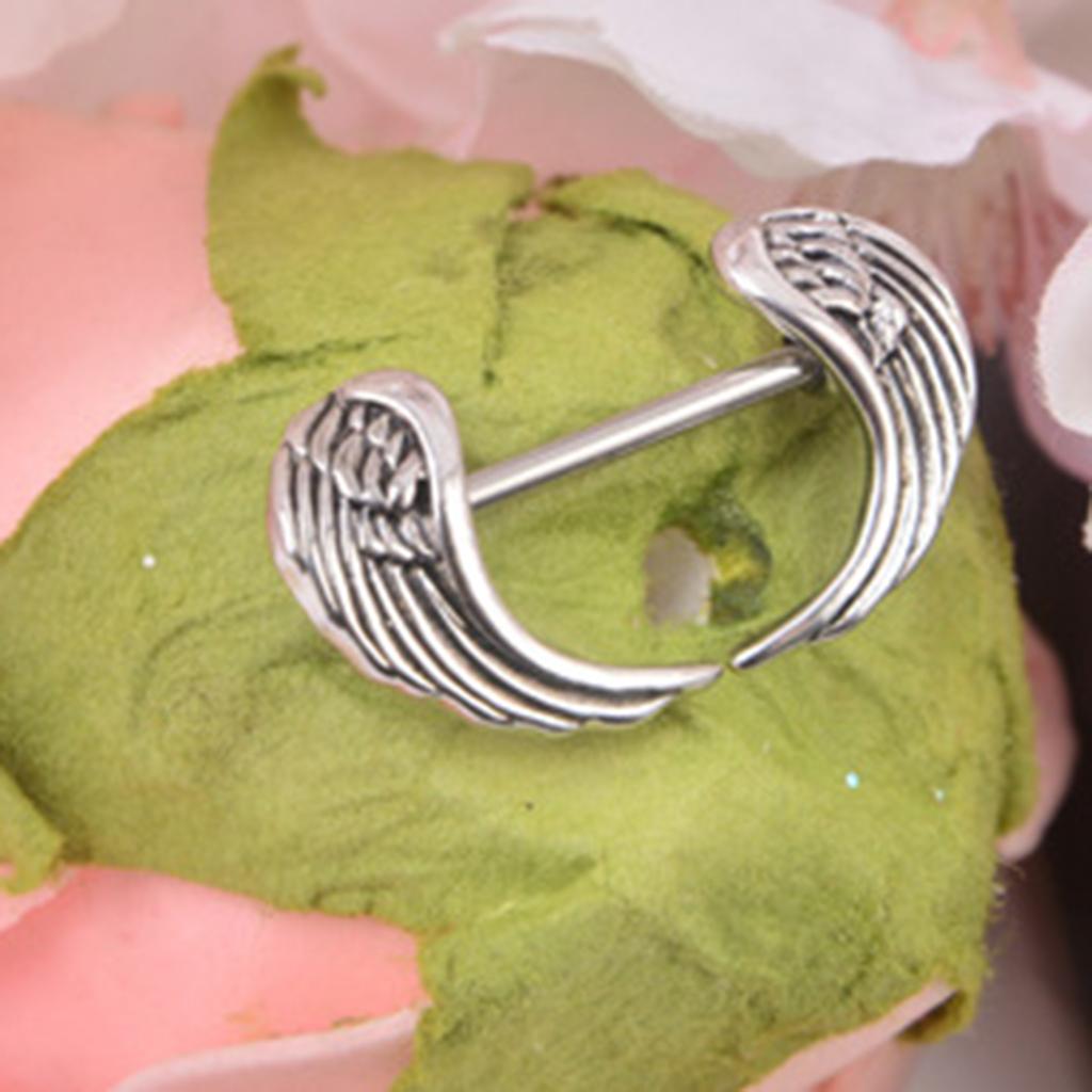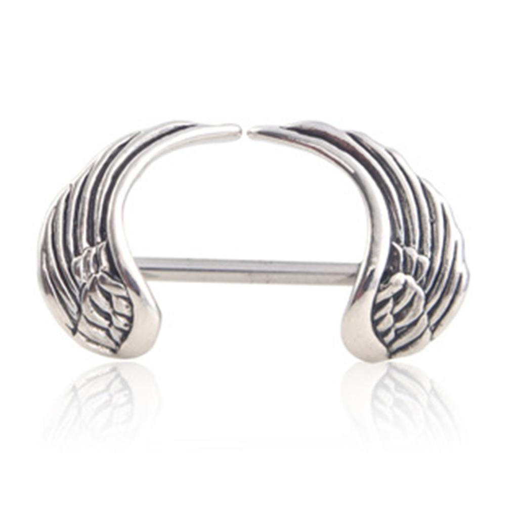 Gauge Size: 14 Gauge =1.6 mm, angel wing shape charms straight bar barbell shield nipple ring.