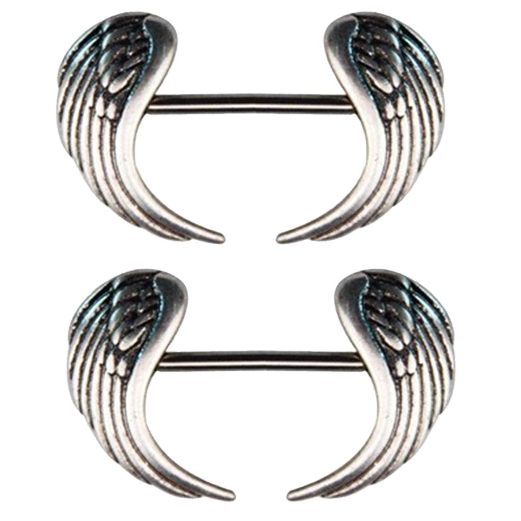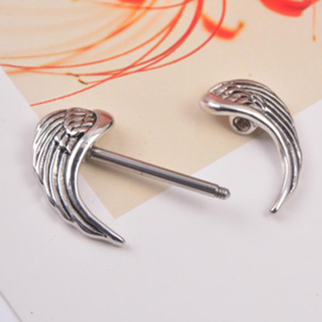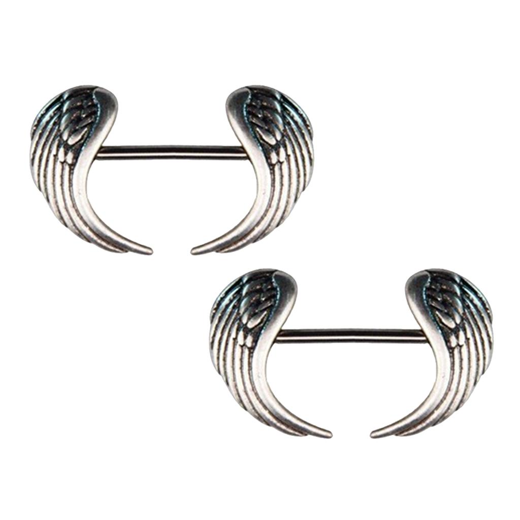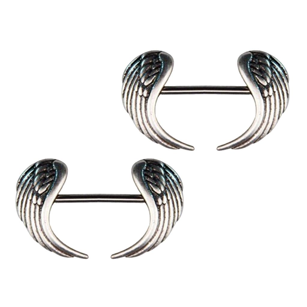 Gauge Size: 14 Gauge =1.6 mm, angel wing shape charms straight bar barbell shield nipple ring.