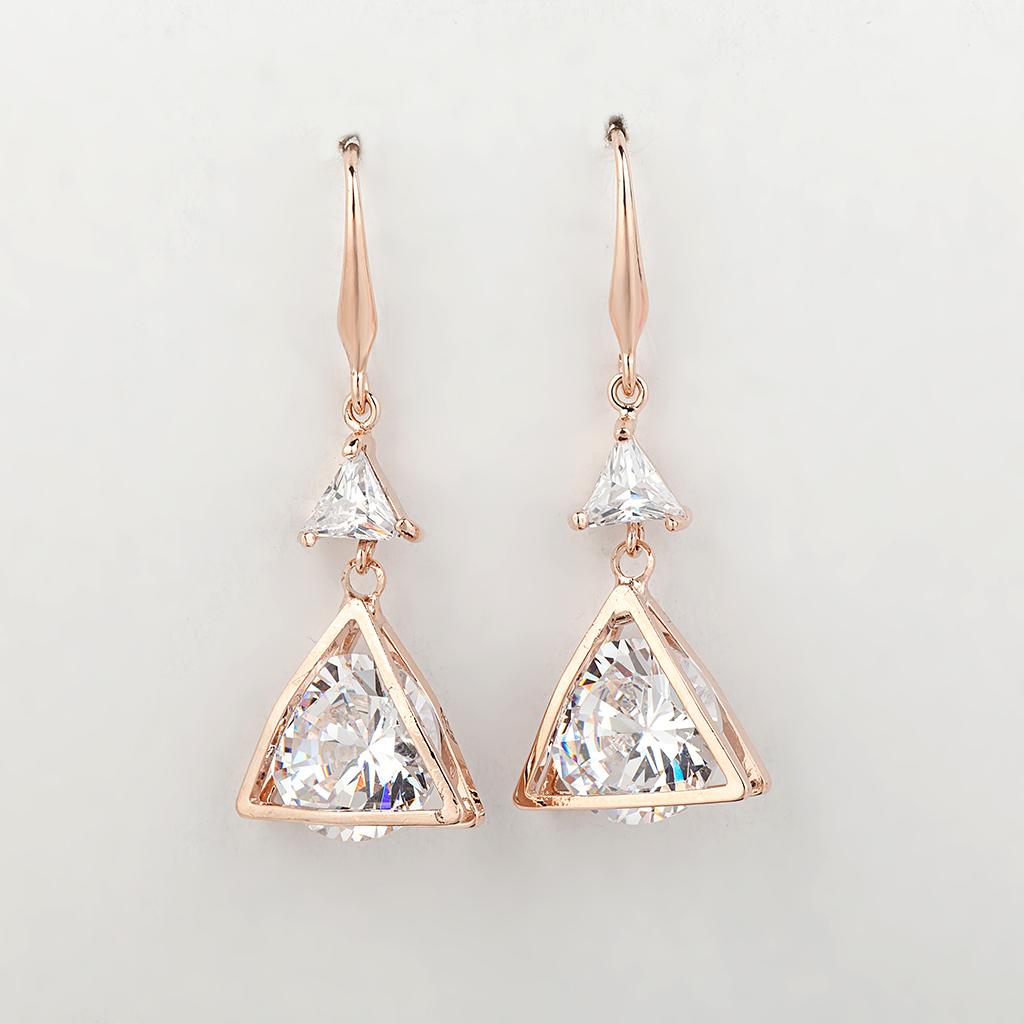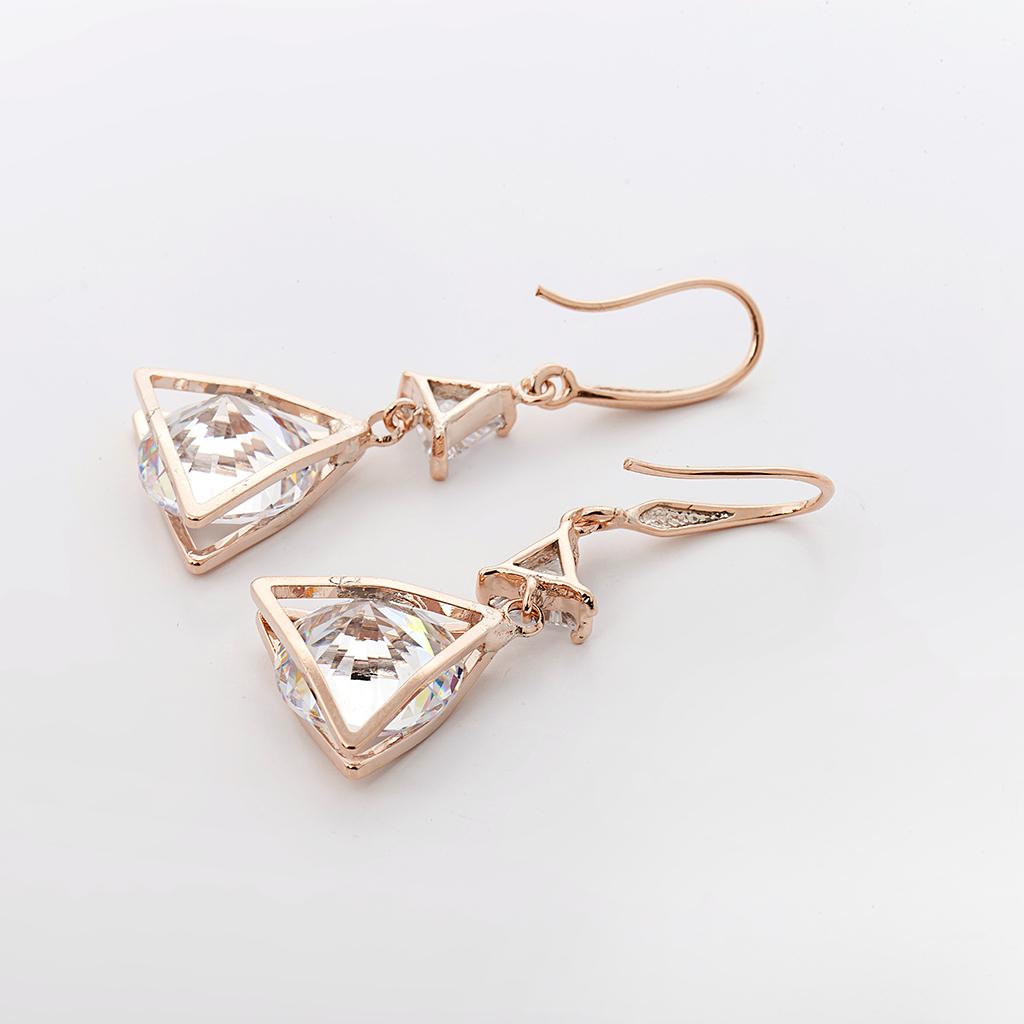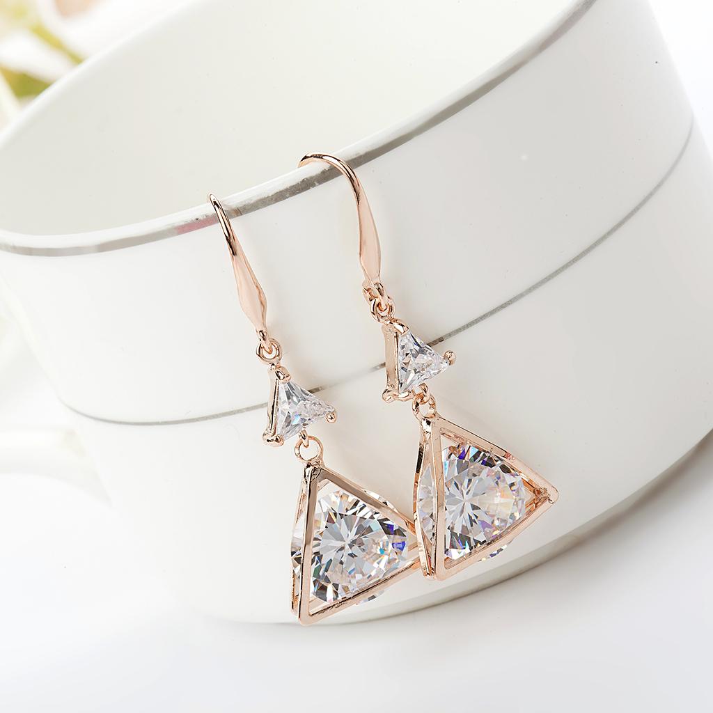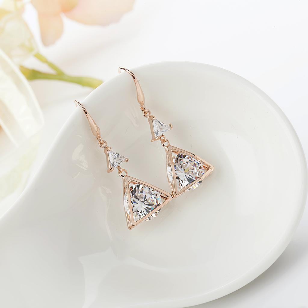 Export quality fashion Trangle earring for party and wedding. Made with finest quality of Gold plated copper material. This earring comes with Golden zircon trangle heart finish.