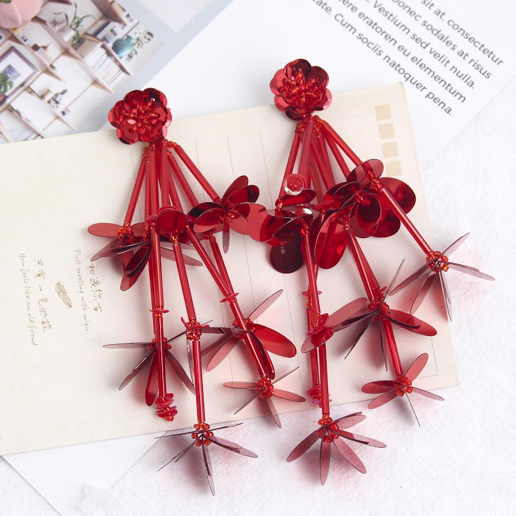 1 Pair Fashion Charm Women Handmade Tassel All Occasions Ear Studs Red