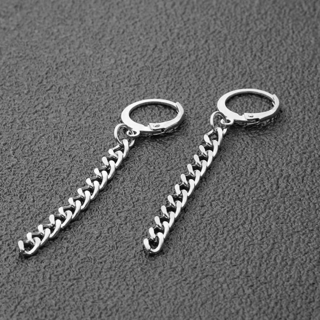 Hip Hop Stainless Steel Long Chain Dangle Hoop Earrings, Great Gift for Friend, Lovers, Family, etc.