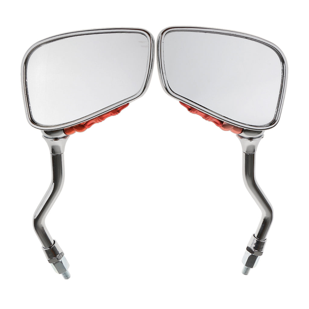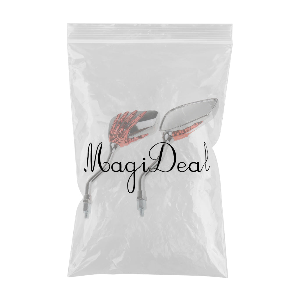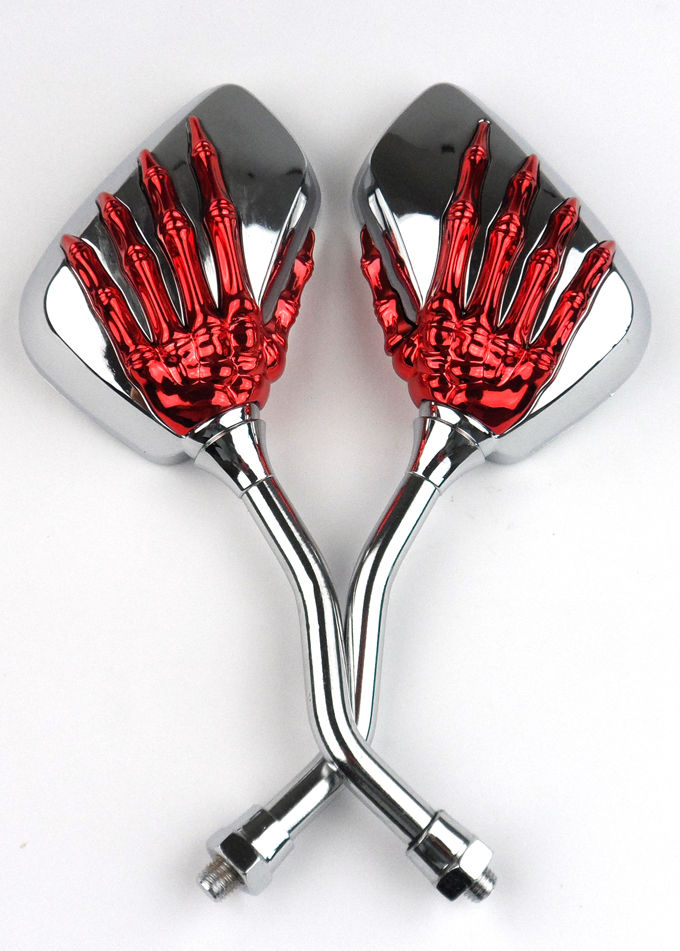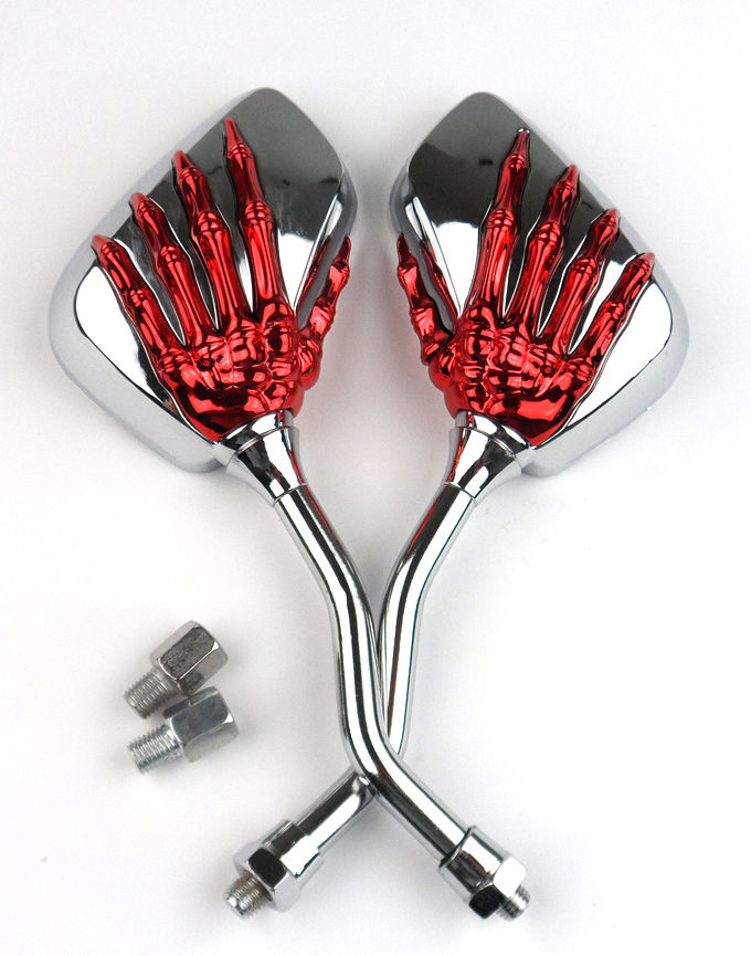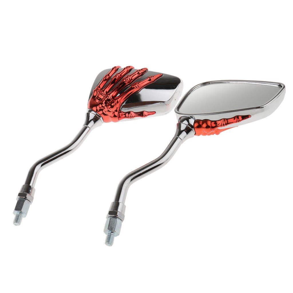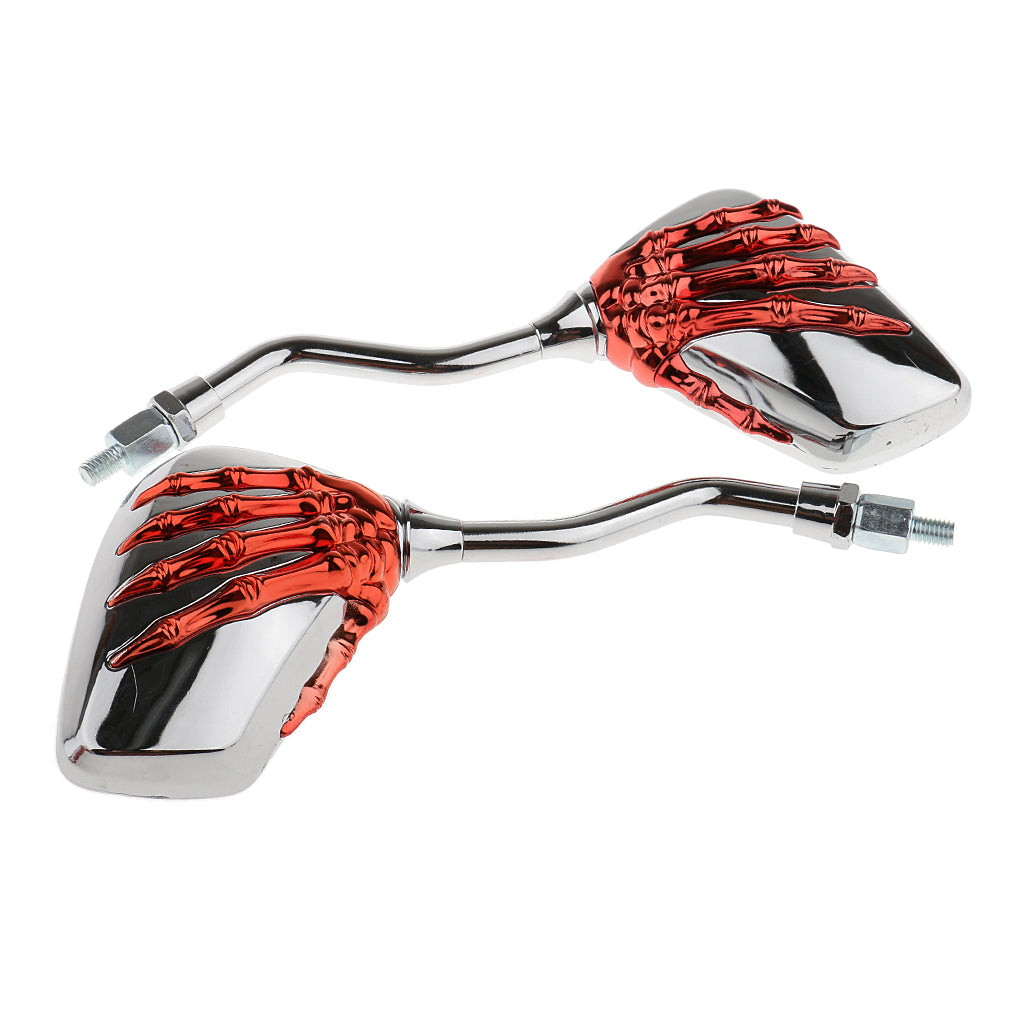 1 Pair Motorcycle Motorbike Skull Hand Rear View Glass Mirrors - Red