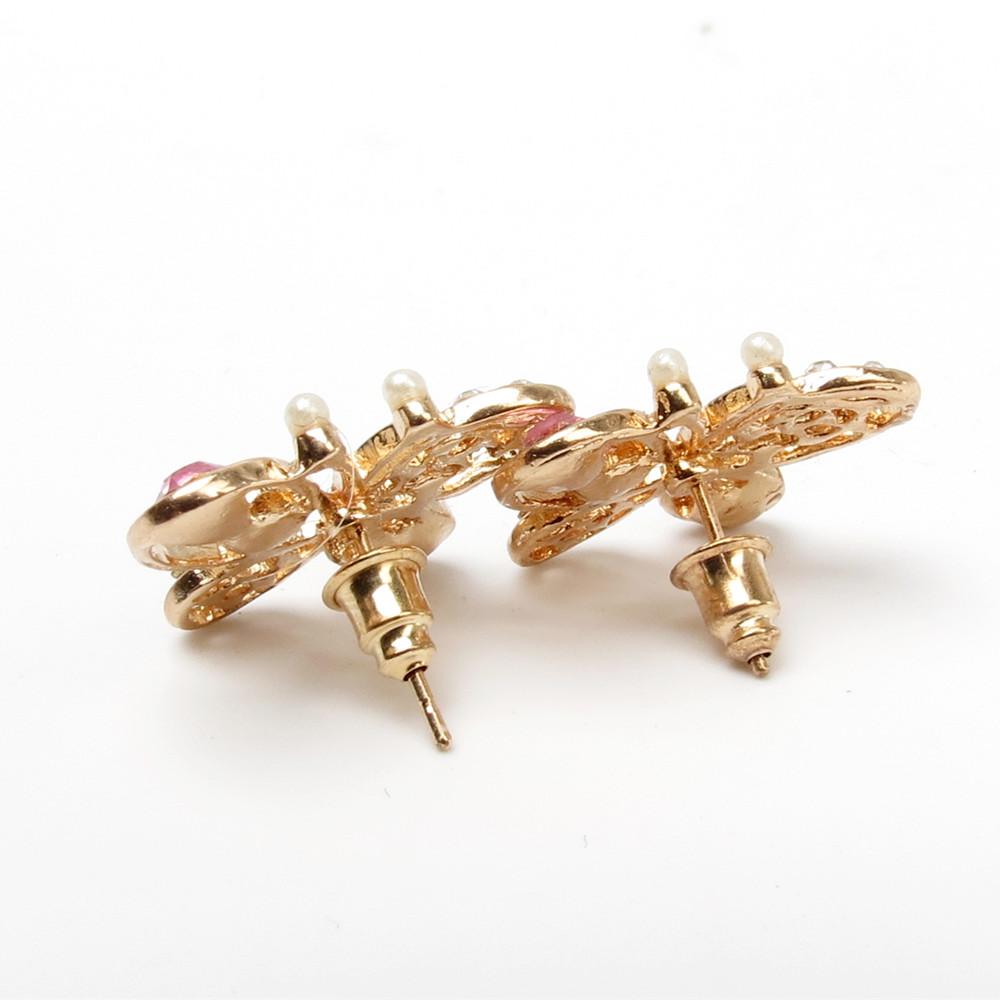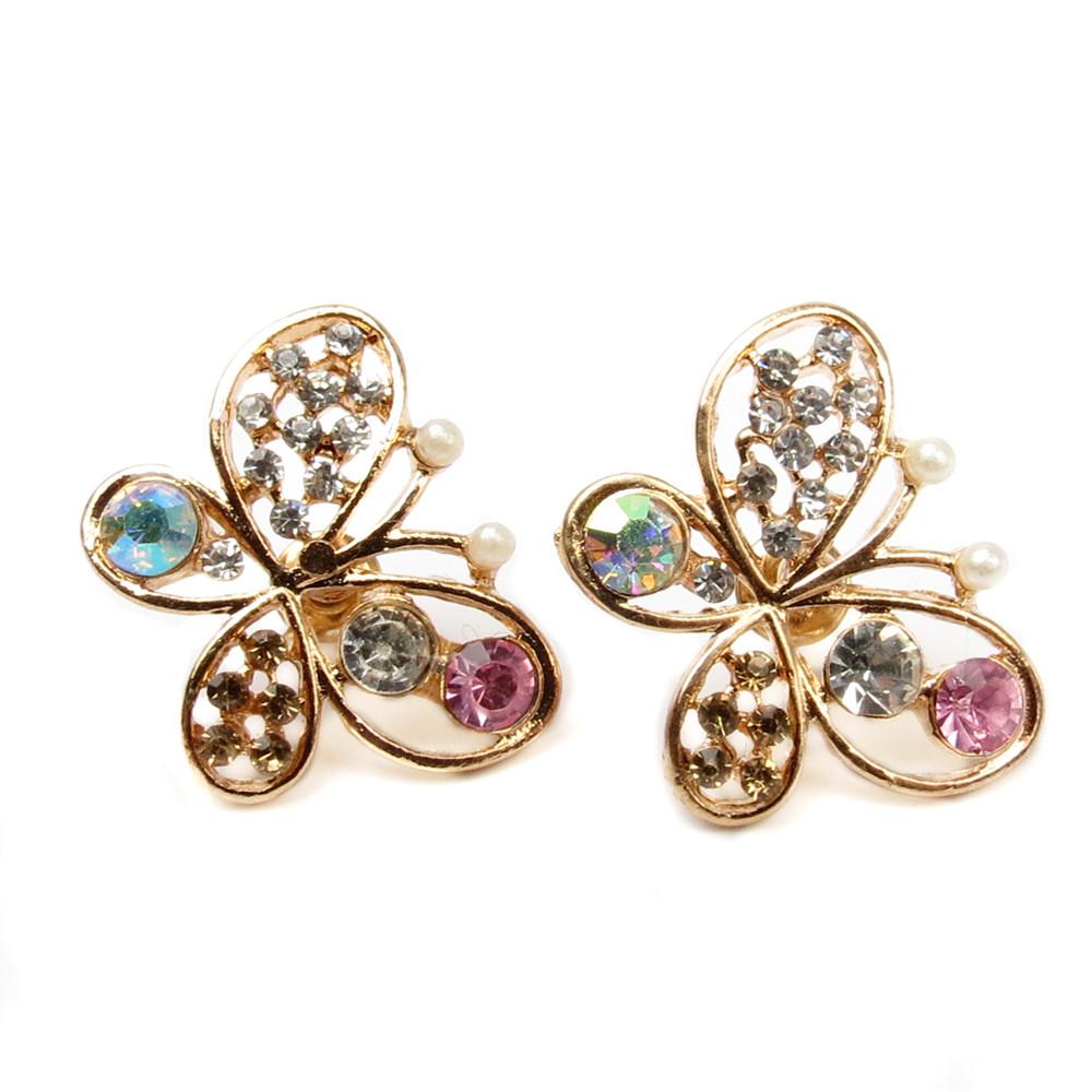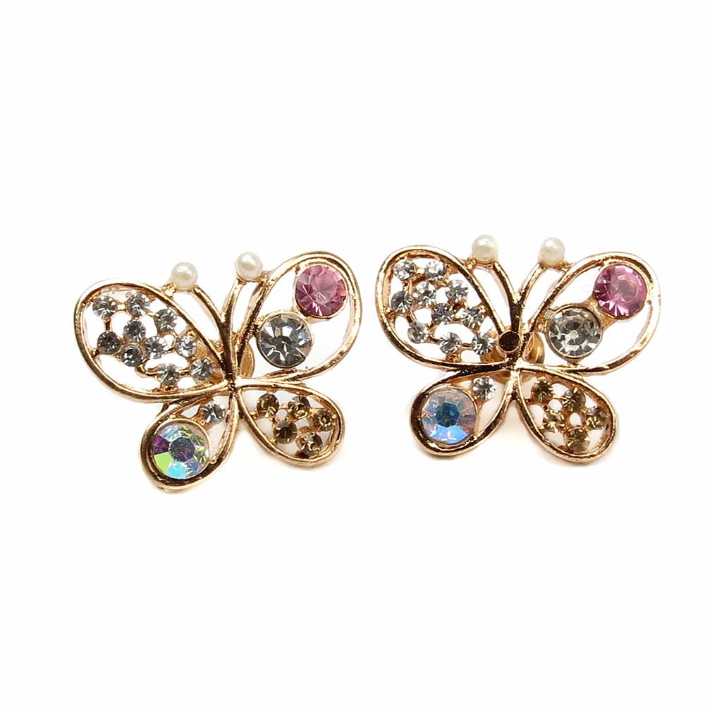 Modern style ear studs earrings in Butterfly design for party wedding and other ocasion. This earring is made of golden alloy metal and artificial Pearl and Rhinestone.