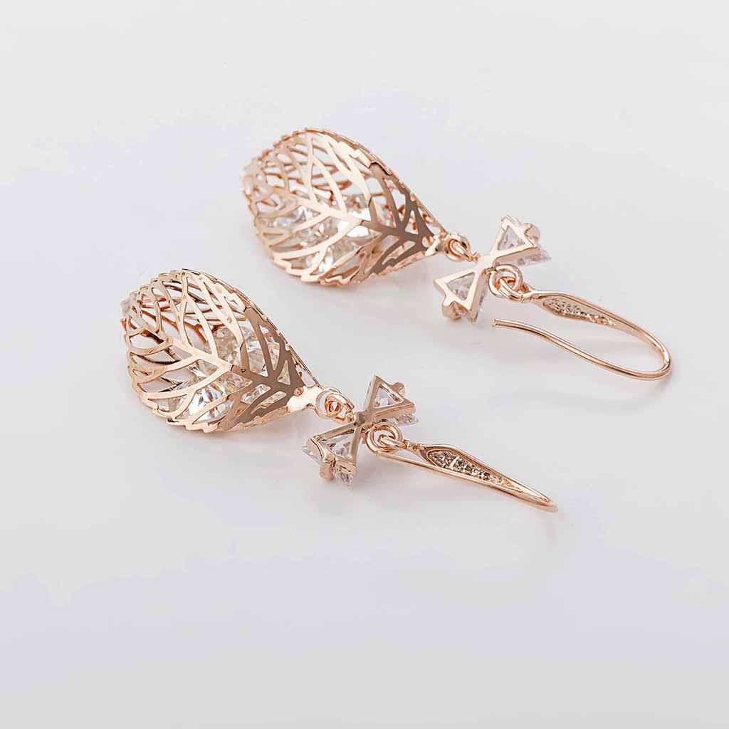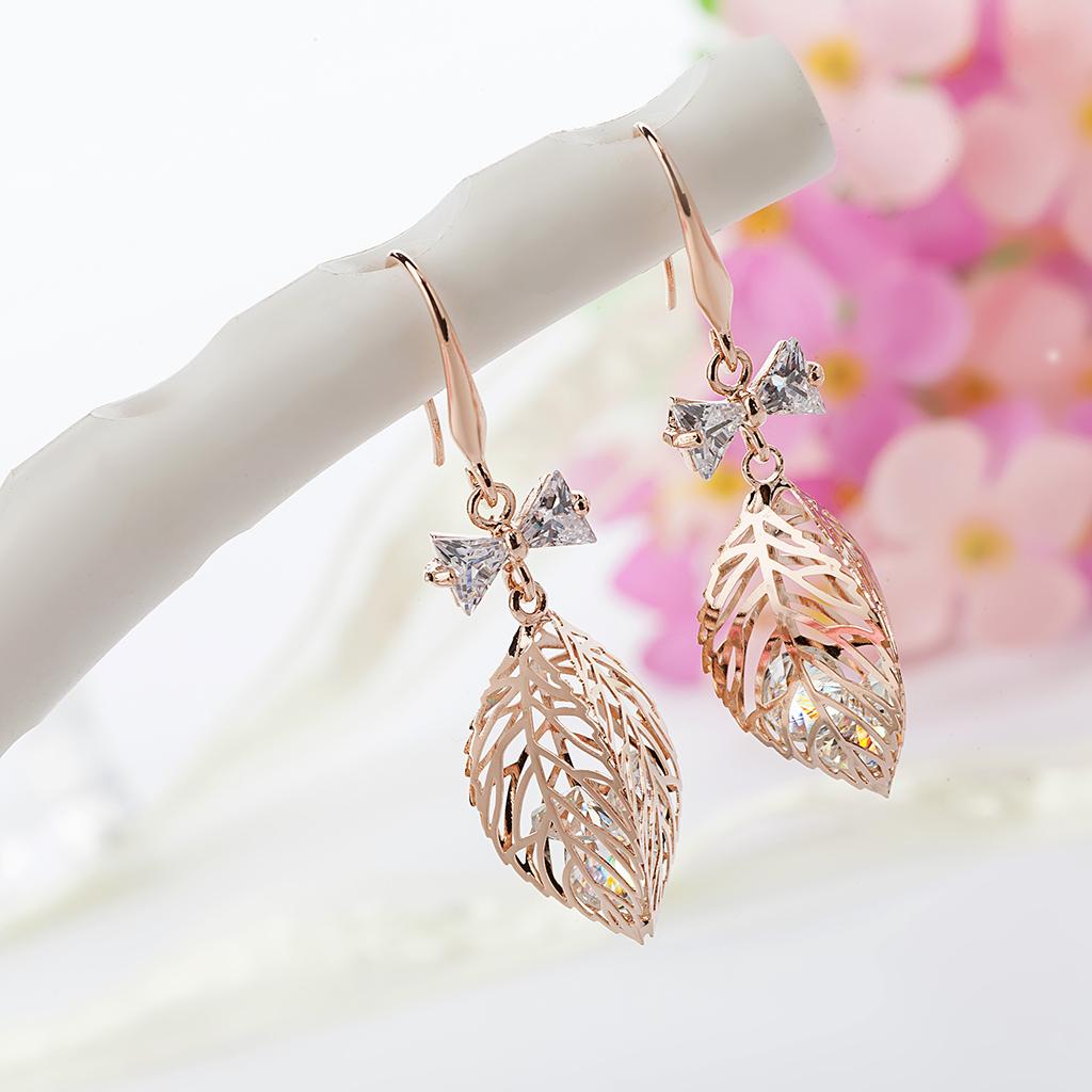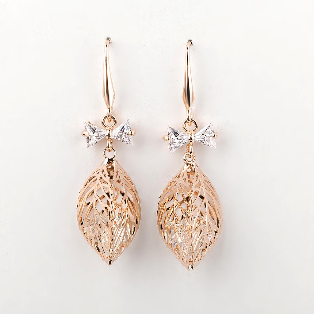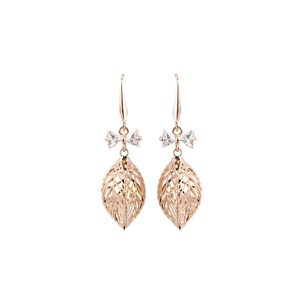Export quality fashion Leaf earring for party and wedding. Made with finest quality of Gold plated copper material. This earring comes with Golden zircon Leaf heart finish.