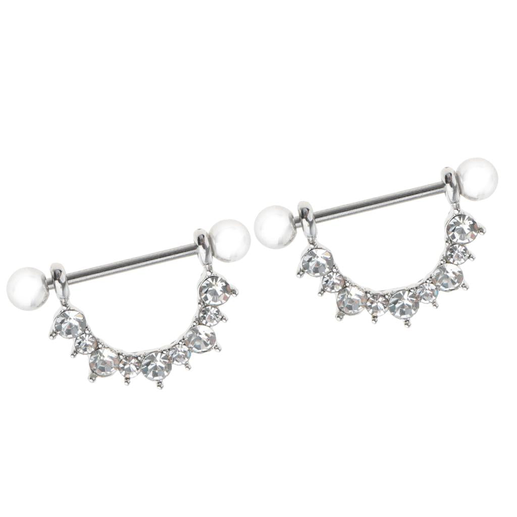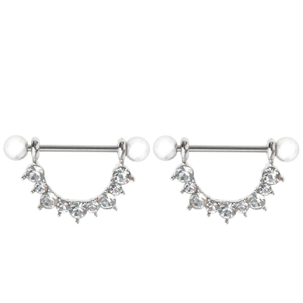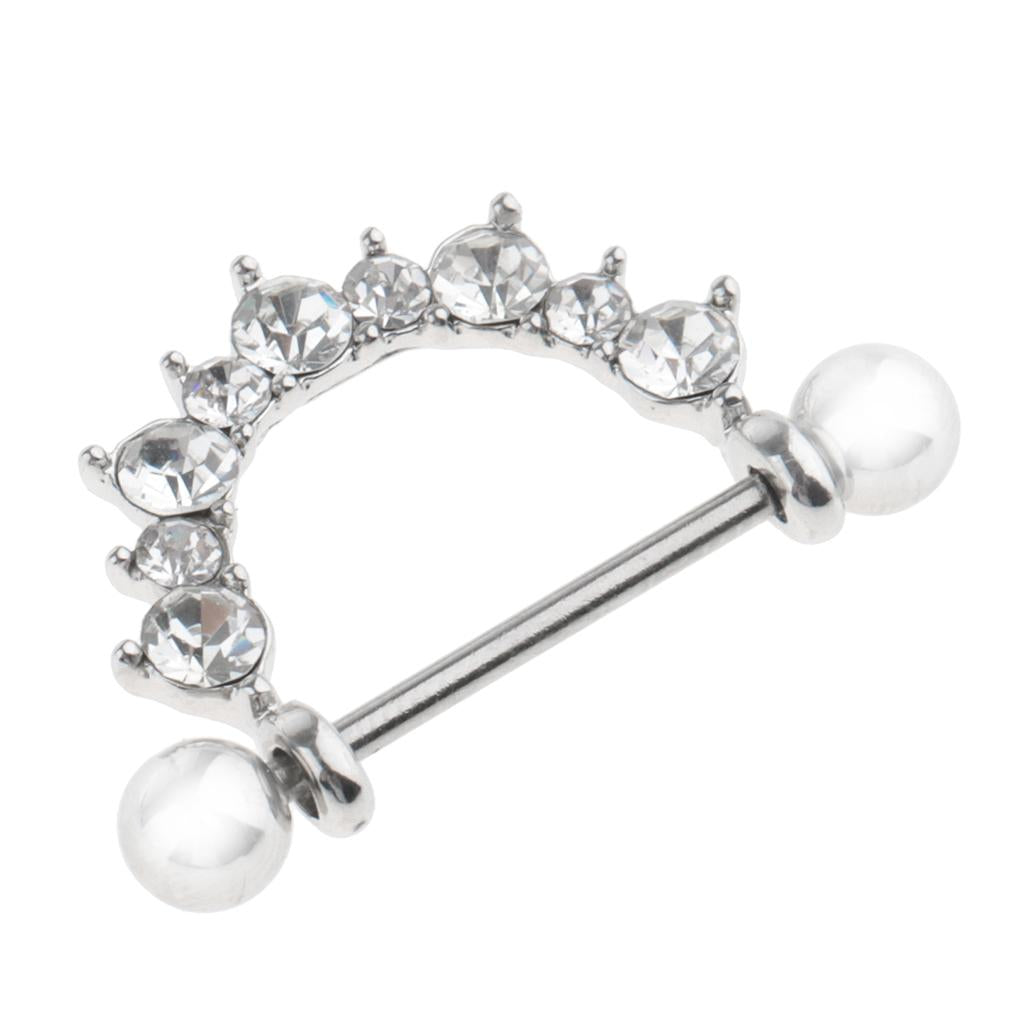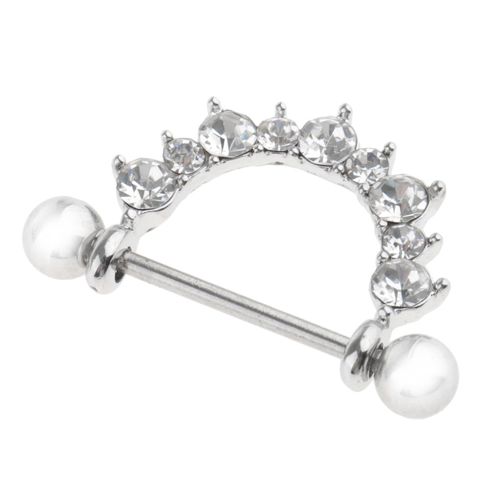 Gauge Size: 00 Gauge =10 mm, U shape shiny crystal ring and straight bar barbell shield nipple ring.