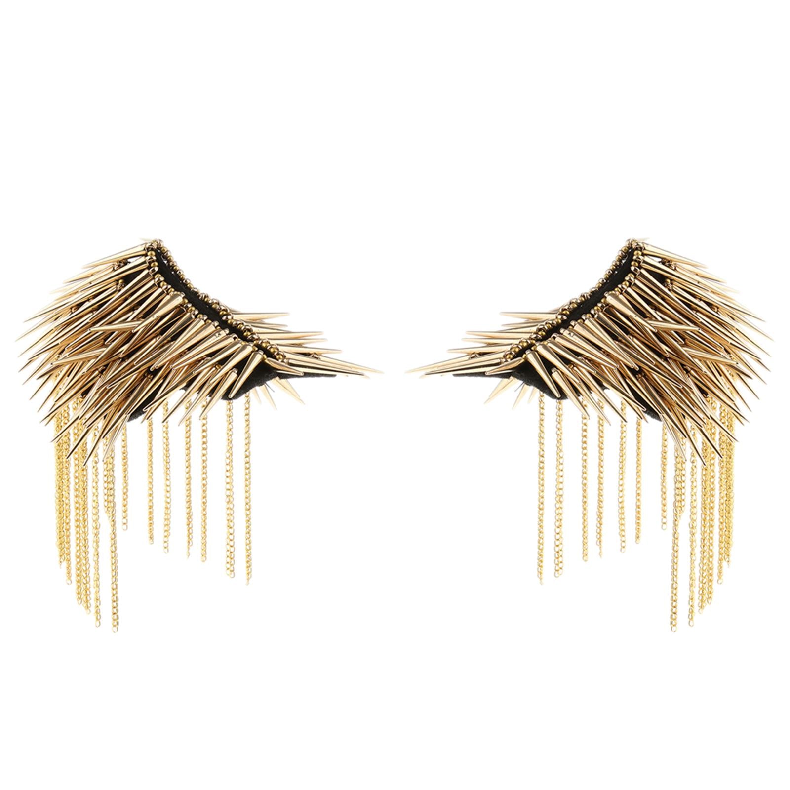 Gothic Rivet Stud Spike Epaulette with tassel chain, elegant and full of charming.