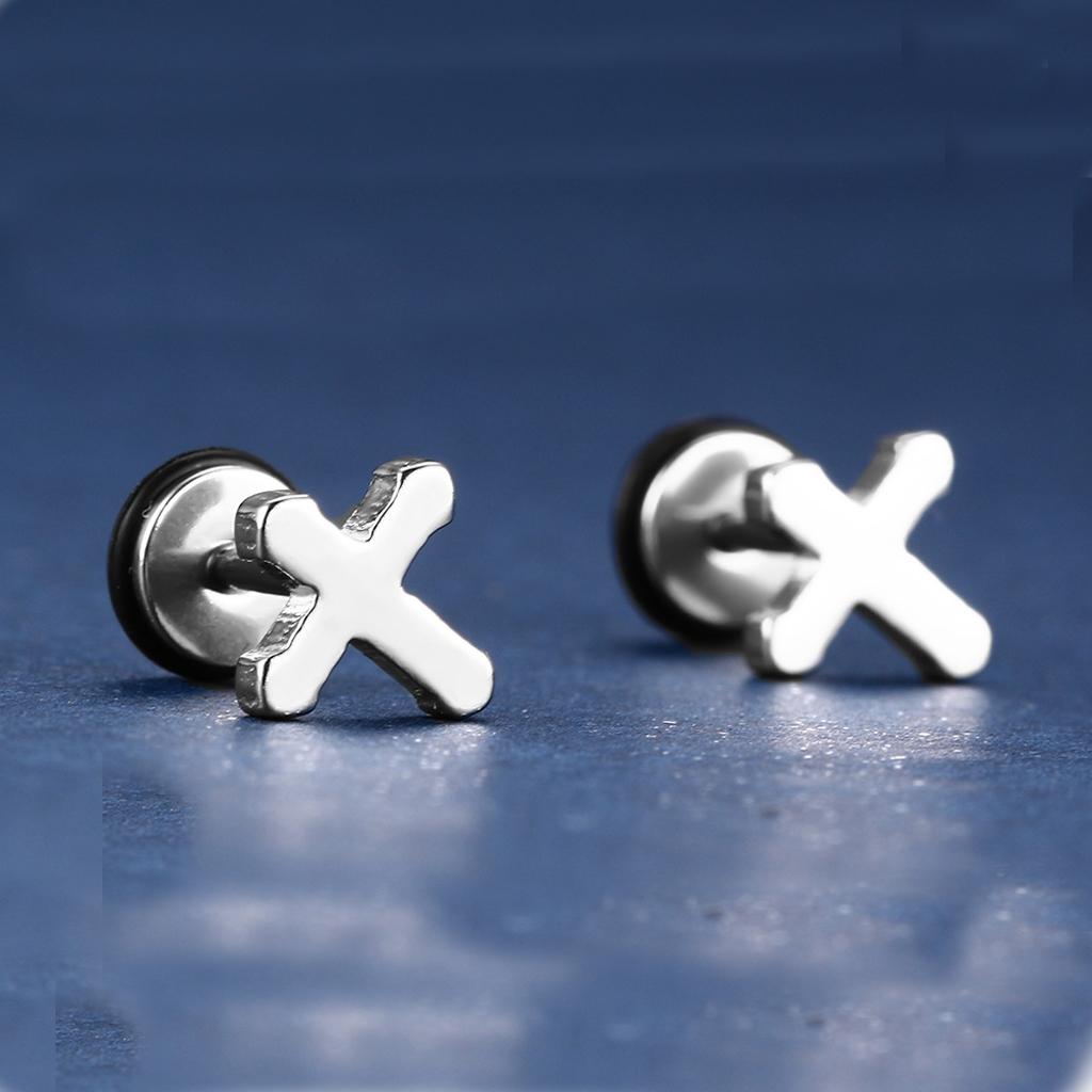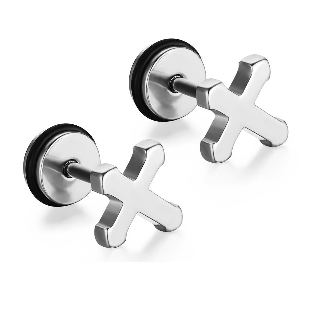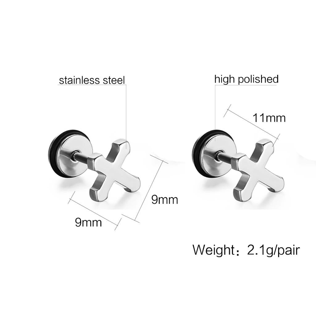1 Pair Unisex Stainless Steel Punk Cross Ear Studs Earrings Jewelry Silver