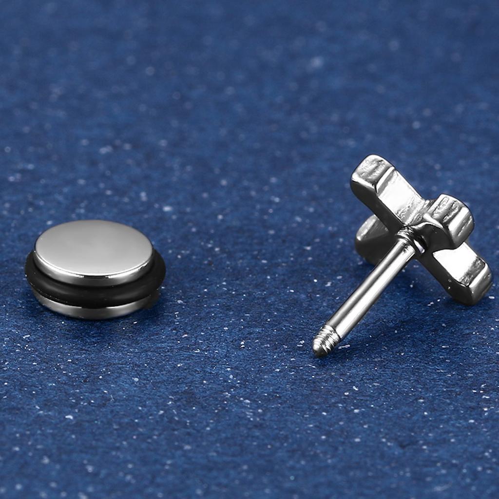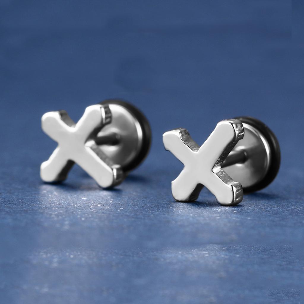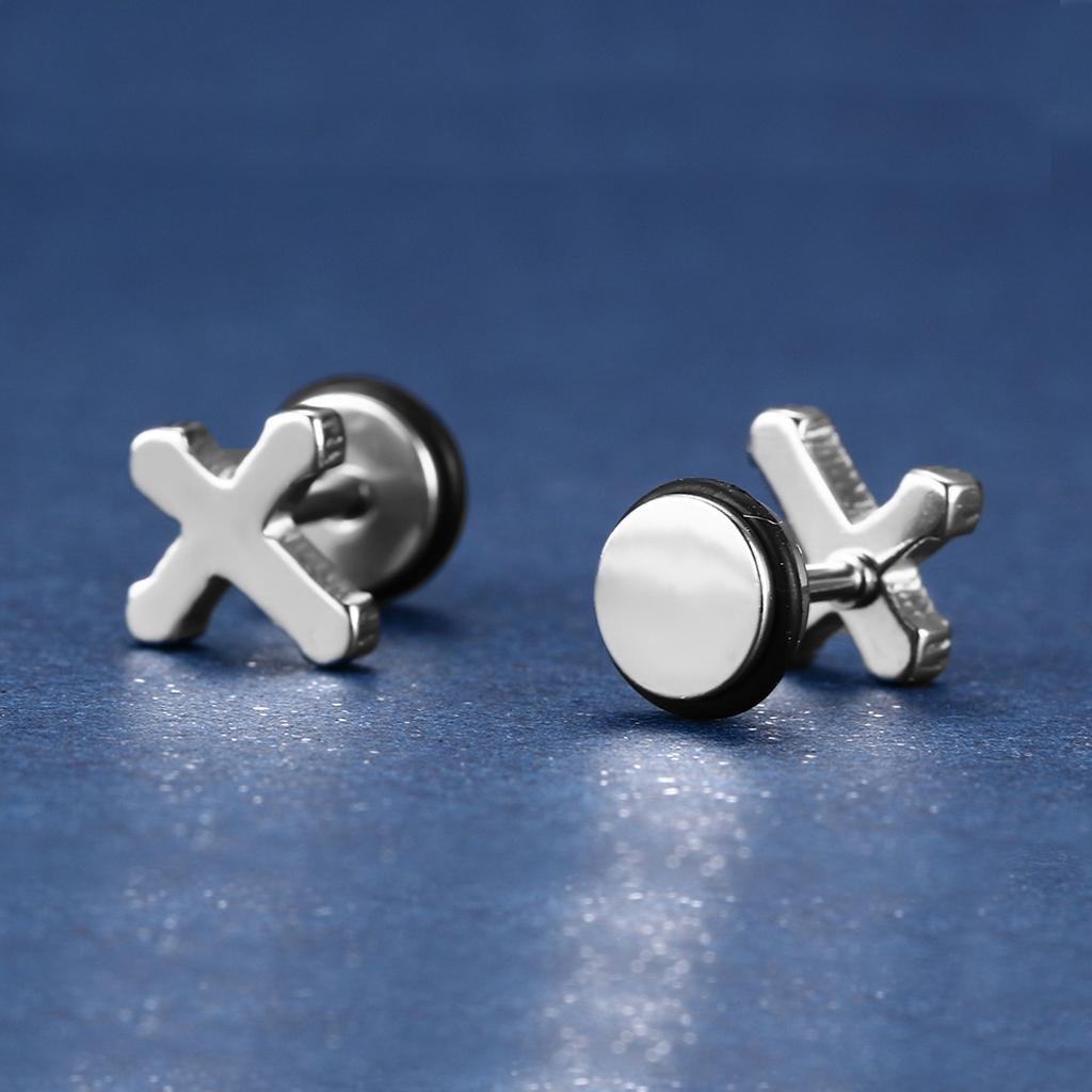 1 Pair Unisex Stainless Steel Punk Cross Ear Studs Earrings Jewelry Silver