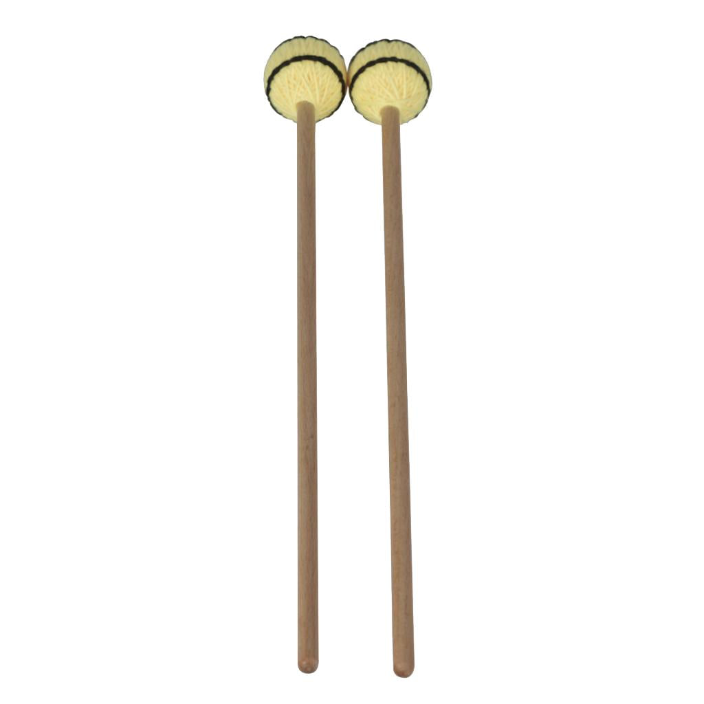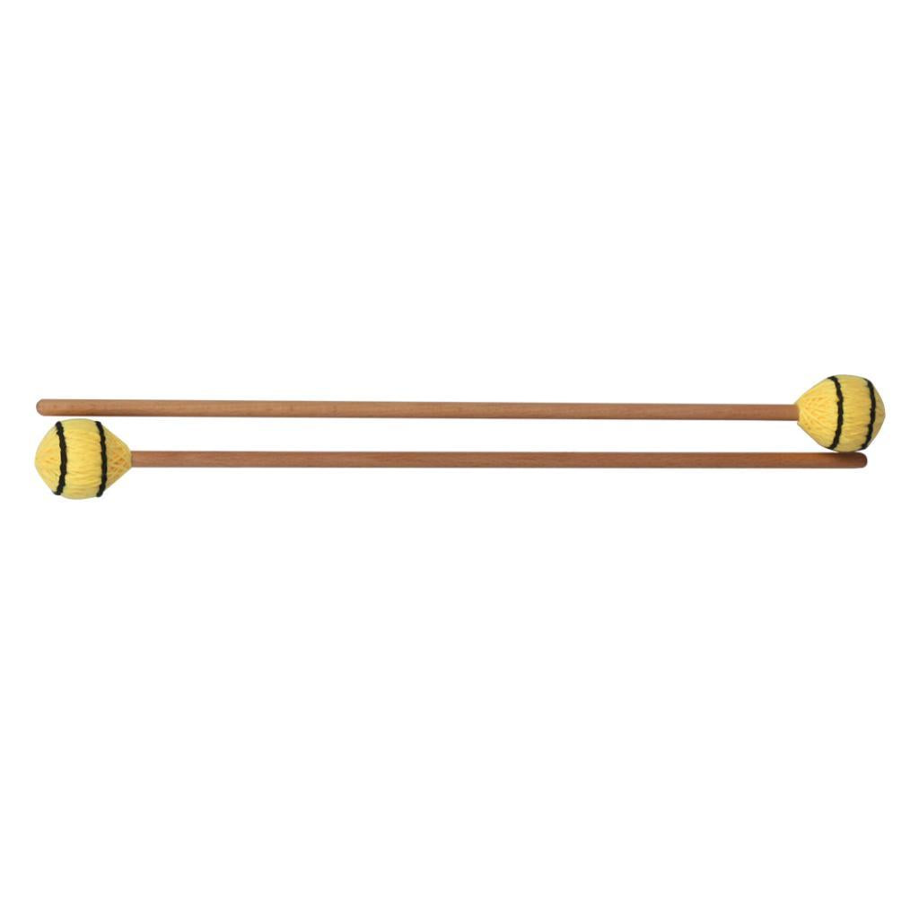 1 Pair Marimba Mallets with Beech Handle and Yellow Yarn Head.