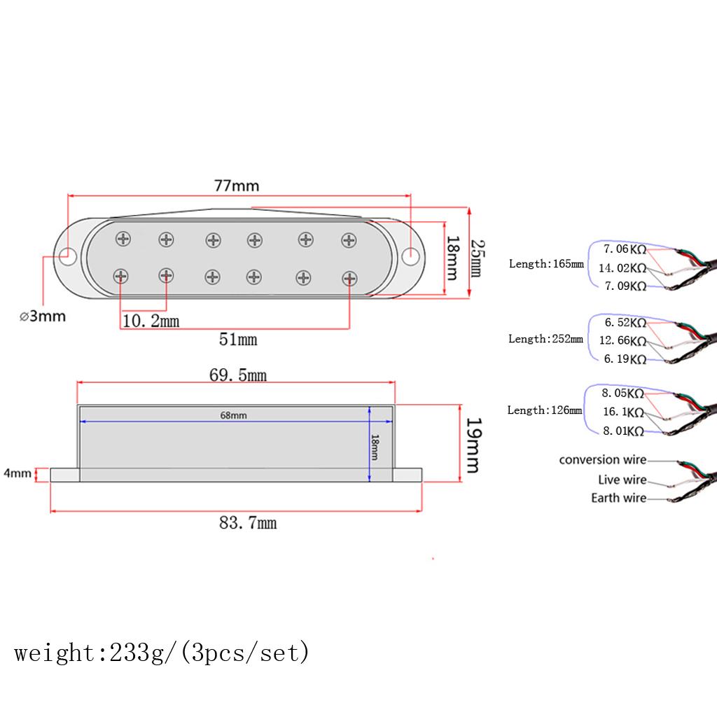 Alnico V Humbucker Pickup M/N/B for Strat ST Electric Guitar Replacement Parts.