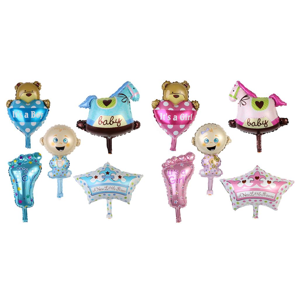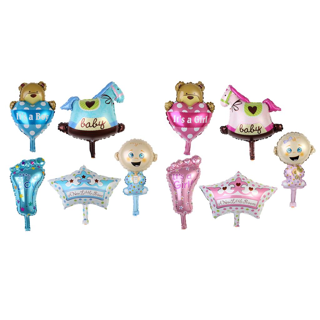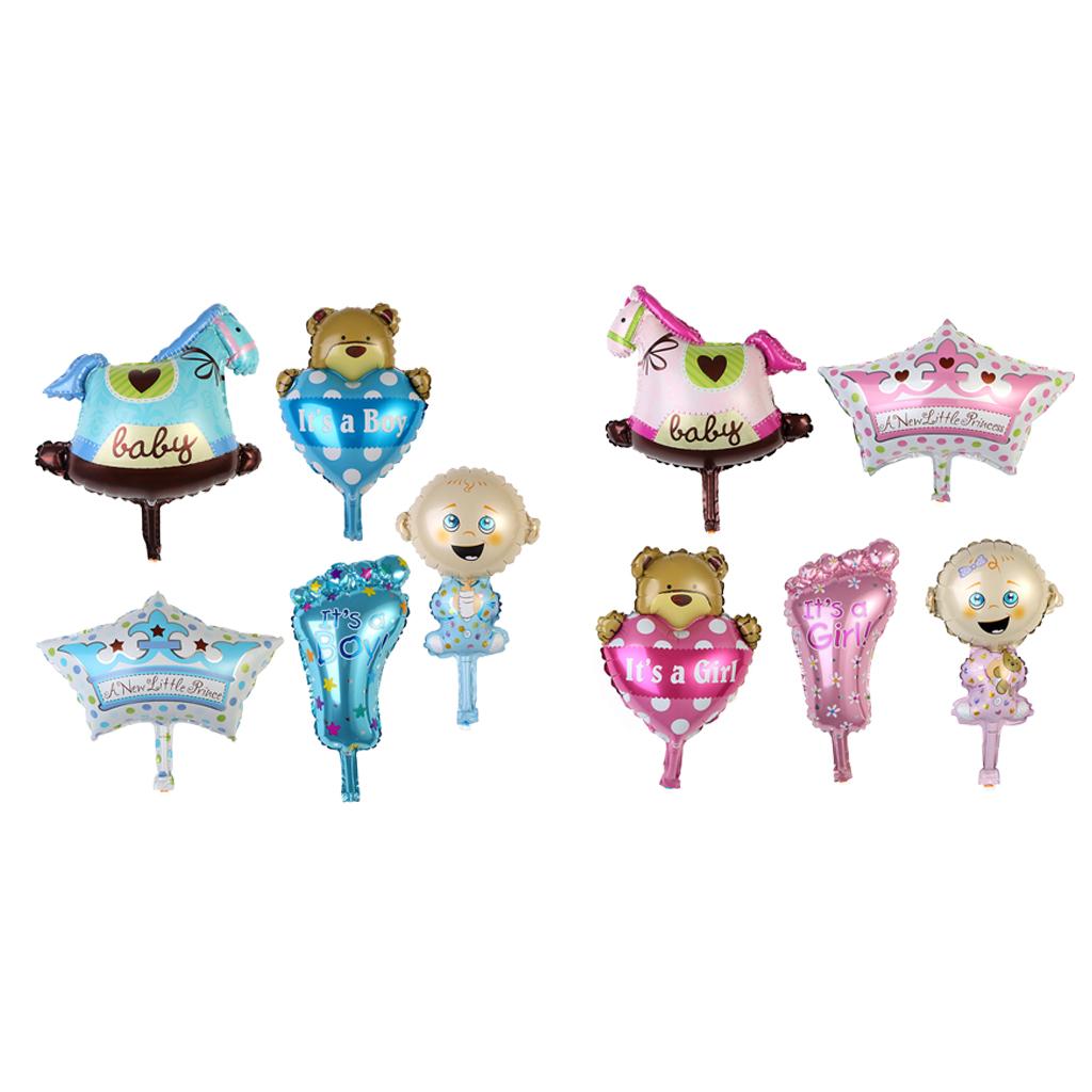 1 set balloons (1 piece bear shape, 1 piece pony shape, 1 piece footprint shape, 1 piece star shape, 1 piece girl / boy shape)
