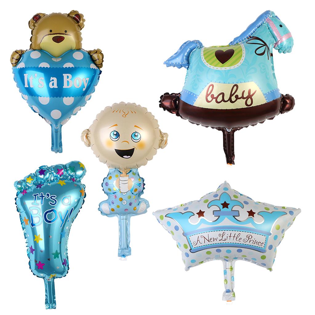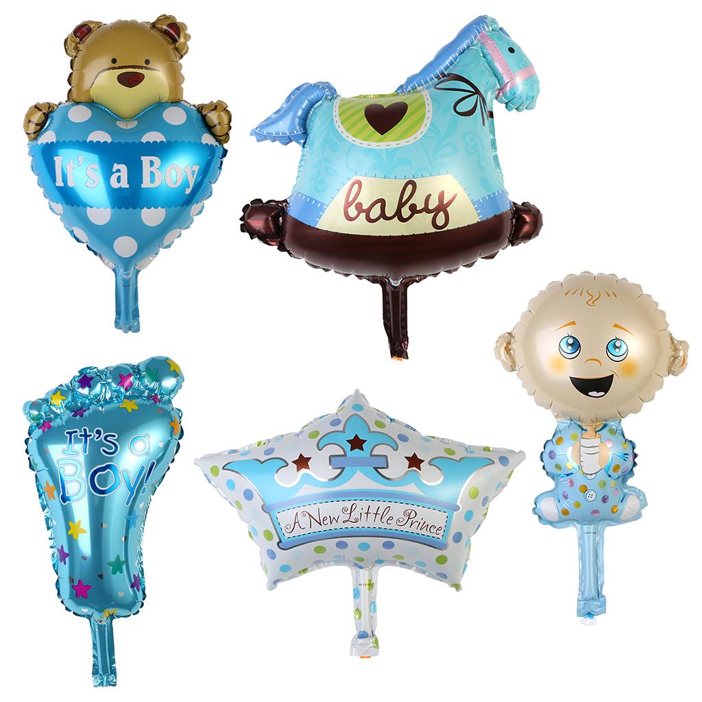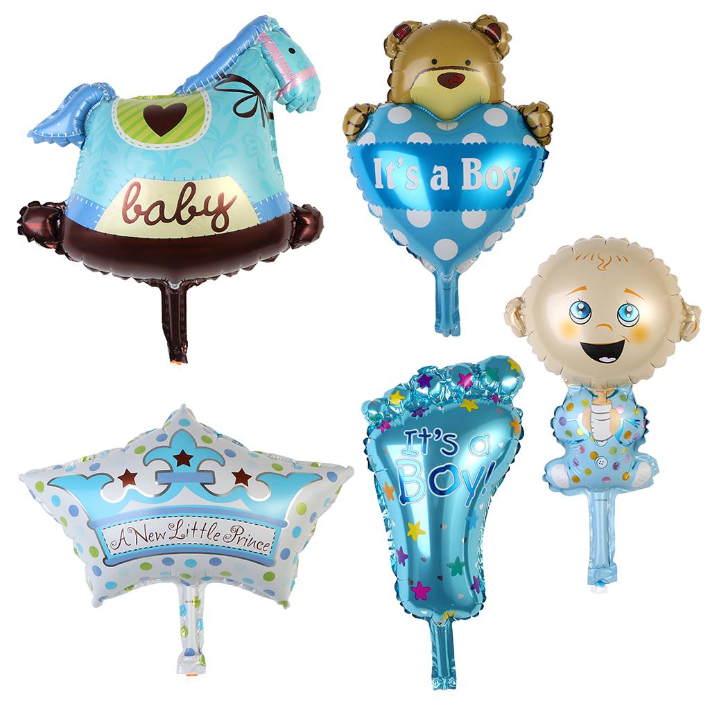 1 set balloons (1 piece bear shape, 1 piece pony shape, 1 piece footprint shape, 1 piece star shape, 1 piece girl / boy shape)