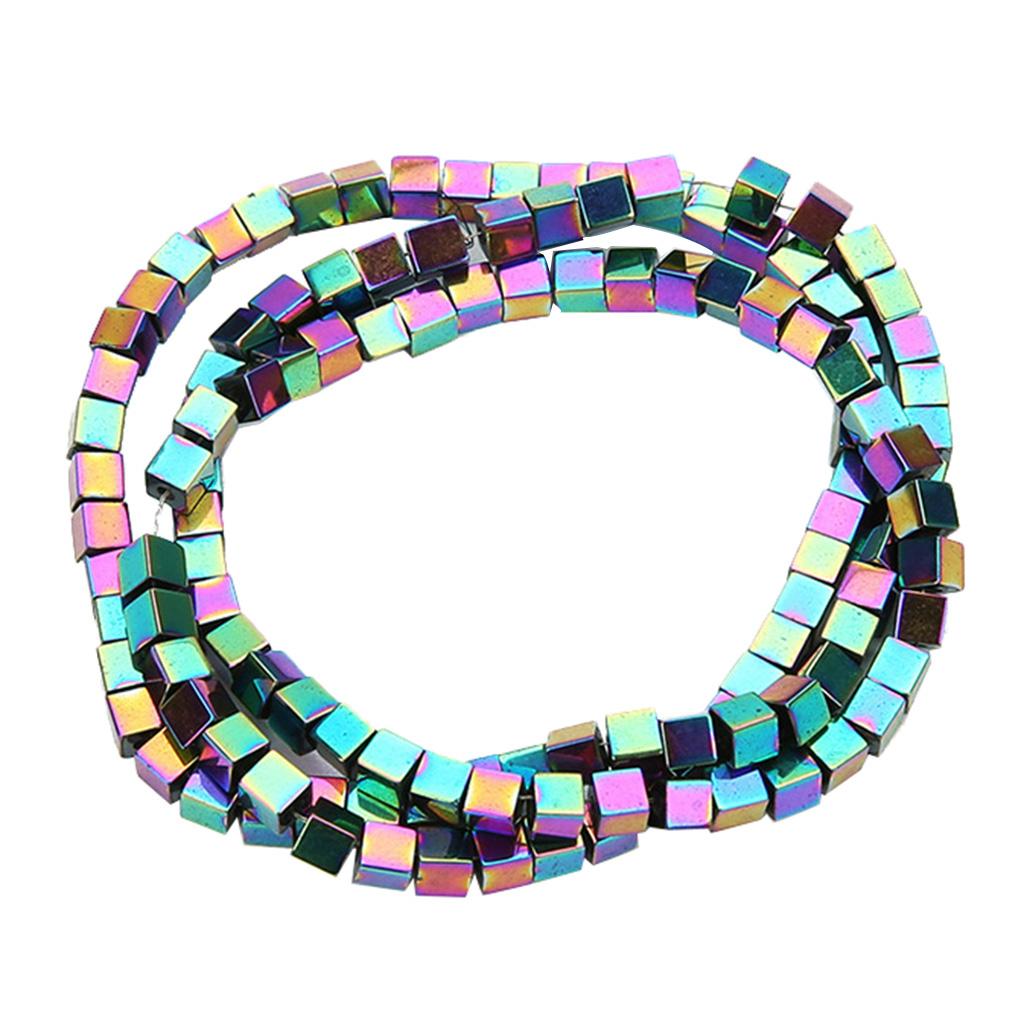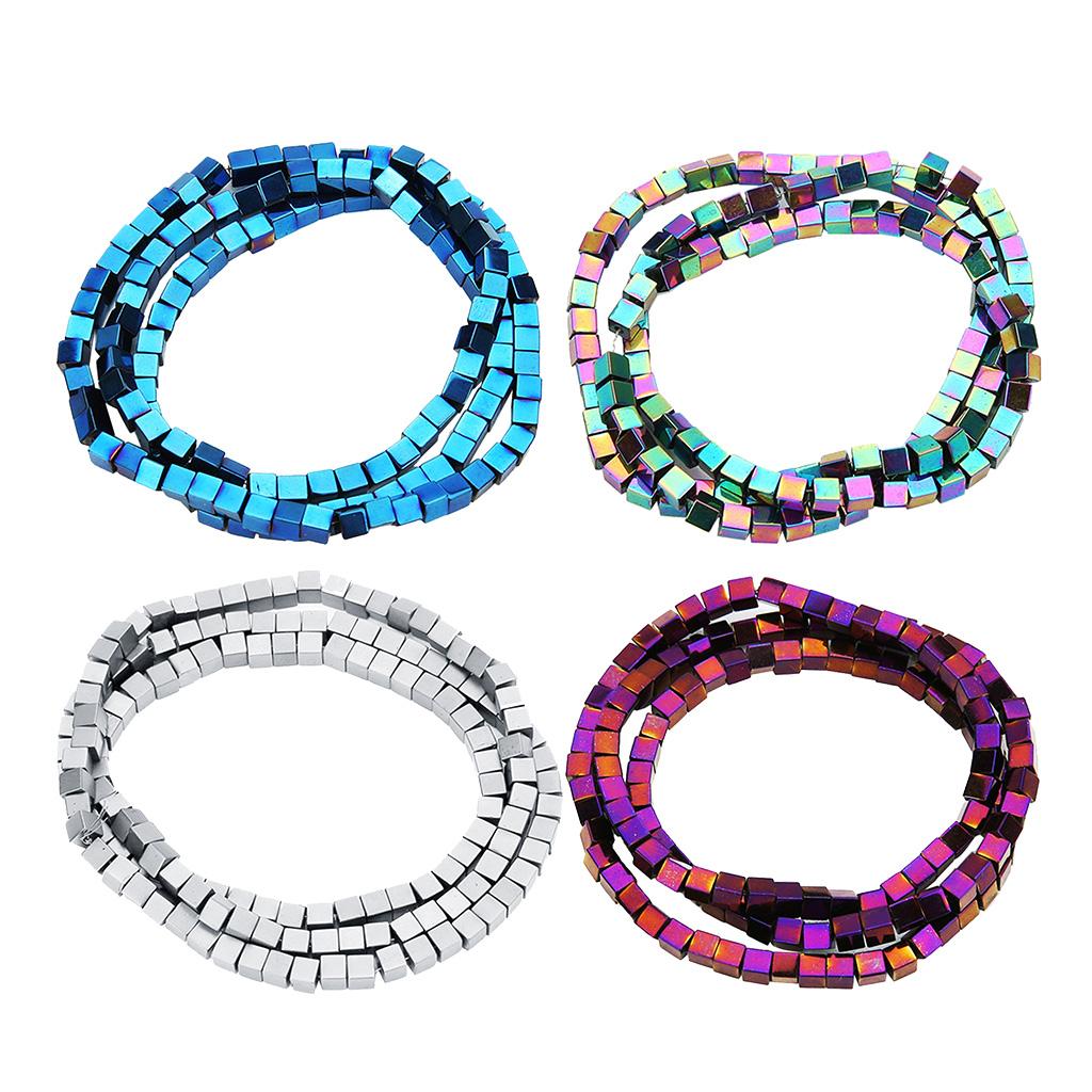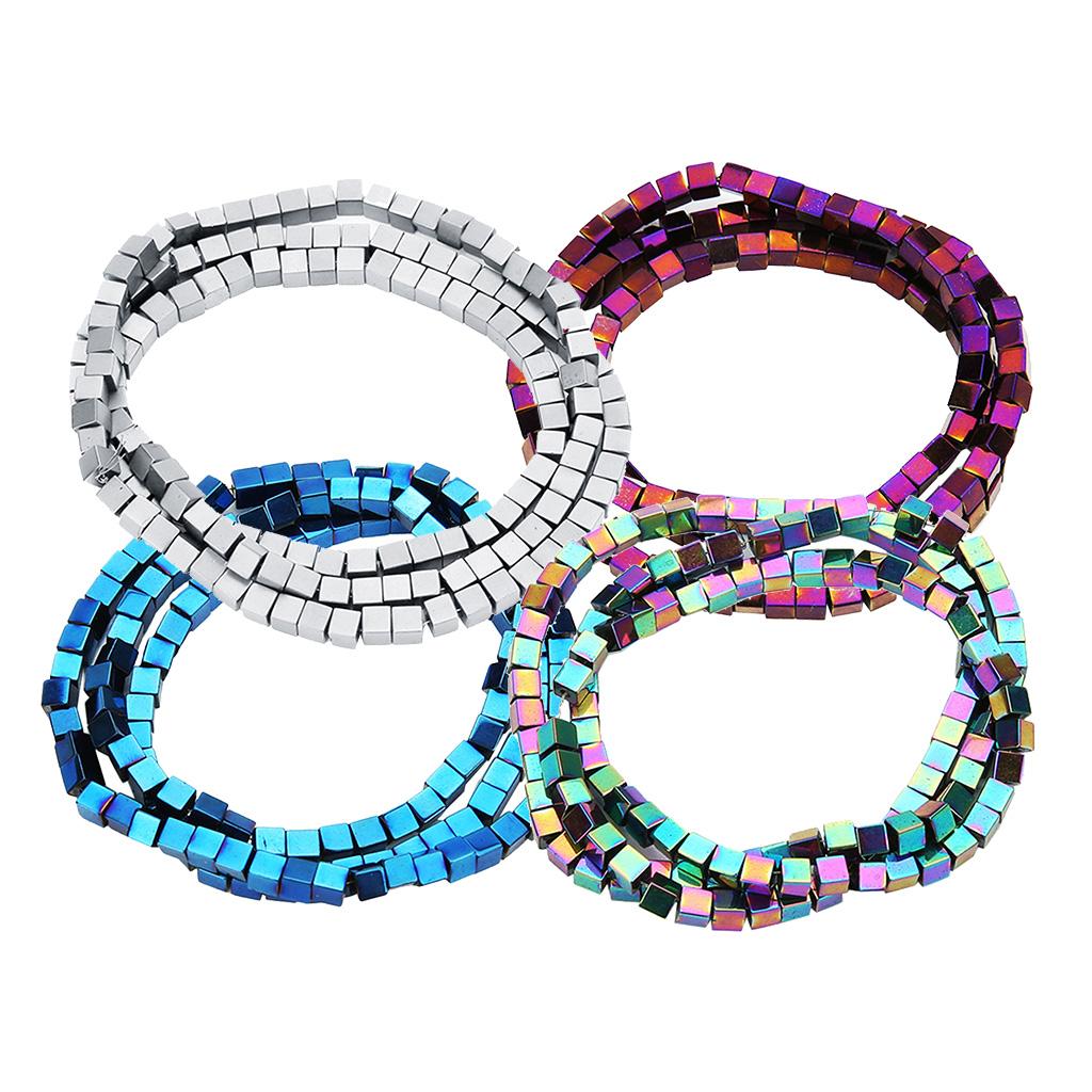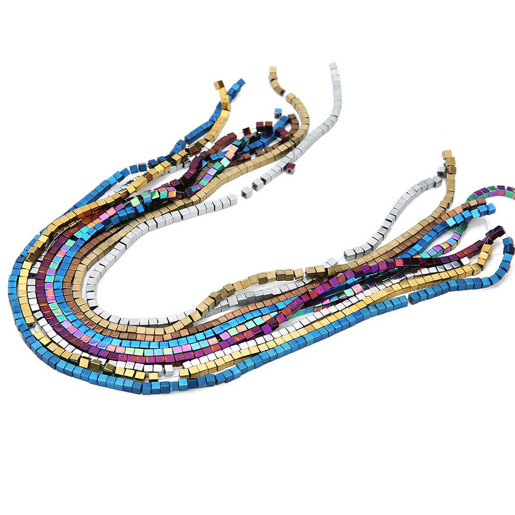 Natural Hematite square Shape colored beads, used Vacuum plating skill so the bead will fadeless and rustless with shiny gloss.