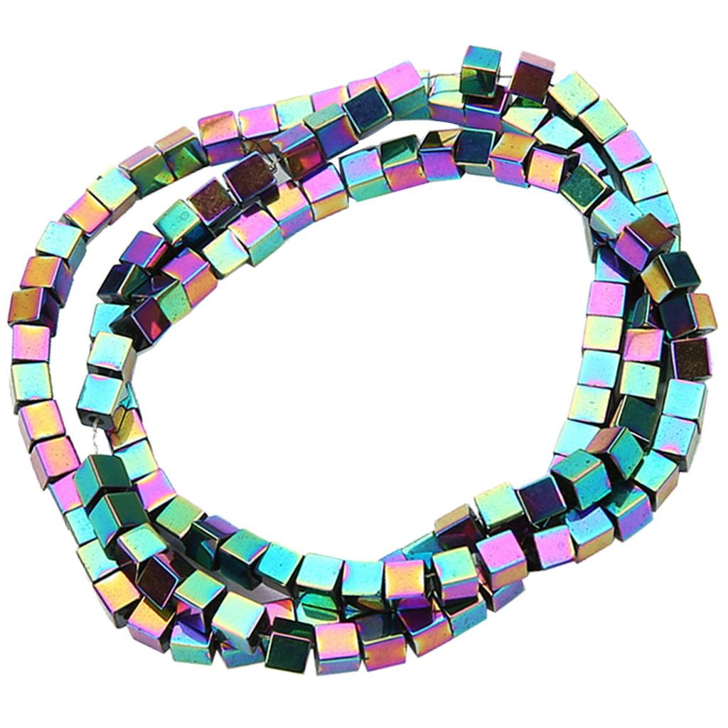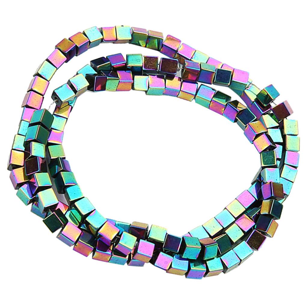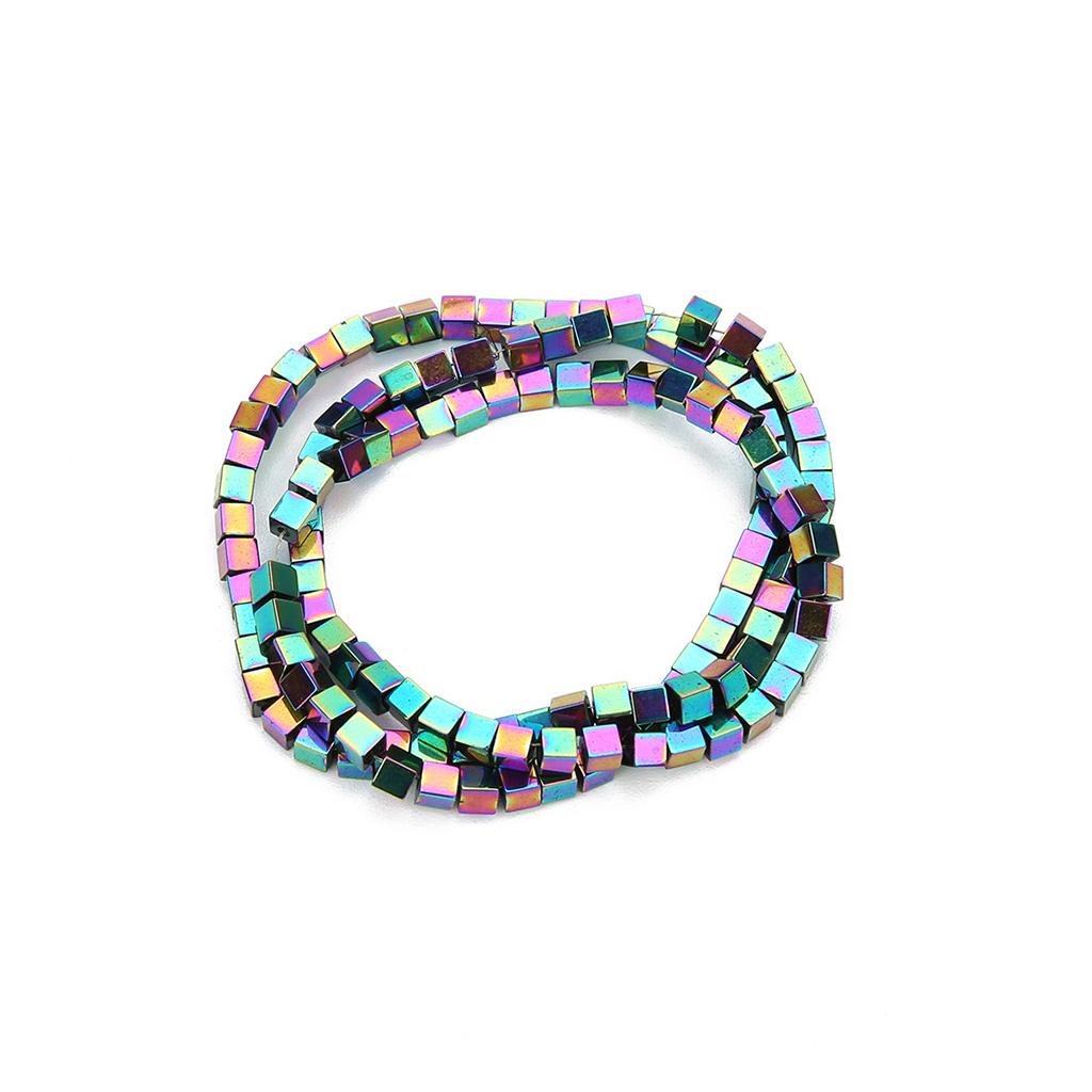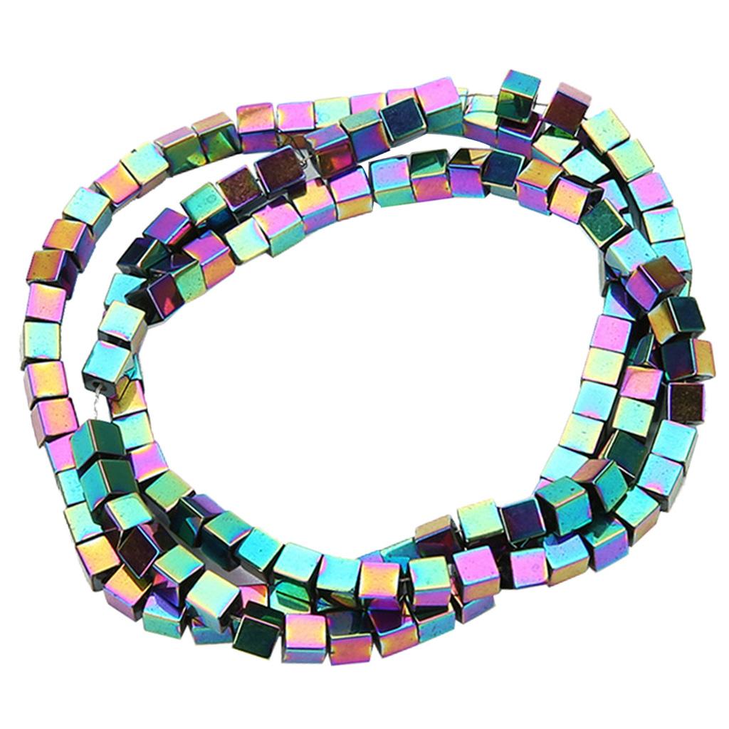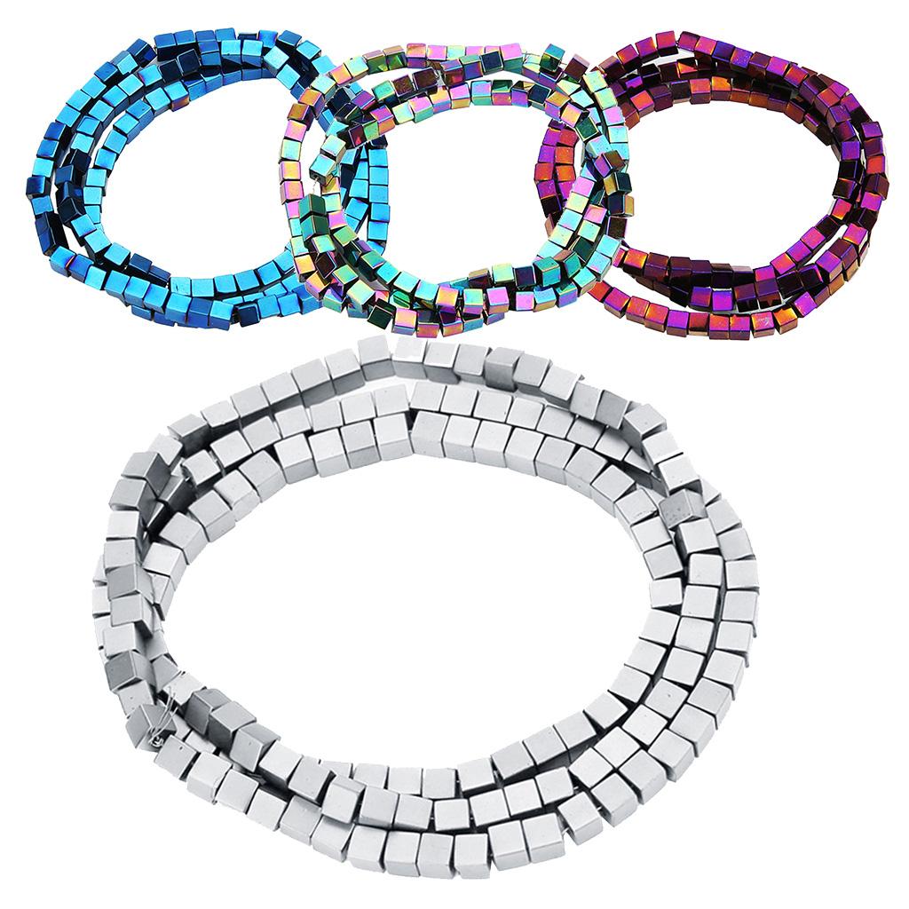 Natural Hematite square Shape colored beads, used Vacuum plating skill so the bead will fadeless and rustless with shiny gloss.