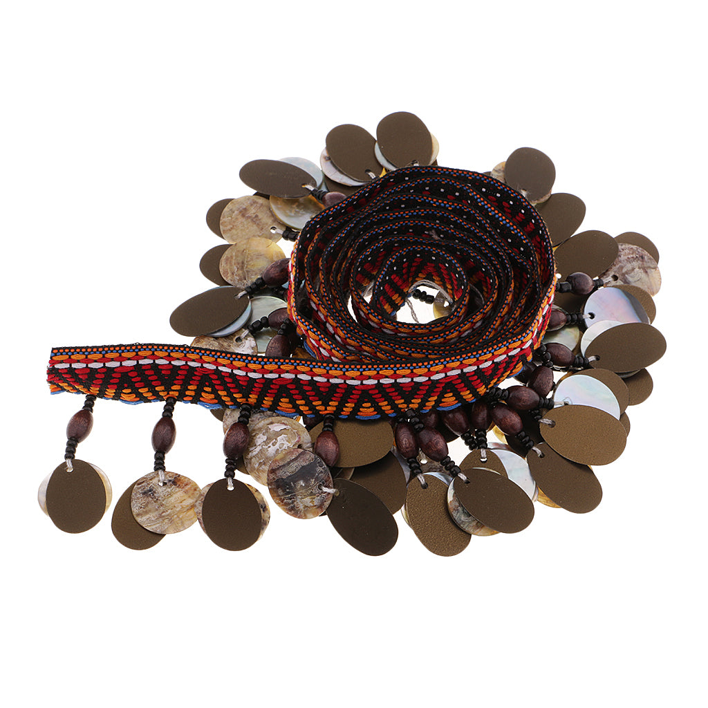 1 Yard Ethnic Sequin Shell Beaded Tassel Edging Fringe Trim for Sewing DIY Craft Millinery Clothing Decoration