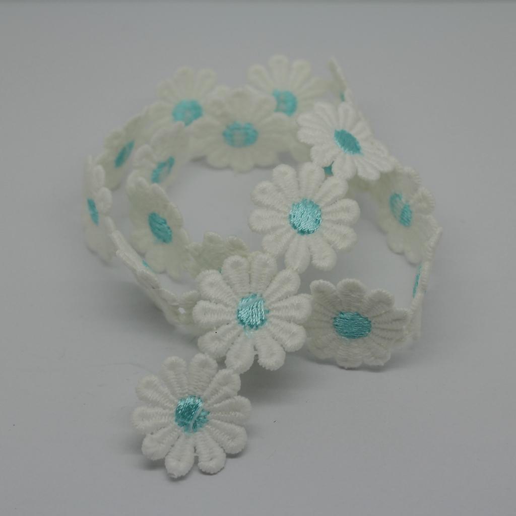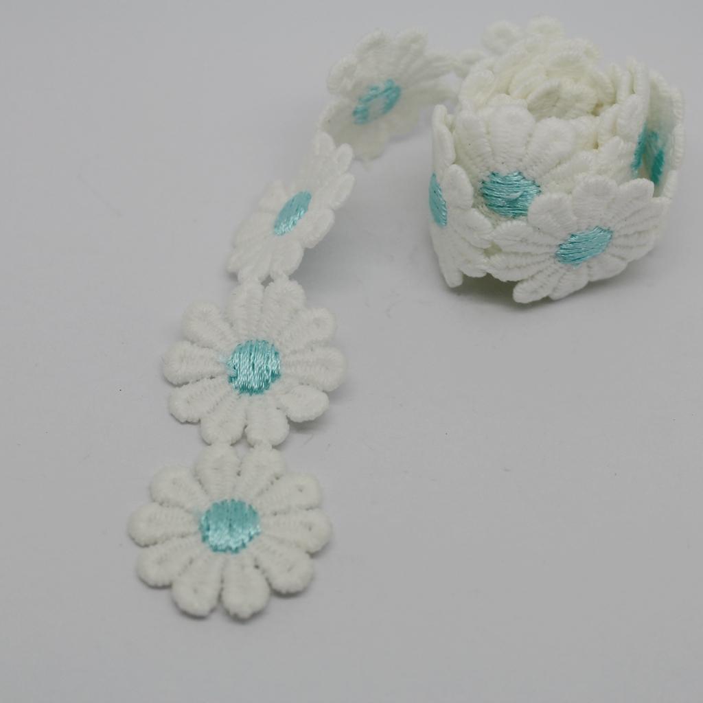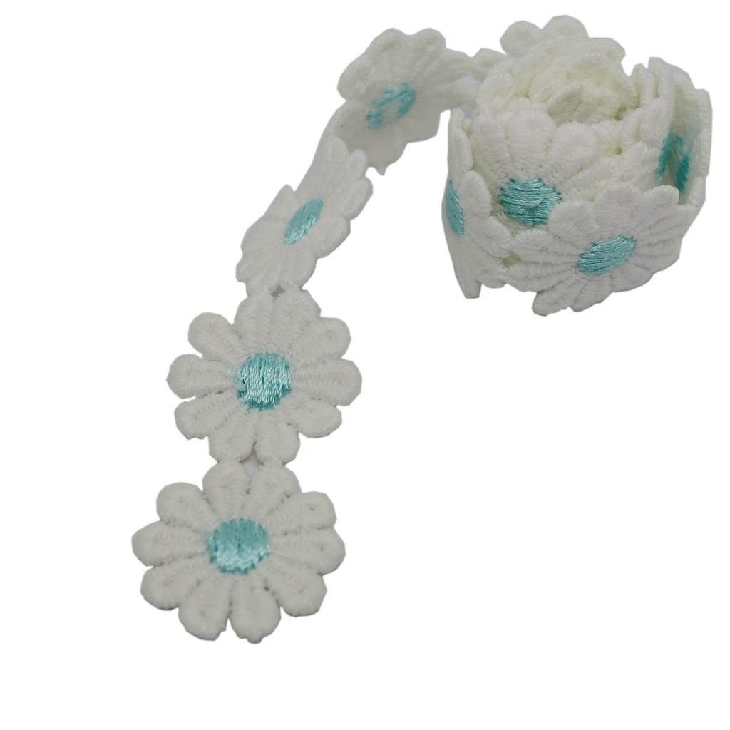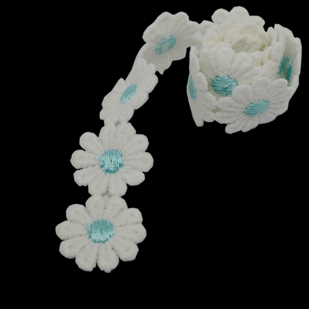 1 Yard Polyester Flower Embroidered Applique Lace Trim Sewing Craft Blue