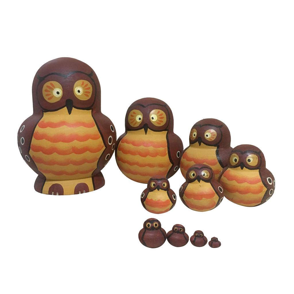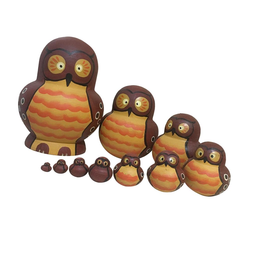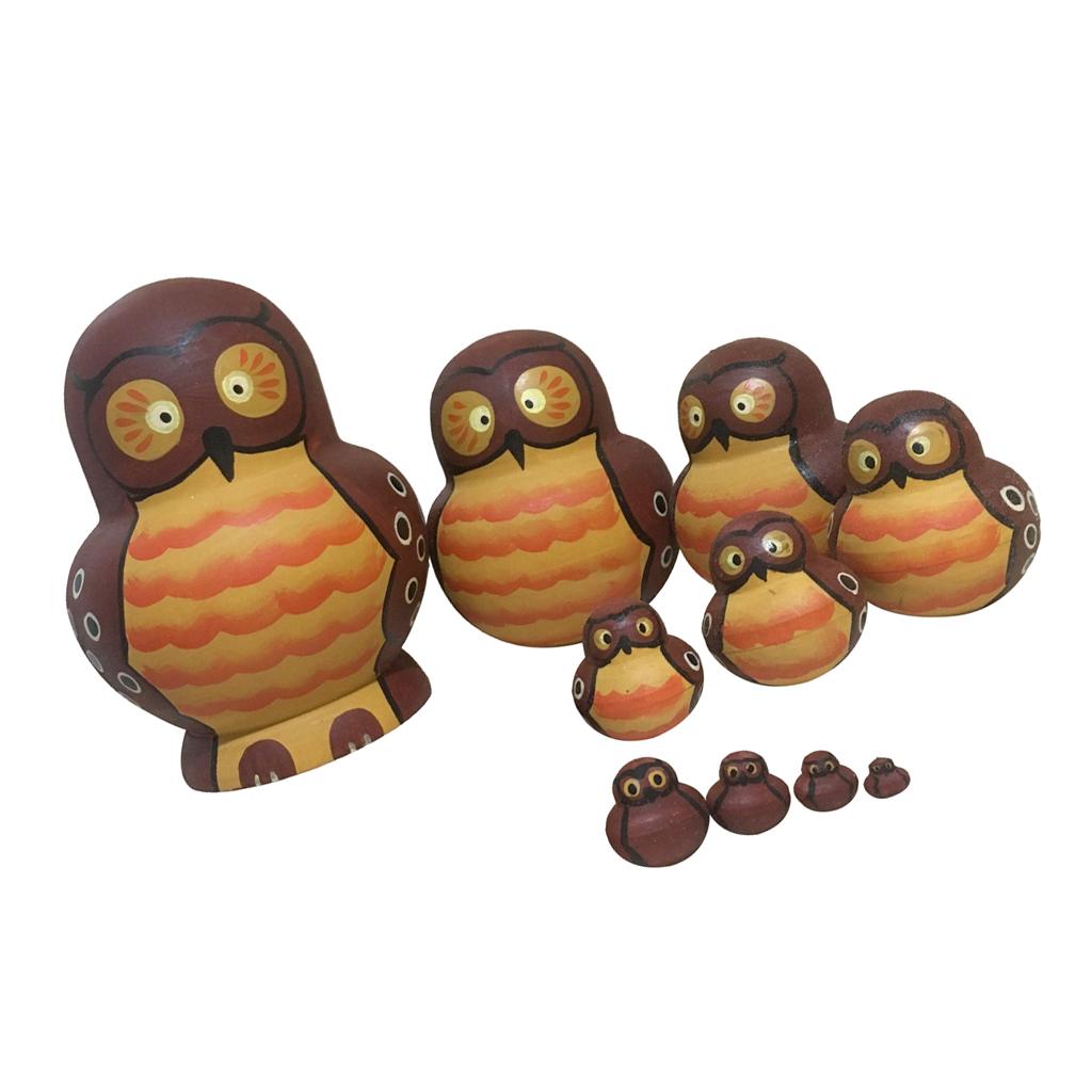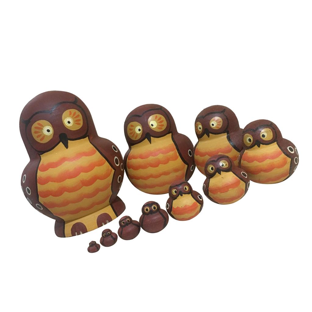 Matryoshka Nesting Dolls Set of 10 pieces, adorable big belly smart wise owl families pattern