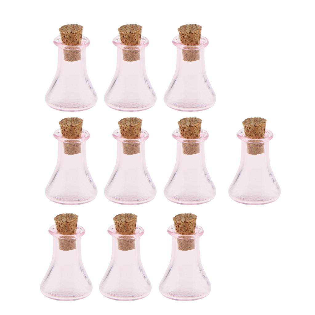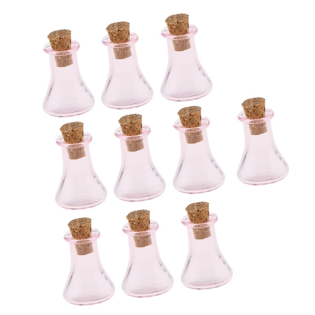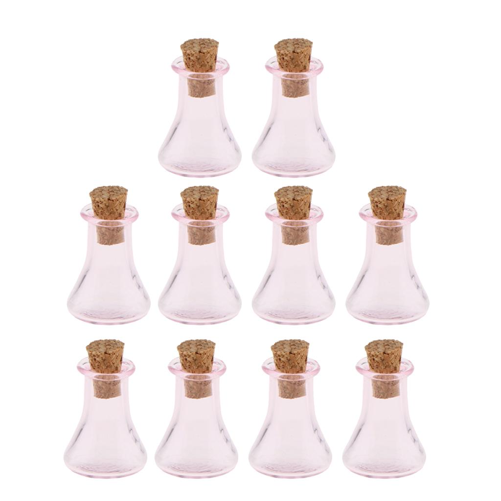 10 Pcs Triangle Cork Wishing Bottle Necklace Glass Bottle DIY Pendant Pink