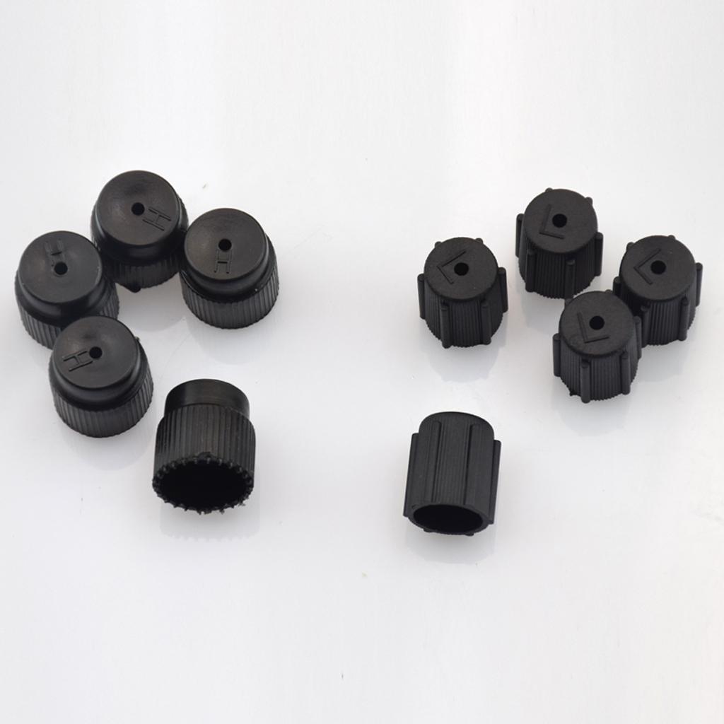 5 Caps Black High Side Port 16 mm and 5 caps Black Low Side Port 13mm.