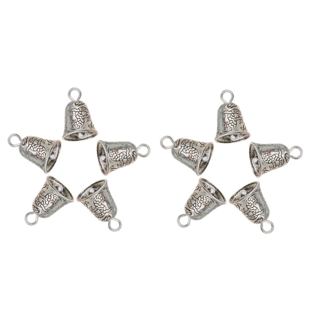 10 Pieces Antique Silver Tibet Retro Jingle Bell Charm Pendant DIY Finding Craft
