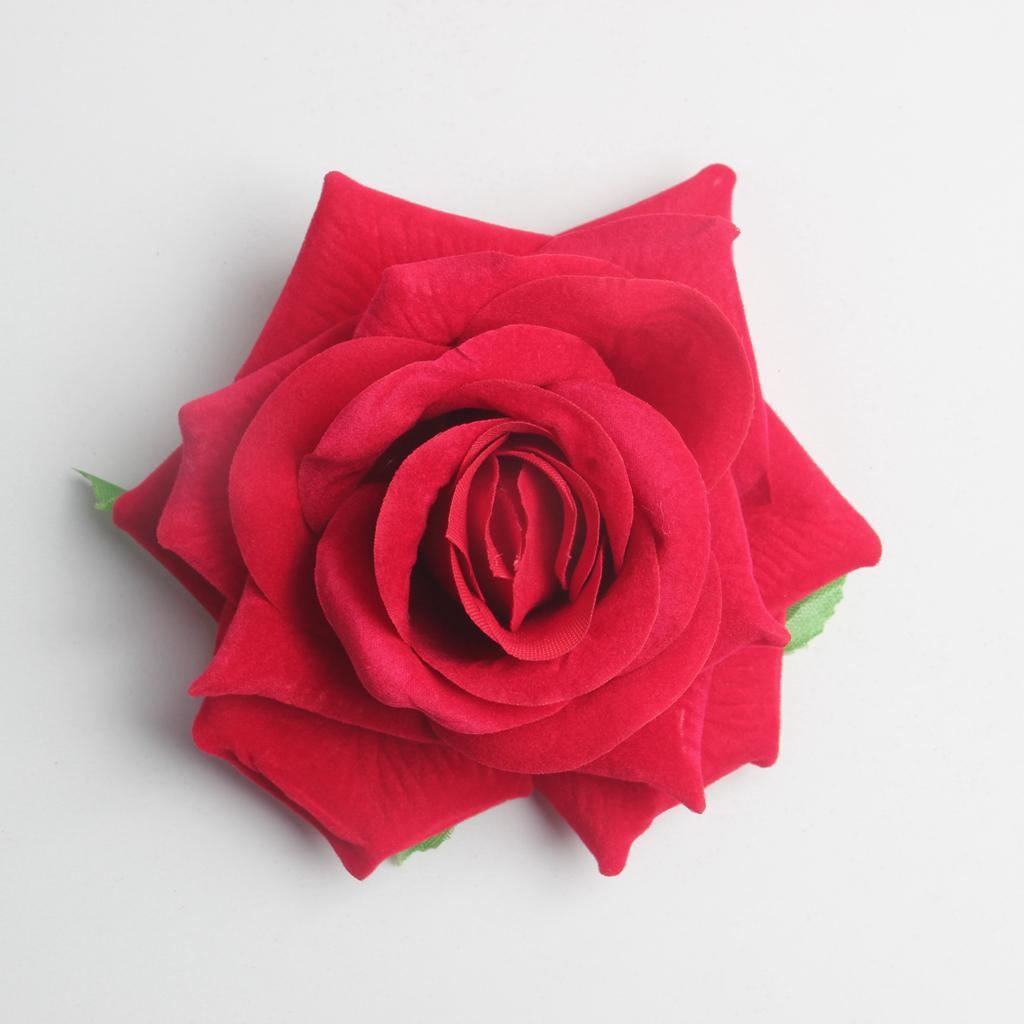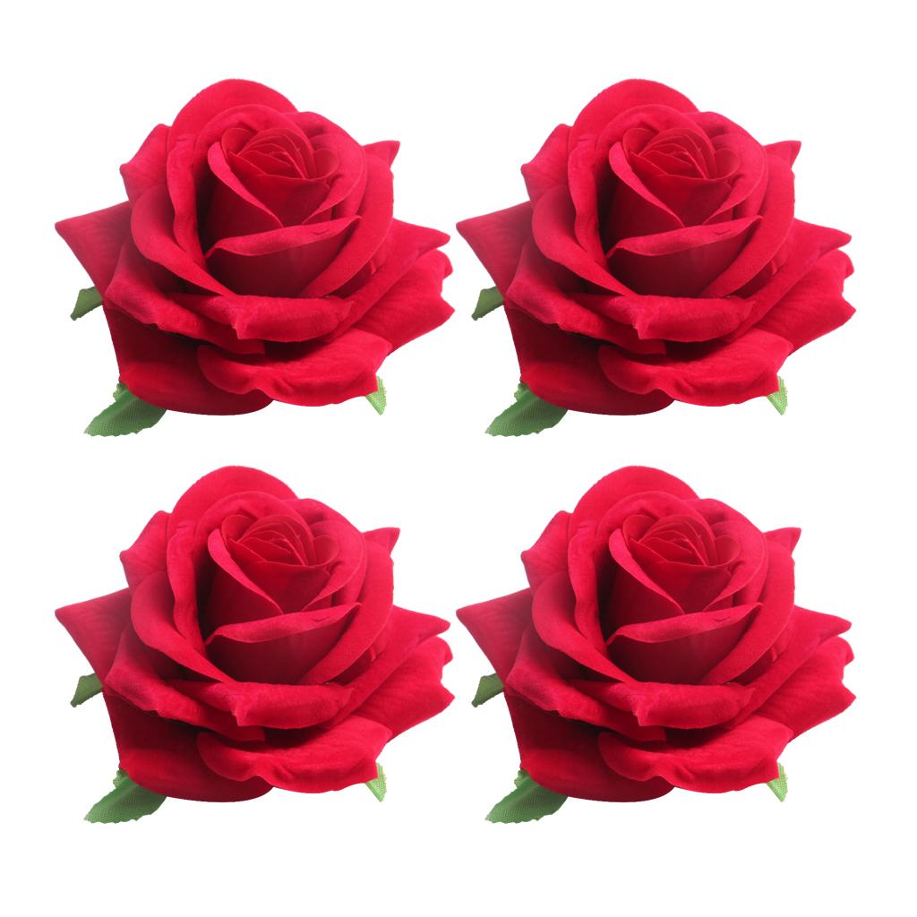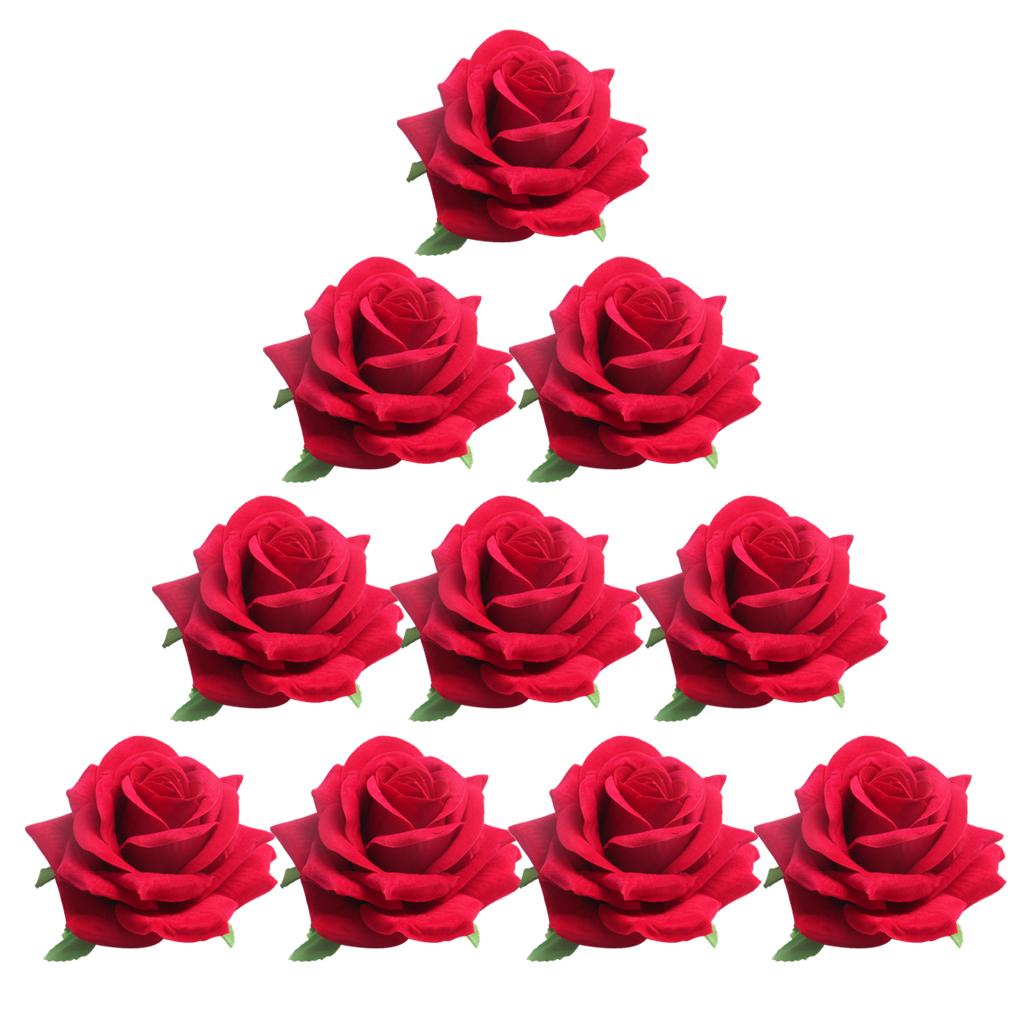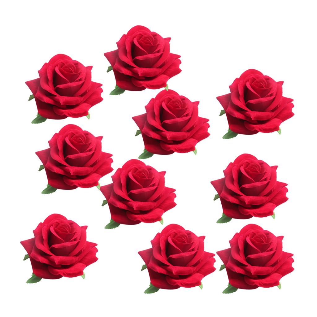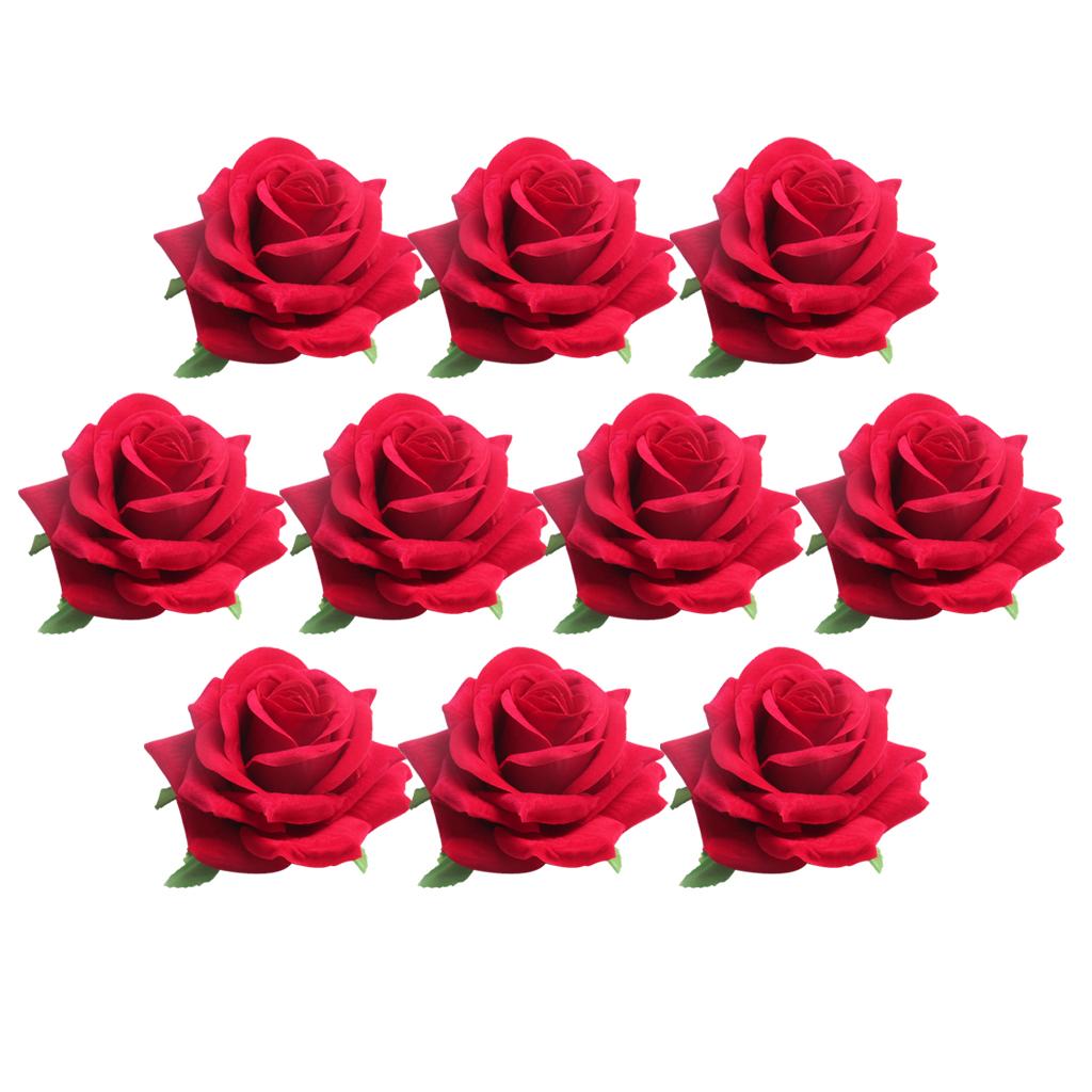 10 Pieces Artificial Flannel Rose Flower Head Buds 10.5cm red