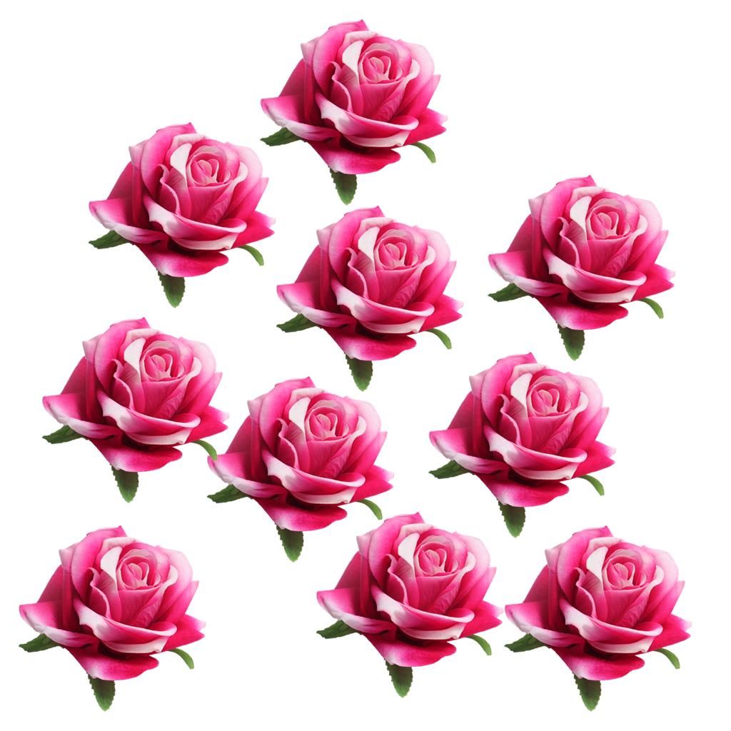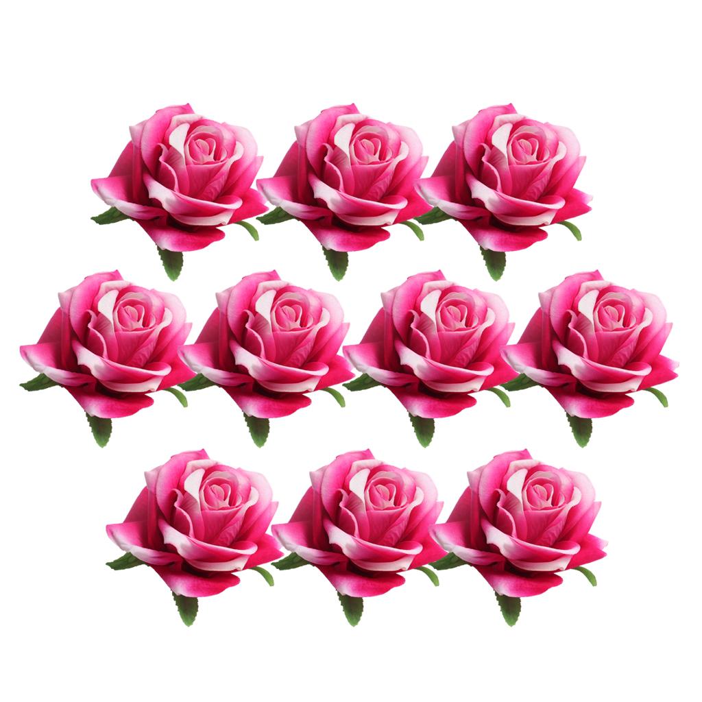 10 Pieces Artificial Flannel Rose Flower Head Buds 10.5cm rose red
