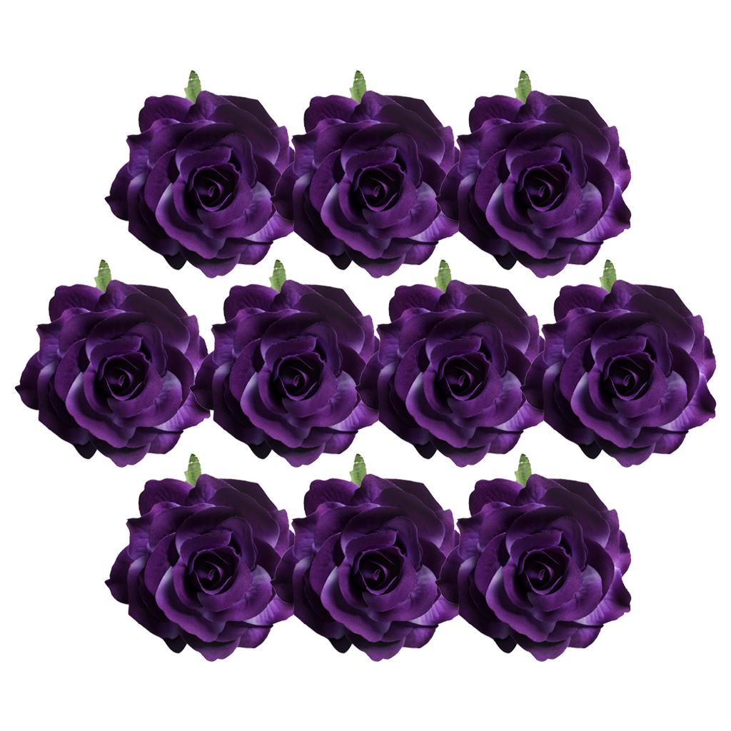 10 Pieces Artificial Silk Rose Buds Flower Head DIY Accessories dark purple