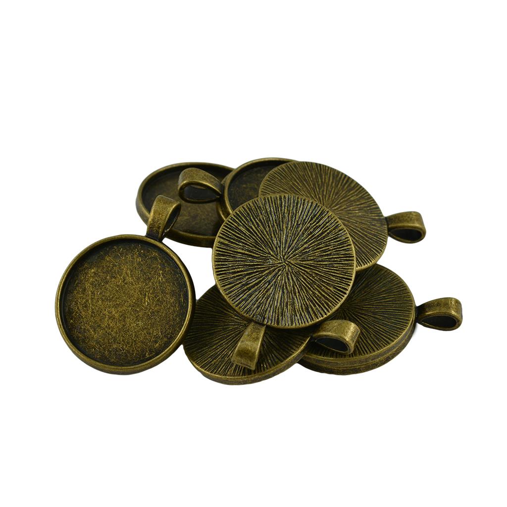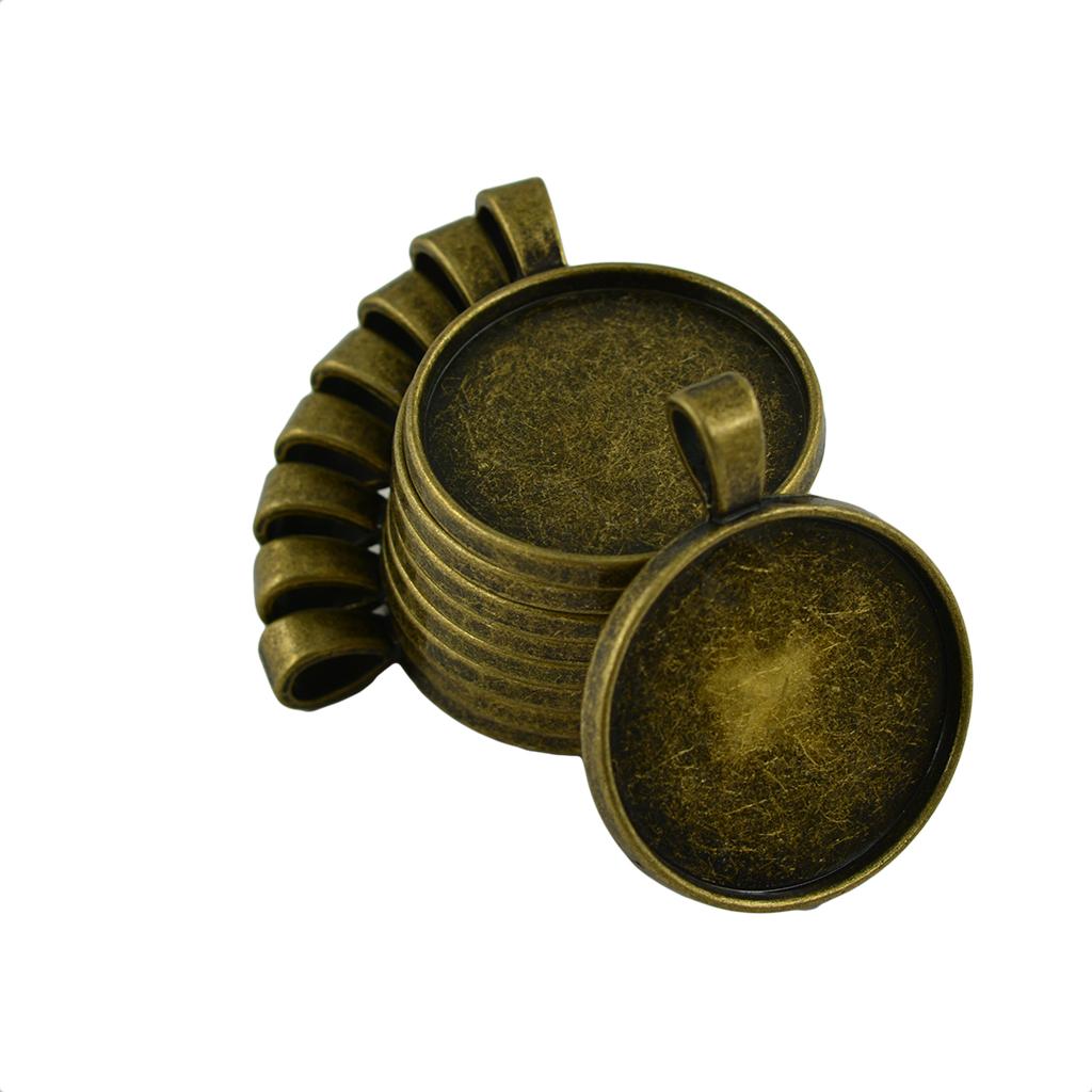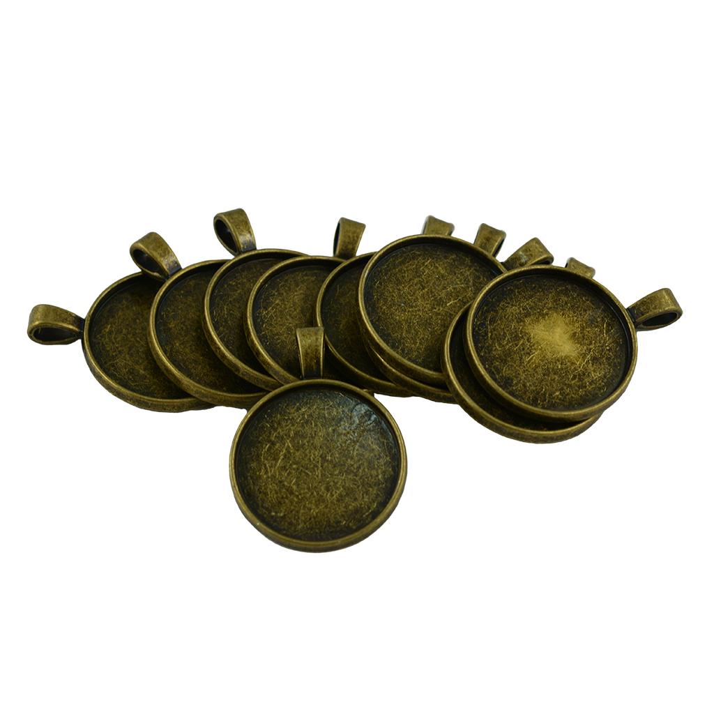 10 Pieces Blank Round Bezel Tray 25mm Cabochon Pendant Findings Antique Bronze