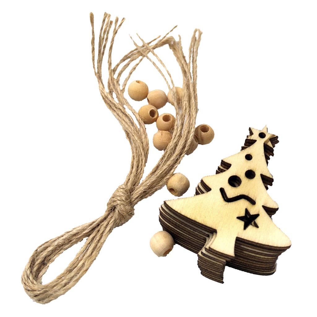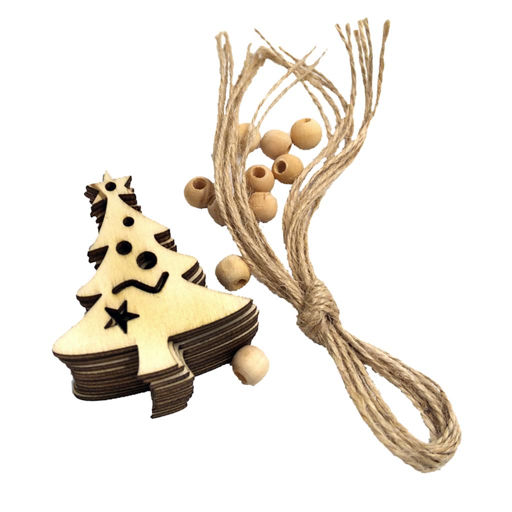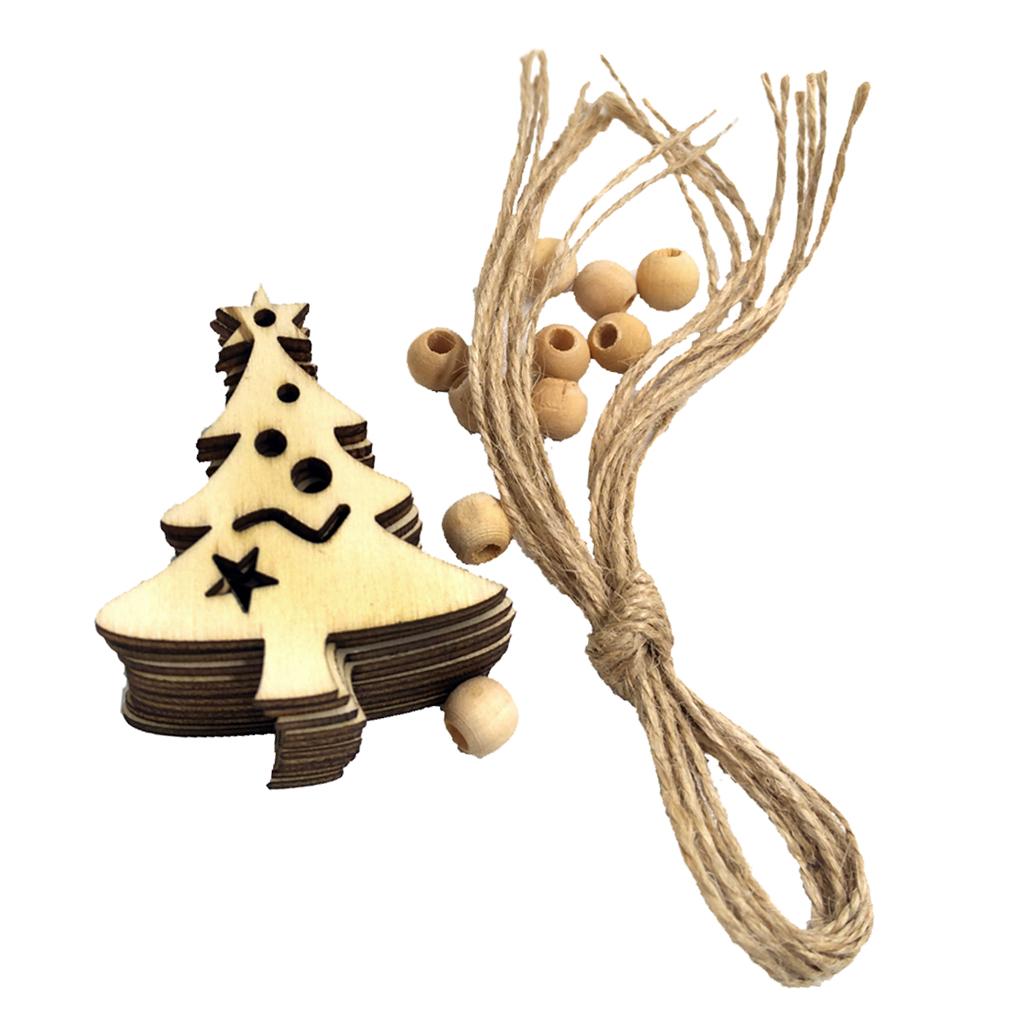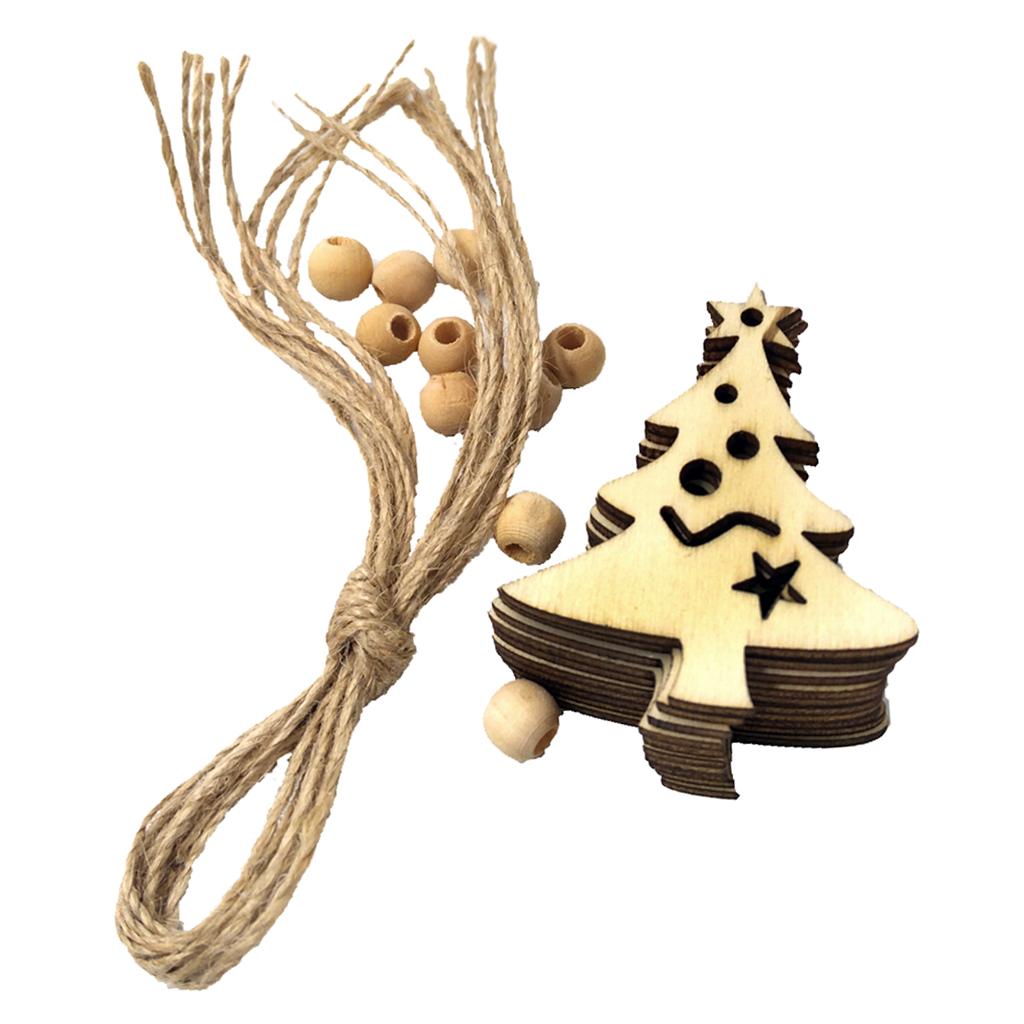 10 Pieces Christmas Natural Wood Chip Tree Ornaments Xmas Hanging Pendant Decoration