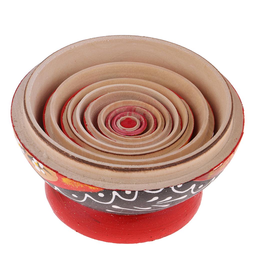 10 Pieces Kit Hand Printed Red Woman Russian Matryoshka Babushka Stacking Dolls Birthday Gift Toy Decoration