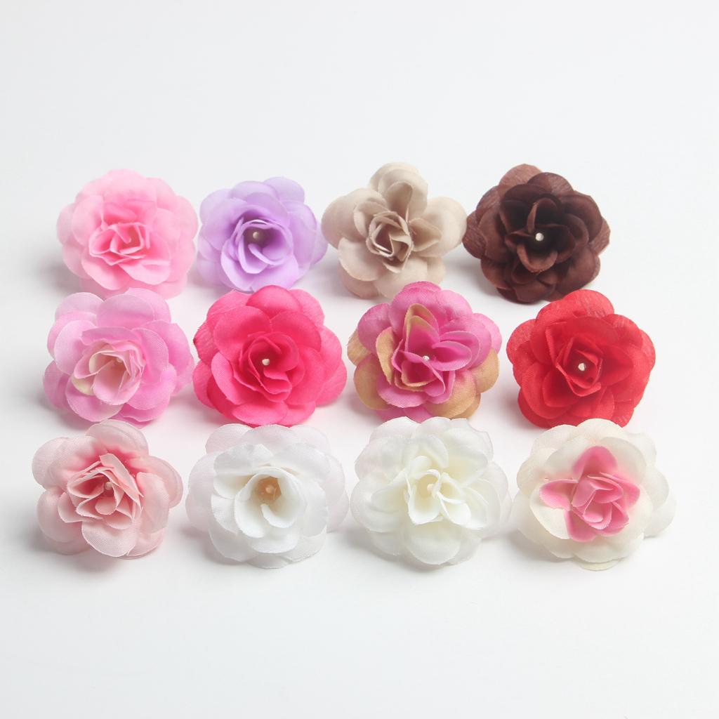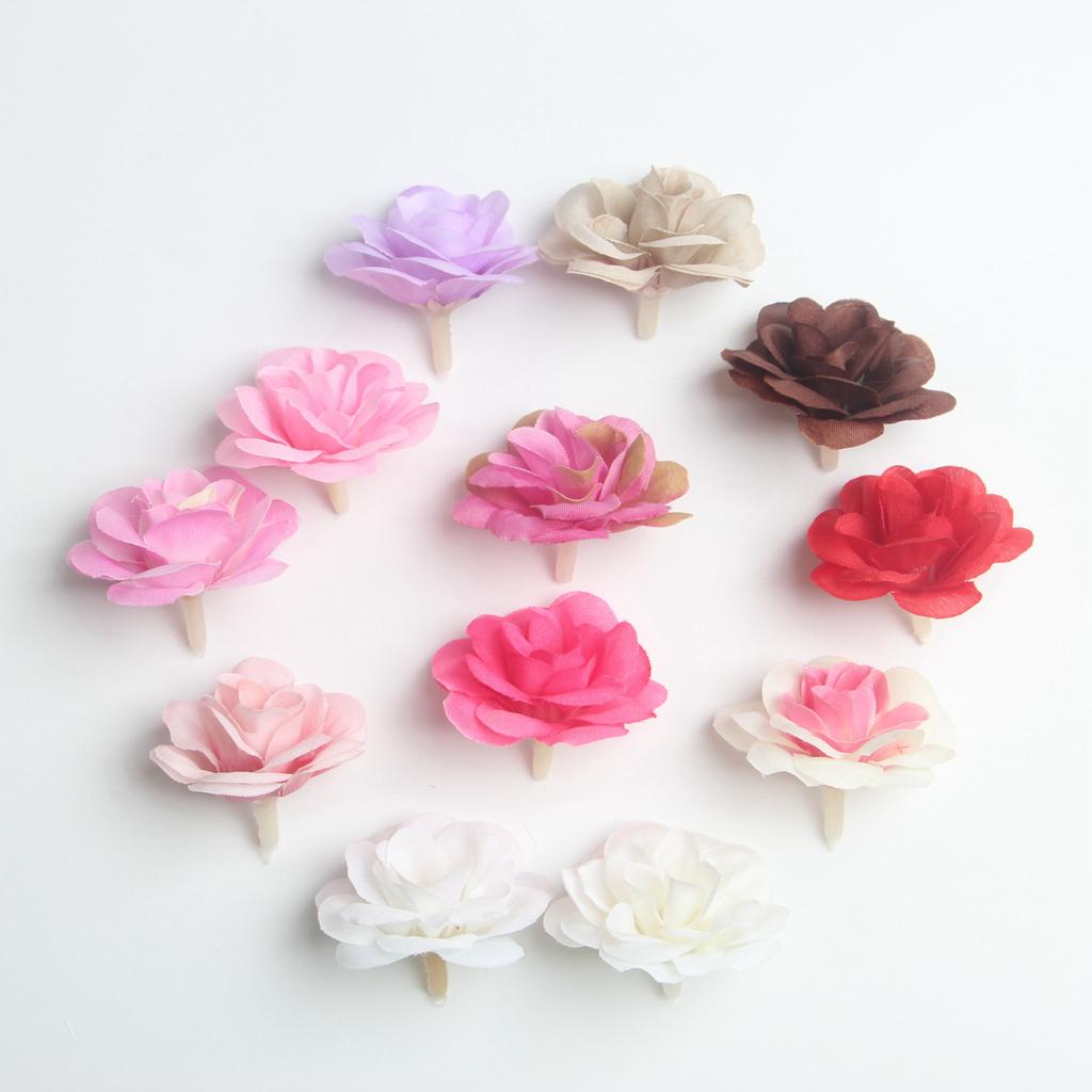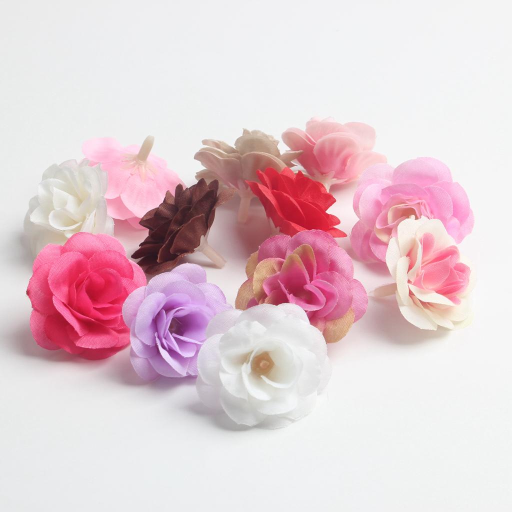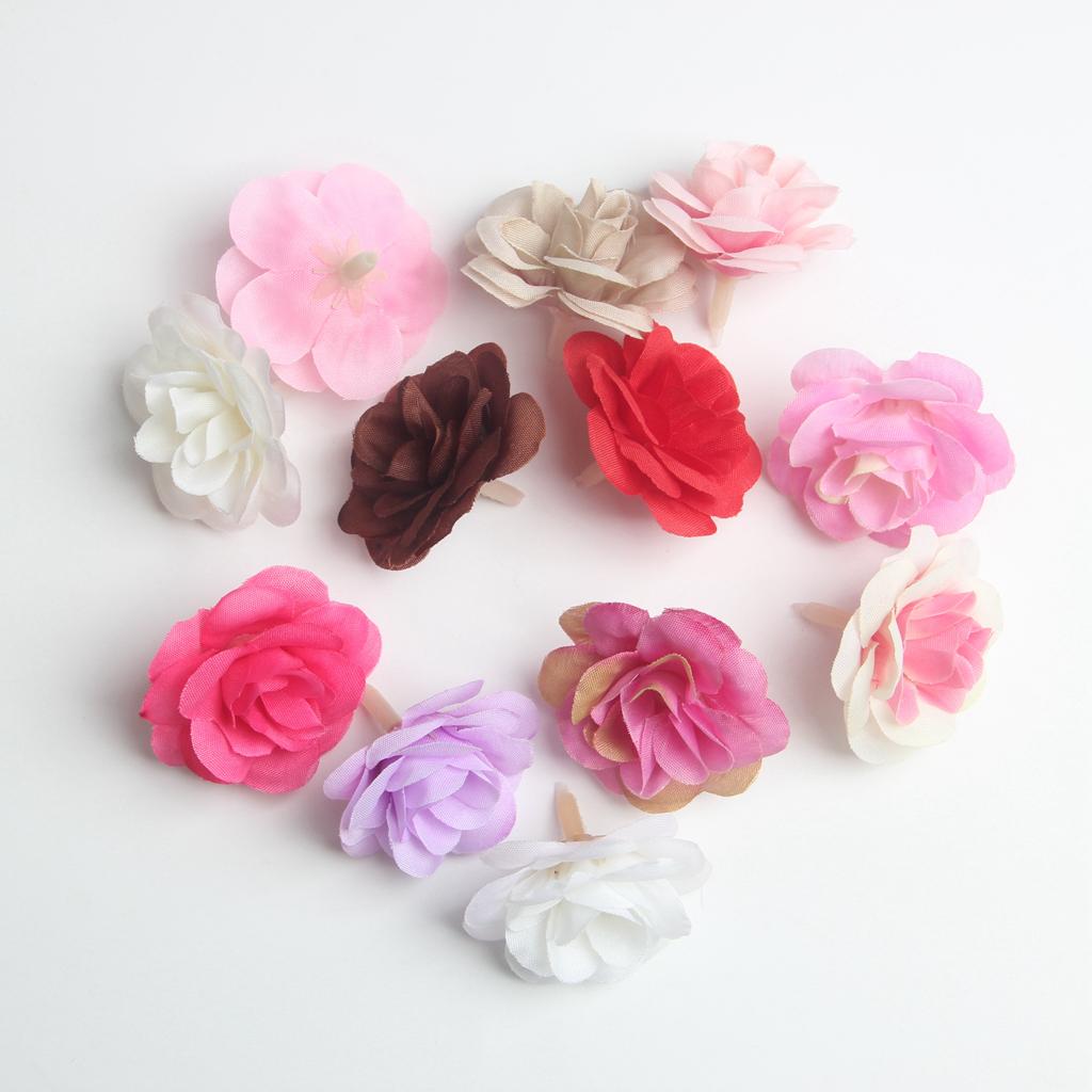 10 Pieces Mini Artificial Silk Rose Flower Head for Wedding 4cm Multicolor