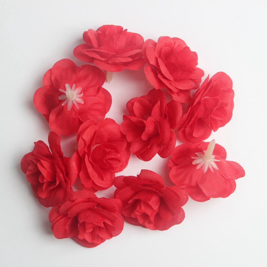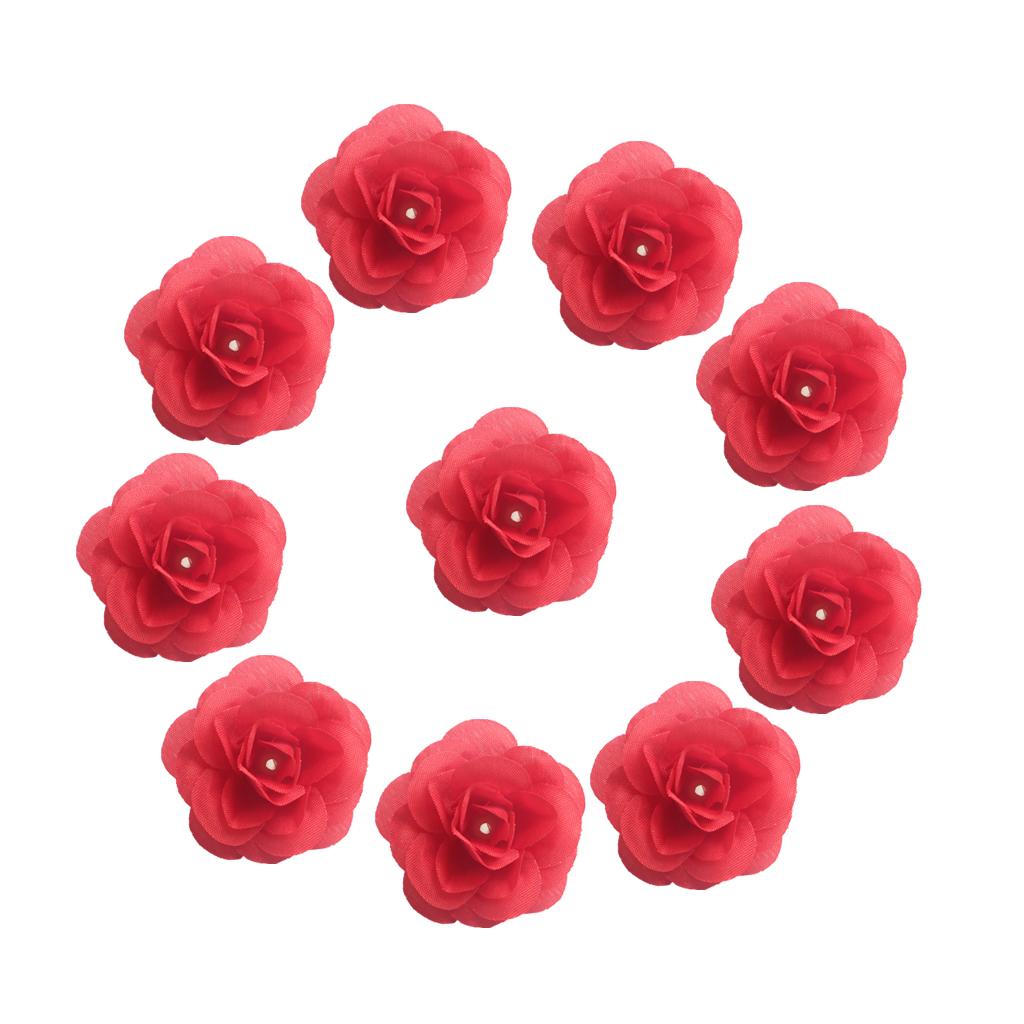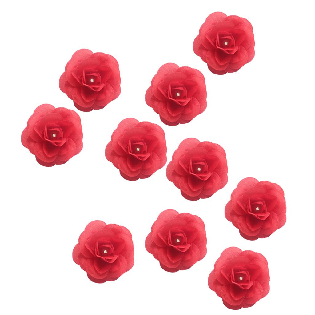 10 Pieces Mini Artificial Silk Rose Flower Head for Wedding 4cm Red