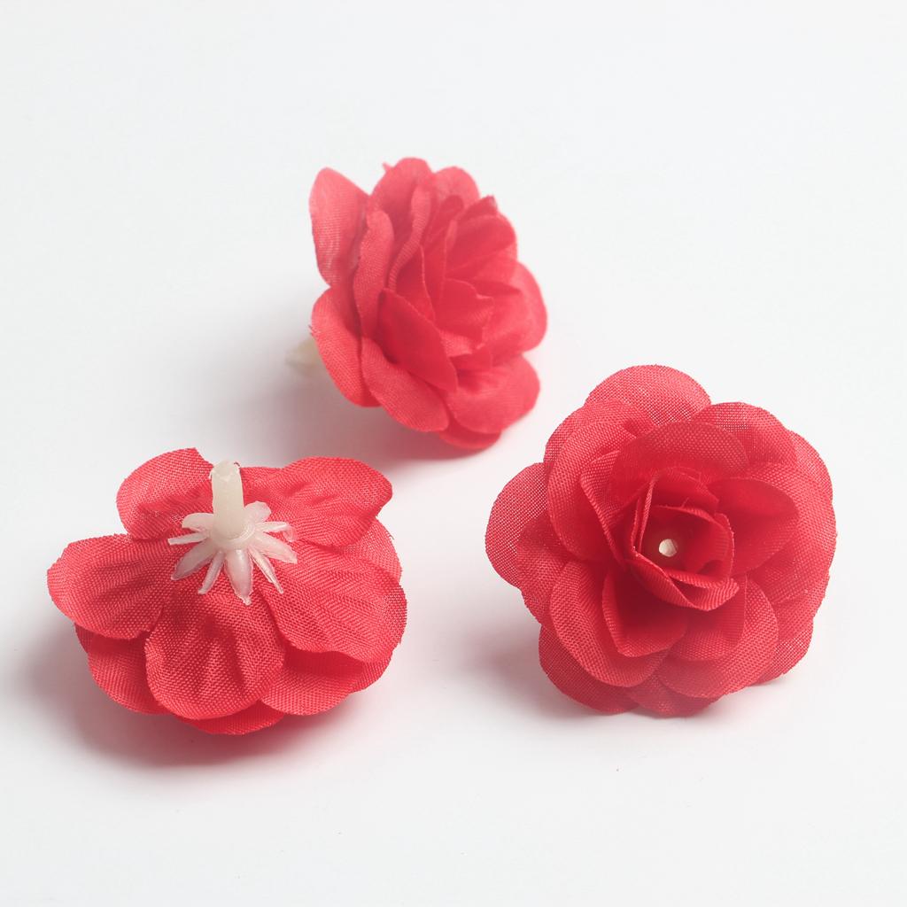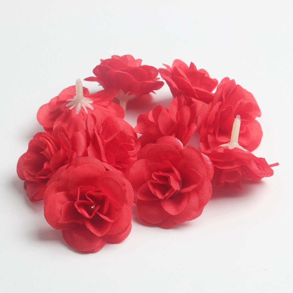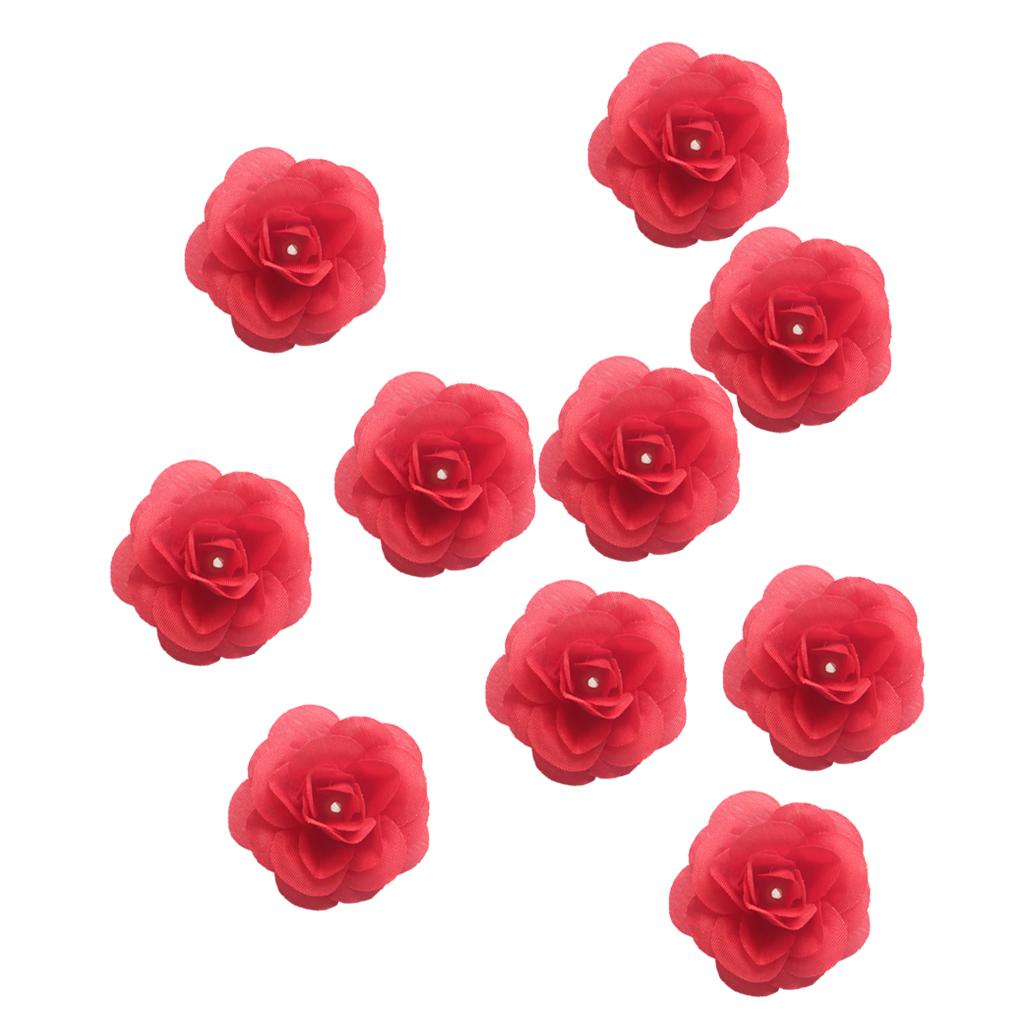 10 Pieces Mini Artificial Silk Rose Flower Head for Wedding 4cm Red