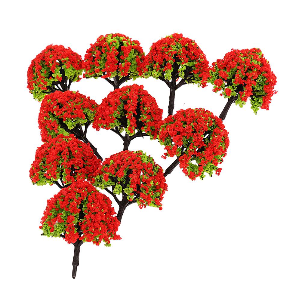 10pcs Train Railroad Scene Scenery Landscape Model Trees Green HO Scale with Flowers Model Building Kits Classic Toys Model RR & Trains