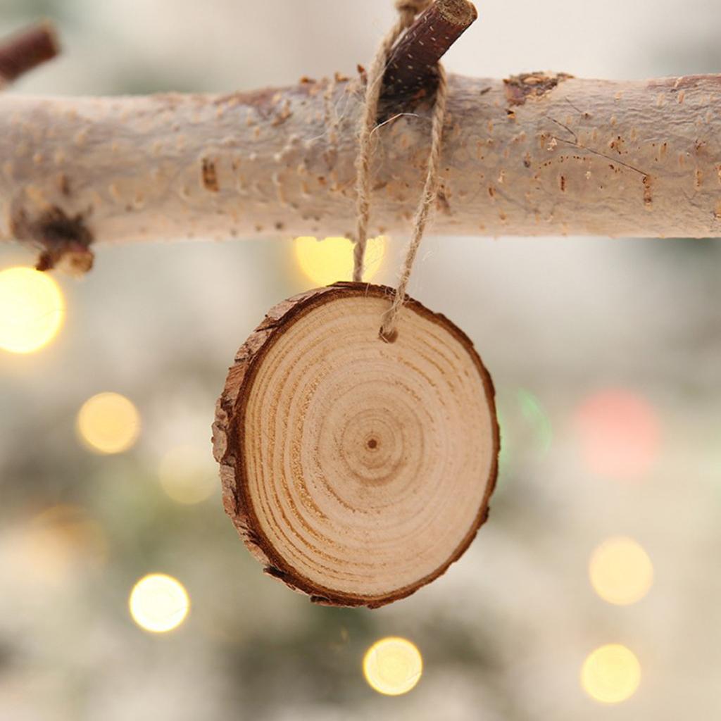 10 Pieces Natural Hanging Wood Slices Tree Bark Wooden Pieces DIY Crafts
