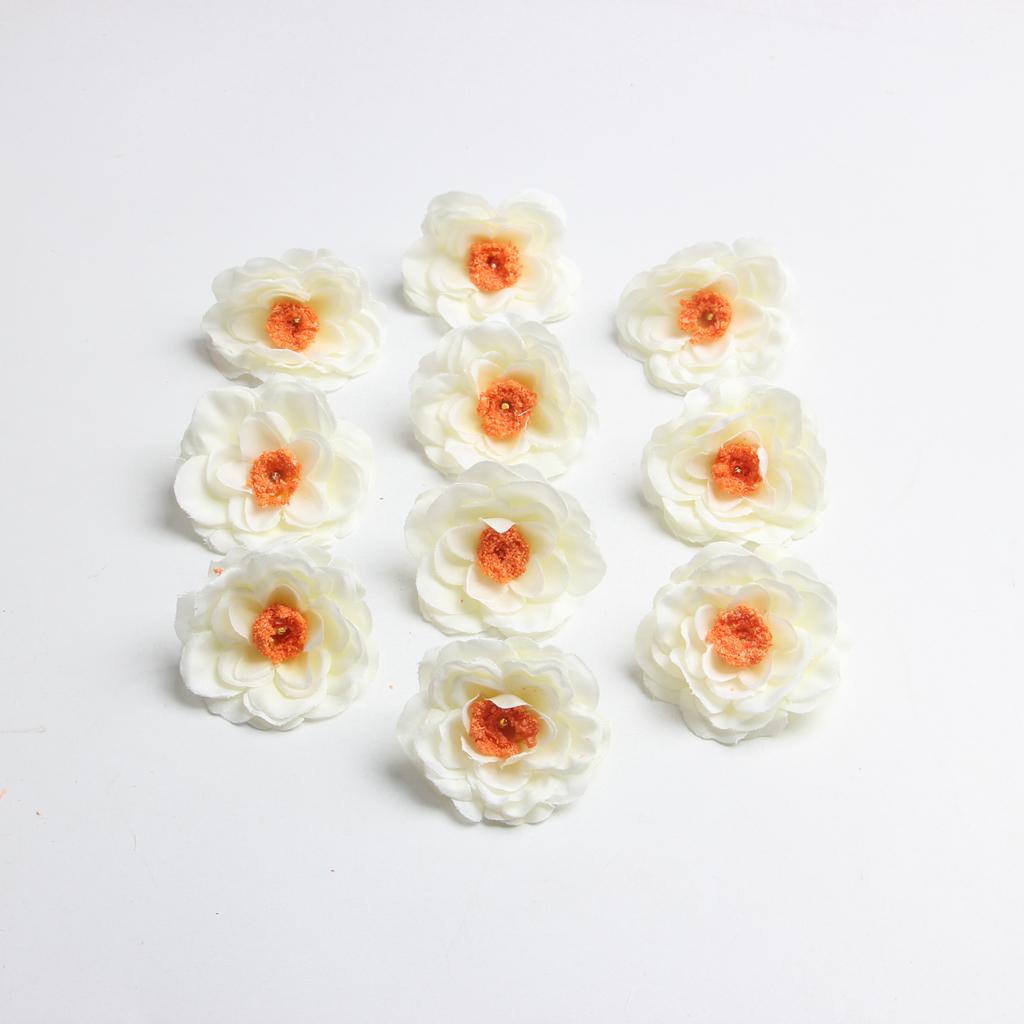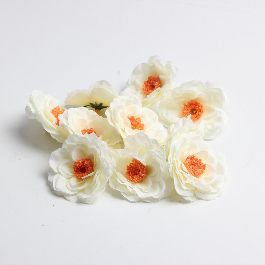 10 Pieces Peach Blossom Artificial Silk Flower Head Bud cream