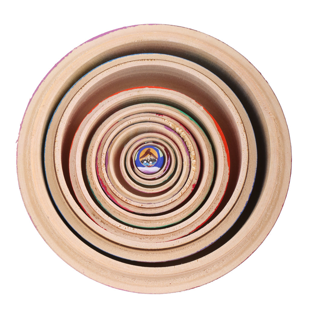 A matryoshka doll also known as a Russian Nesting Doll, or Russian Doll, is a set of wooden dolls of decreasing size placed one inside another. A set of matryoshkas consists of a wooden figure which separates, top from bottom, to reveal a smaller figure of the same sort inside, which has, in turn, another figure inside of it, and so on.