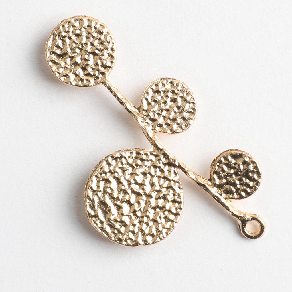 Composed of tree branch gold hair barrettes and the leaves, which is round and uneven