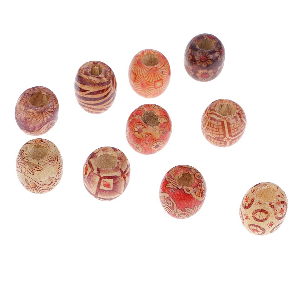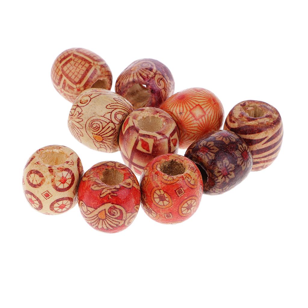 10Pcs mixed enthic BOHO style round facted large hole wood beads.