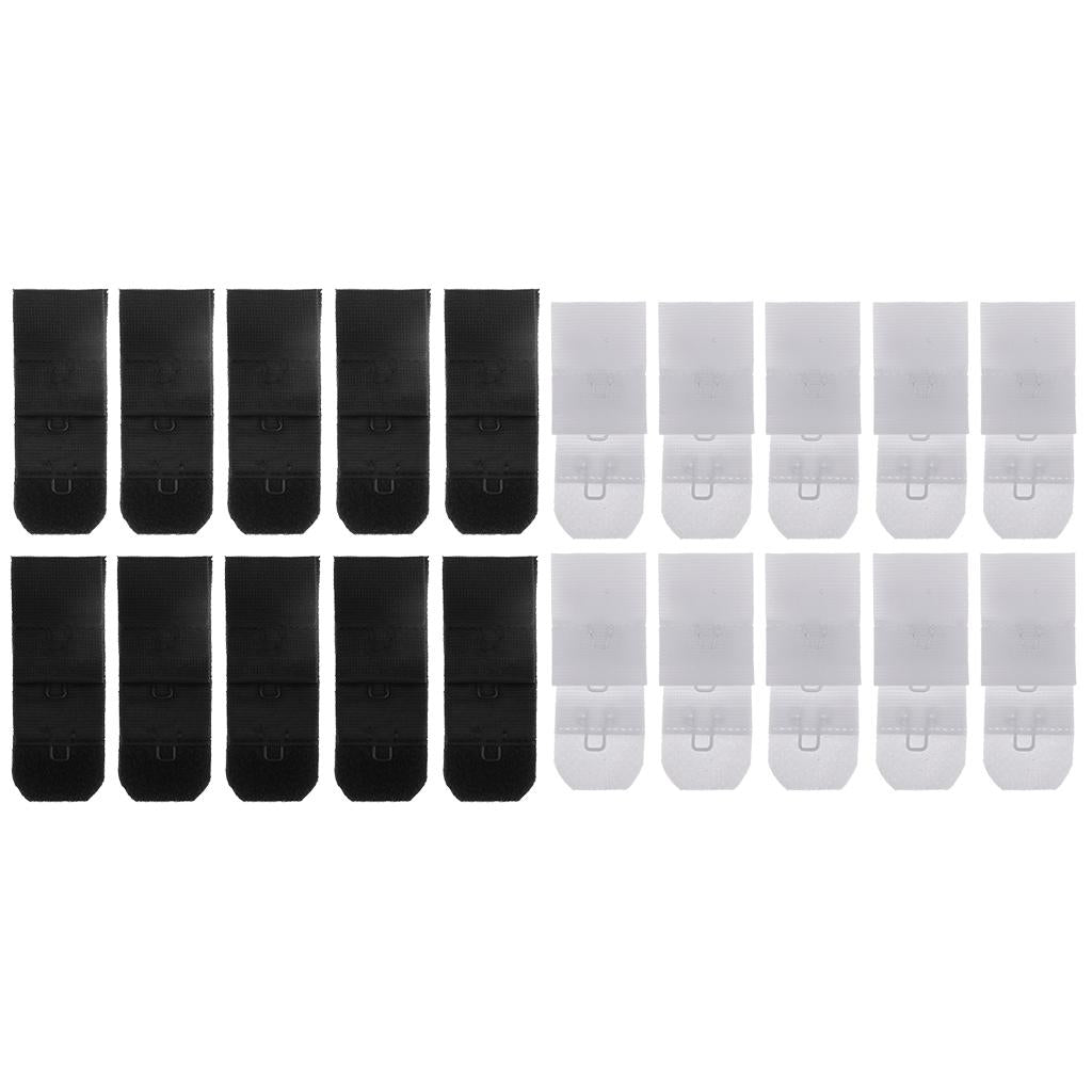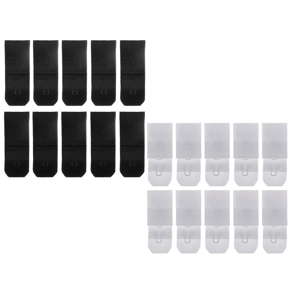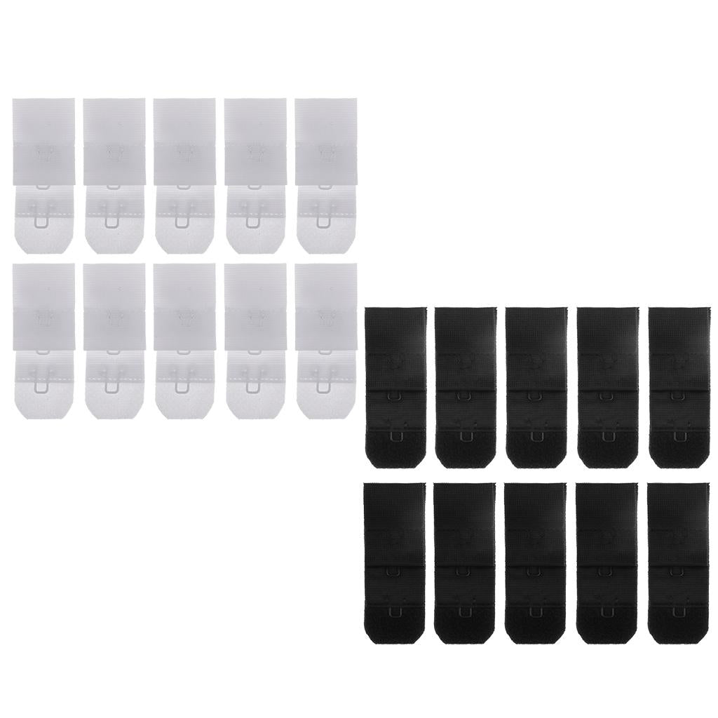 10 Set 1 Hook 3 Rows Bra Extenders Elastic Stretchy Bra Strap Extension Black